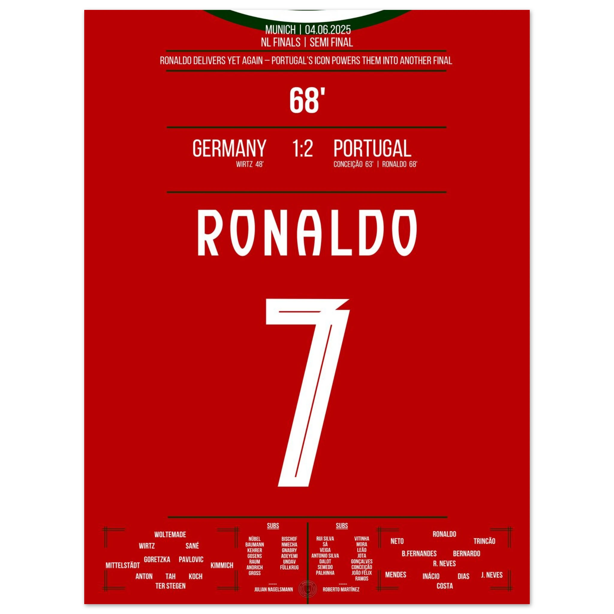 4. Juni 2025 – Deutschland vs. Portugal 1:2 – Ronaldos Moment im Halbfinale: