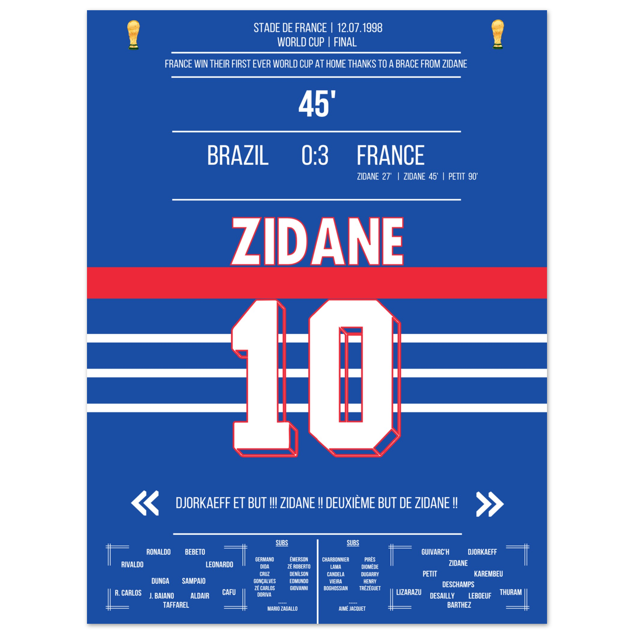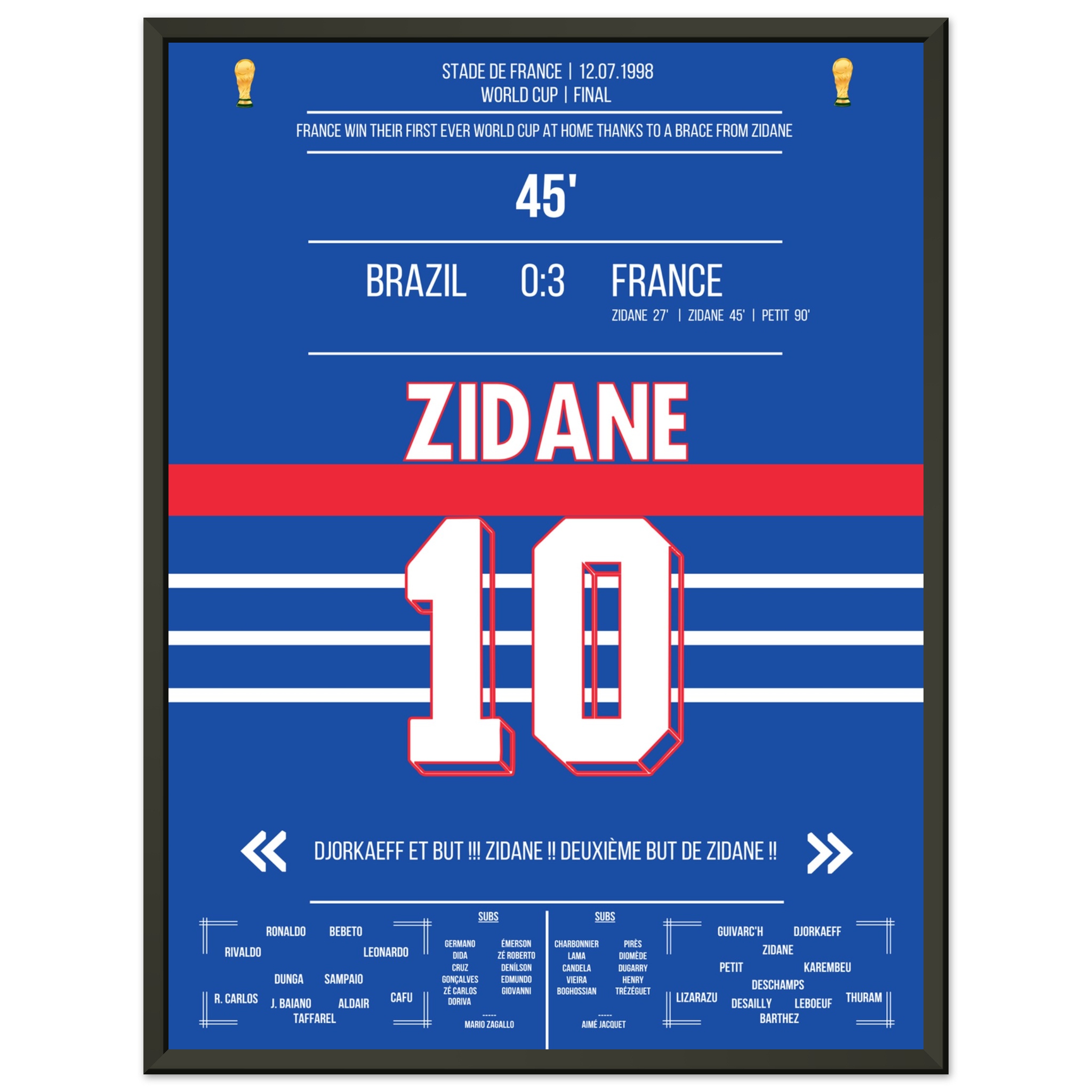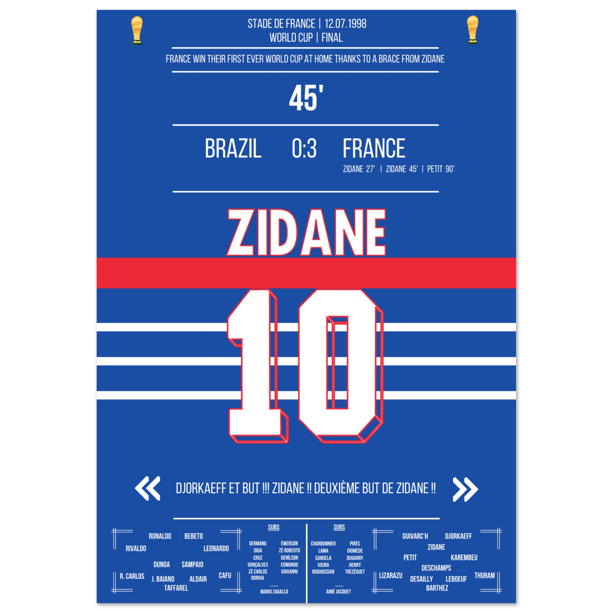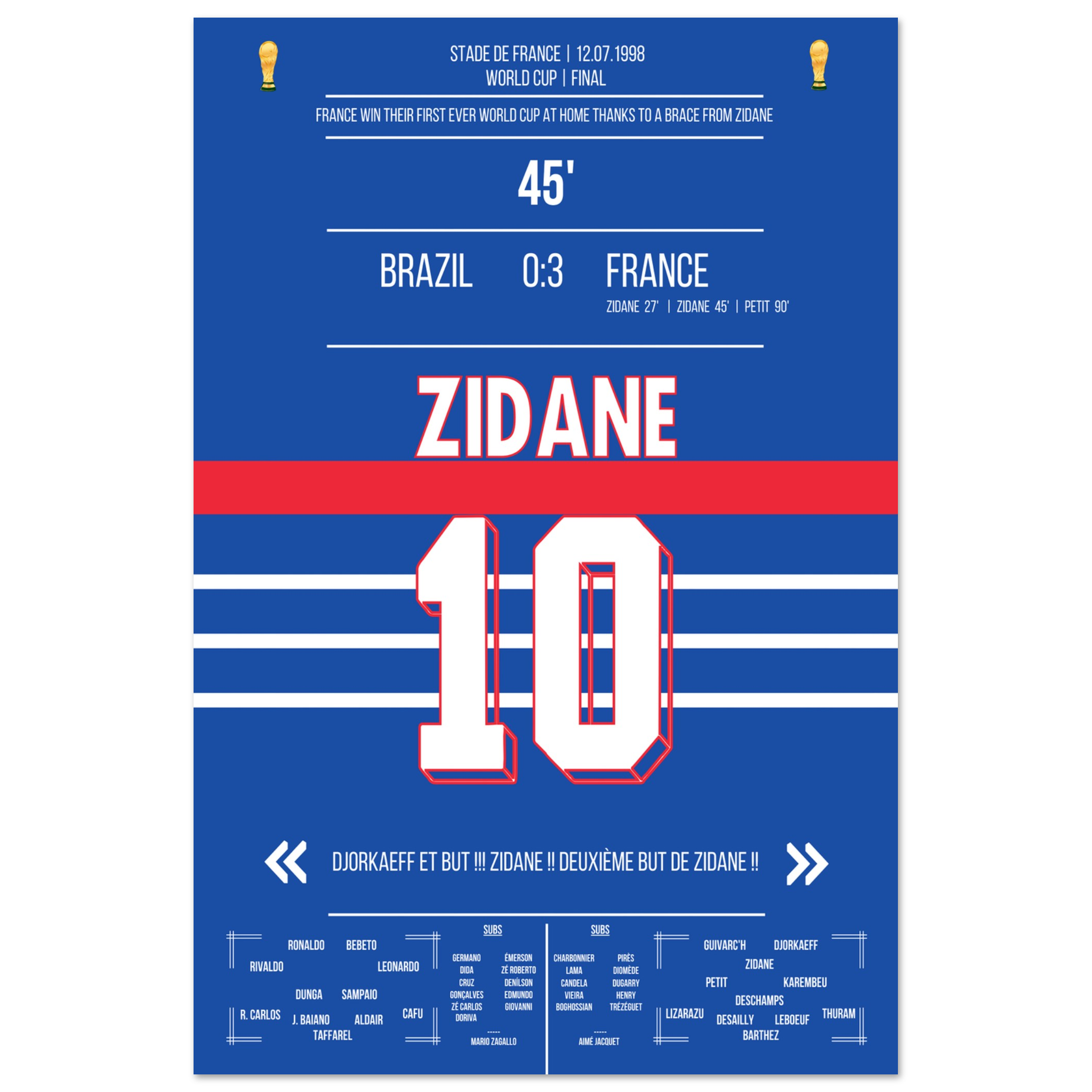 Zidane's header double pack for France's first World Cup title in 1998 against Brazil.