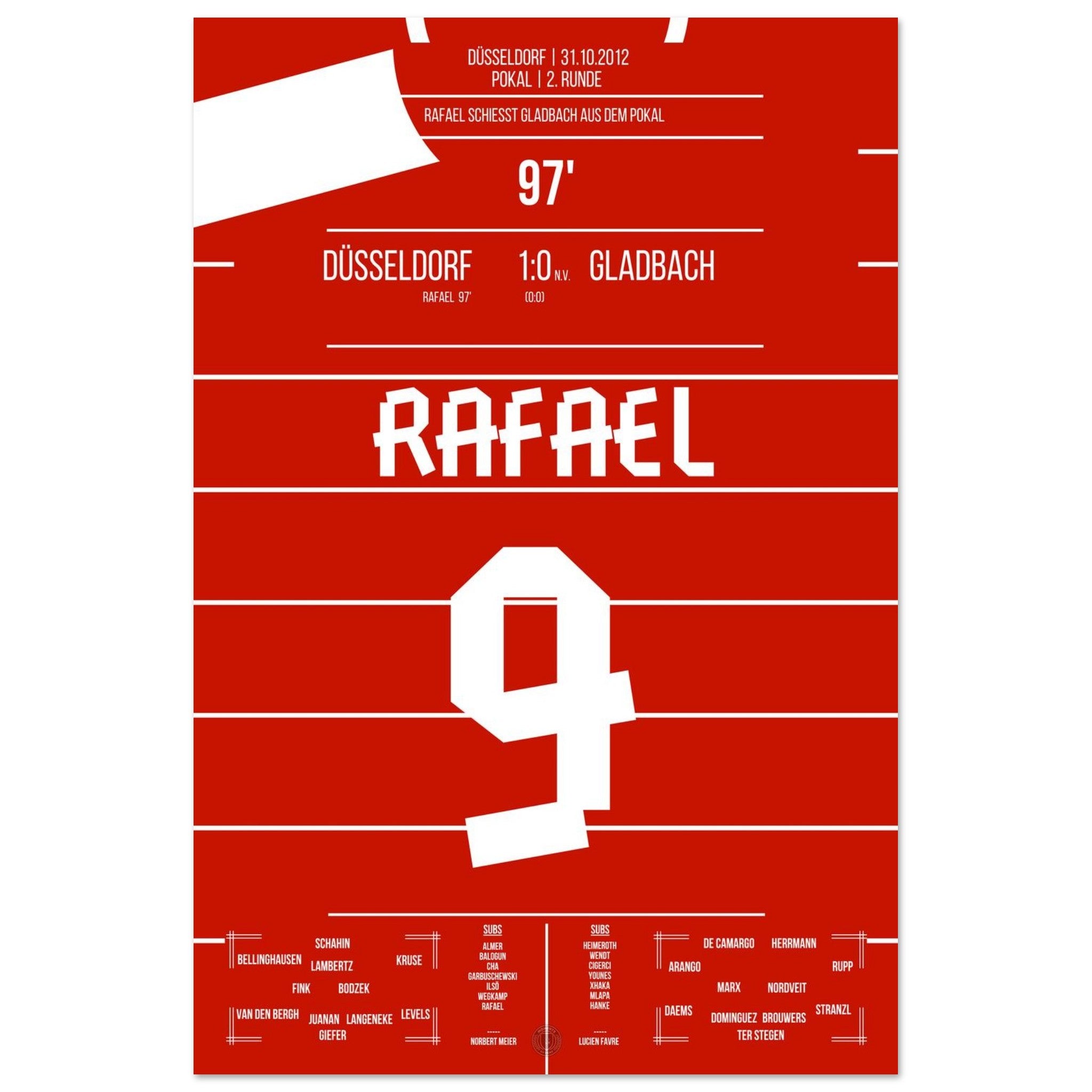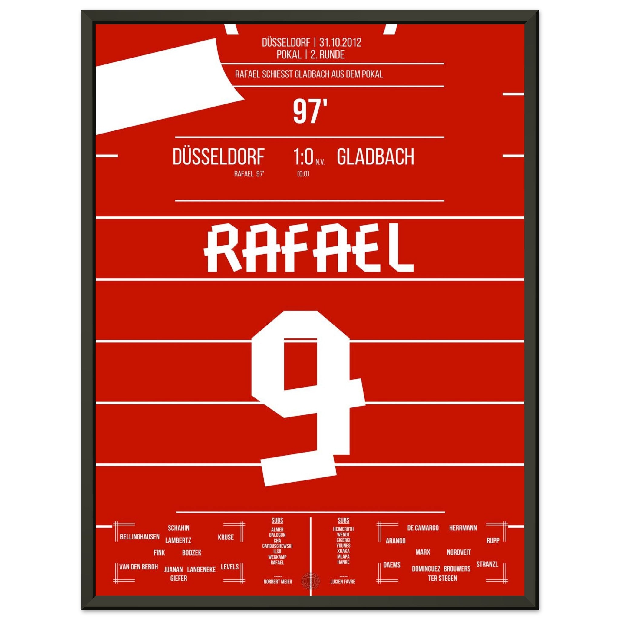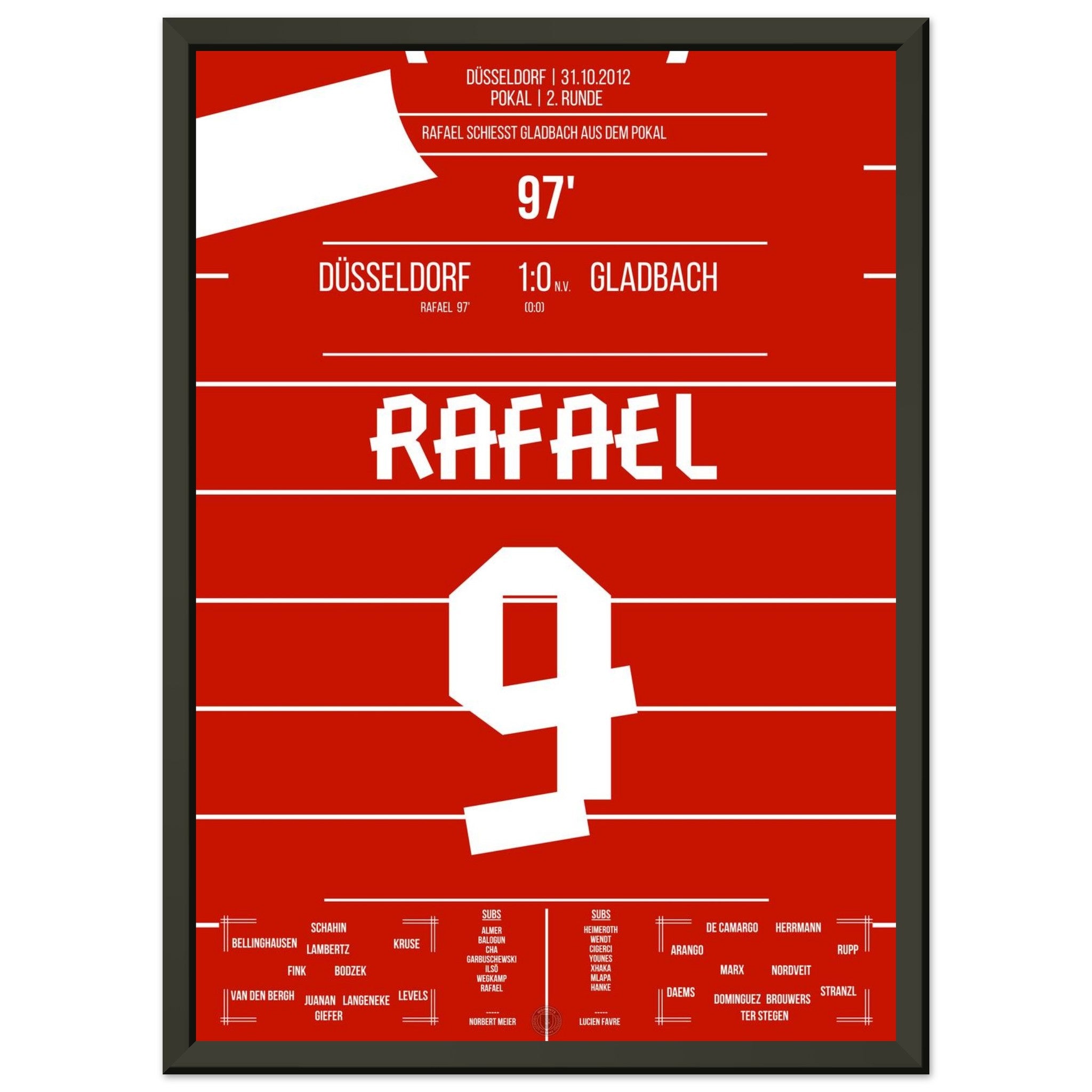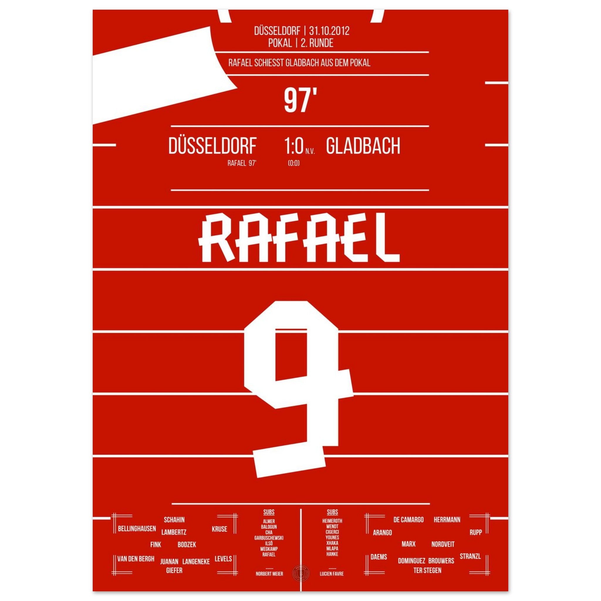 **31. Oktober 2012 – Düsseldorf vs. Mönchengladbach 1:0 n. V.:** In der 97. Minute entscheidet Rafael das packende Derby im Pokal-Achtelfinale zugunsten von Düsseldorf.