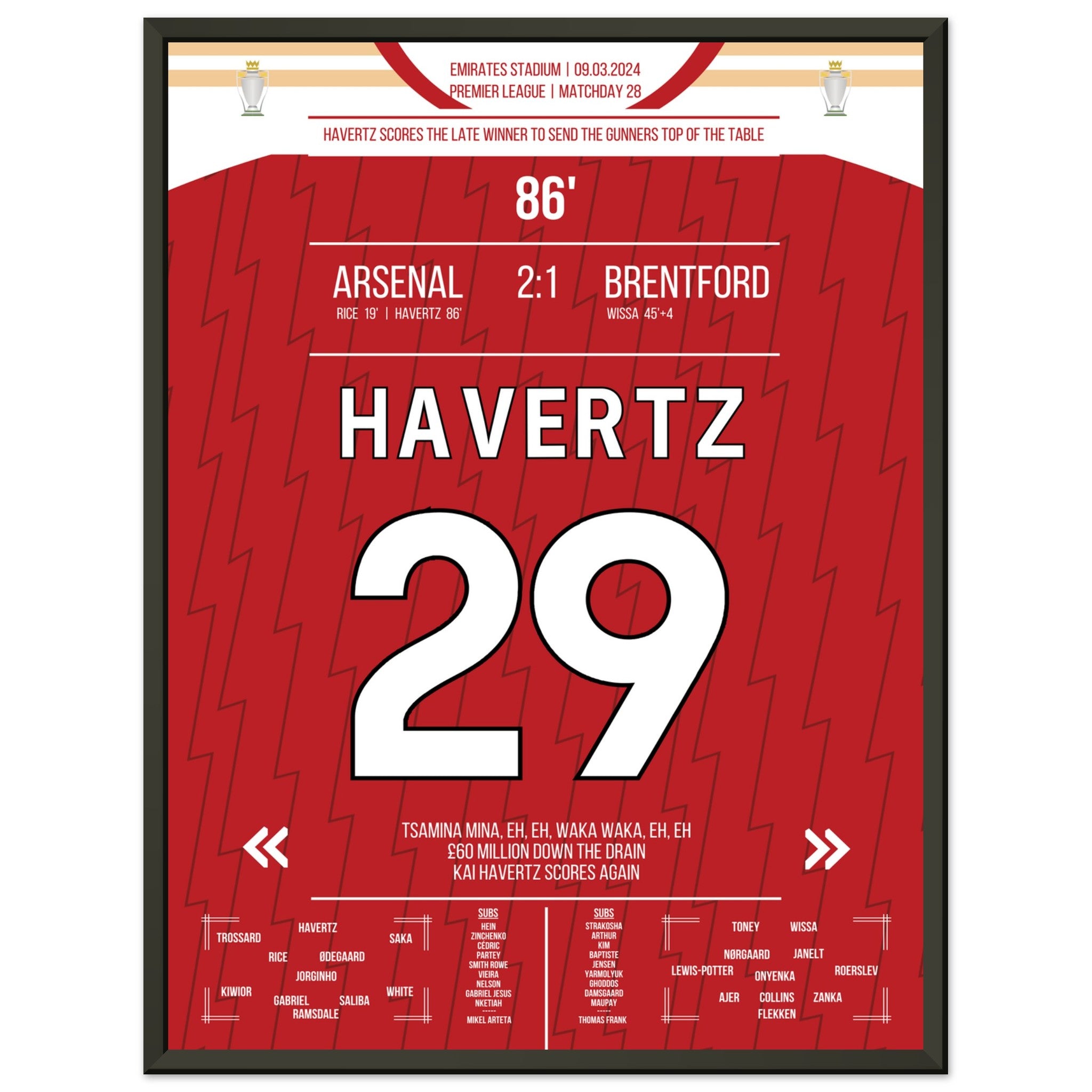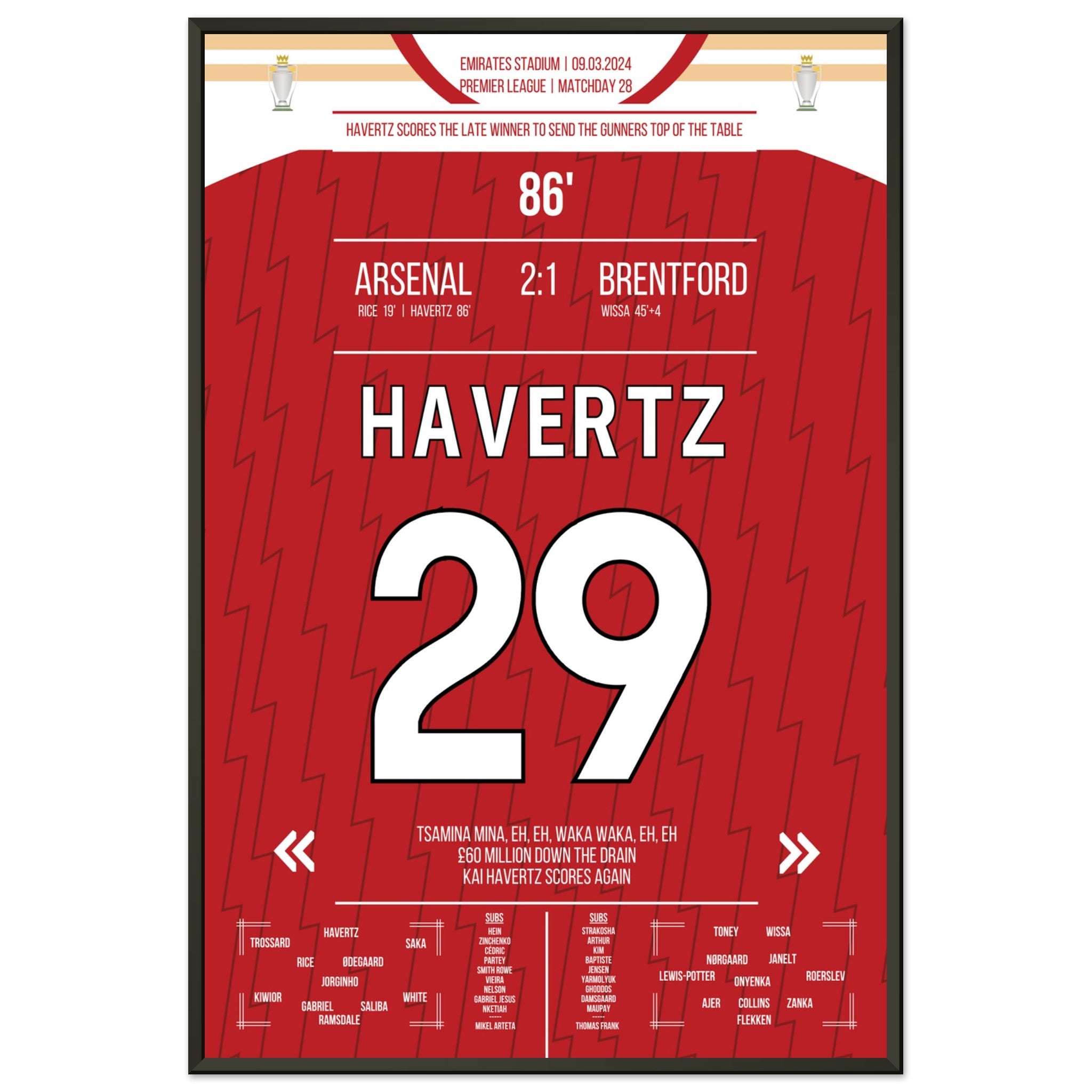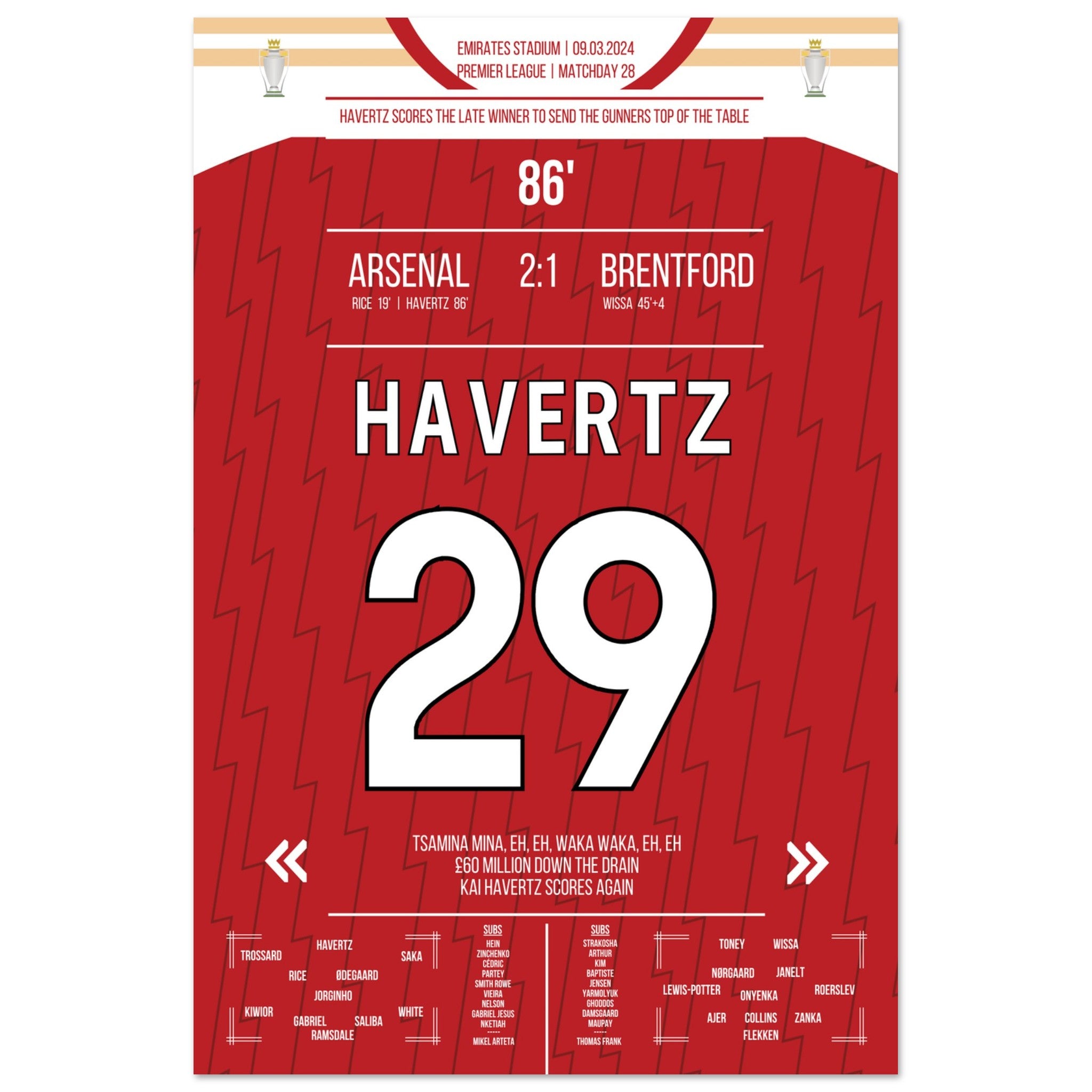 Havertz marque le but de la victoire tardif des Gunners qui les propulse en tête du classement.