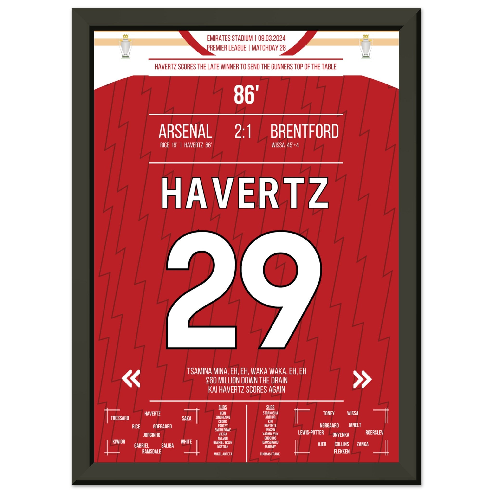 Vous pouvez être assuré que chaque affiche et chaque cadre sont expédiés dans un emballage solide pour garantir qu'ils arrivent en parfait état. C'est le complément parfait à la collection de tout fan de football ou le cadeau parfait pour le fan de football inconditionnel de votre cercle d'amis ou de votre famille.