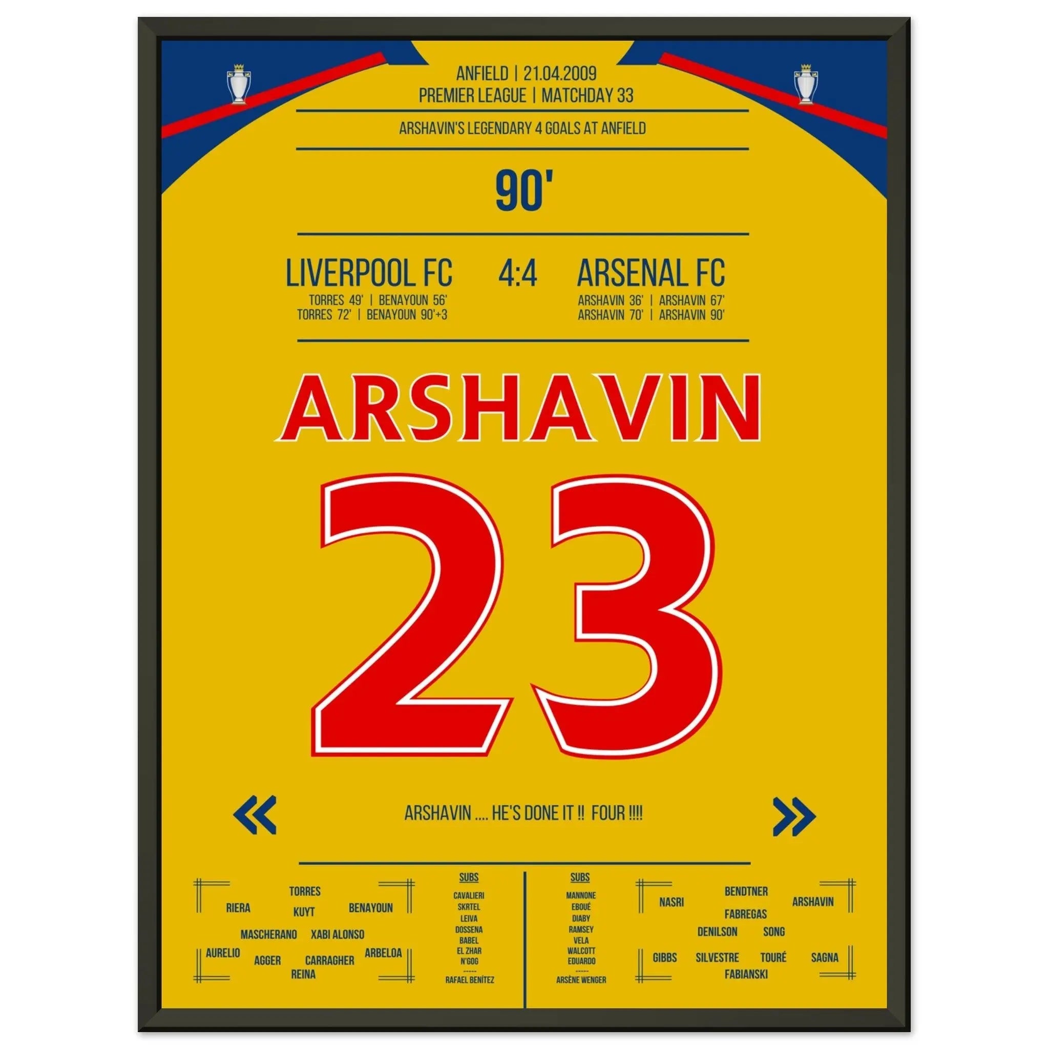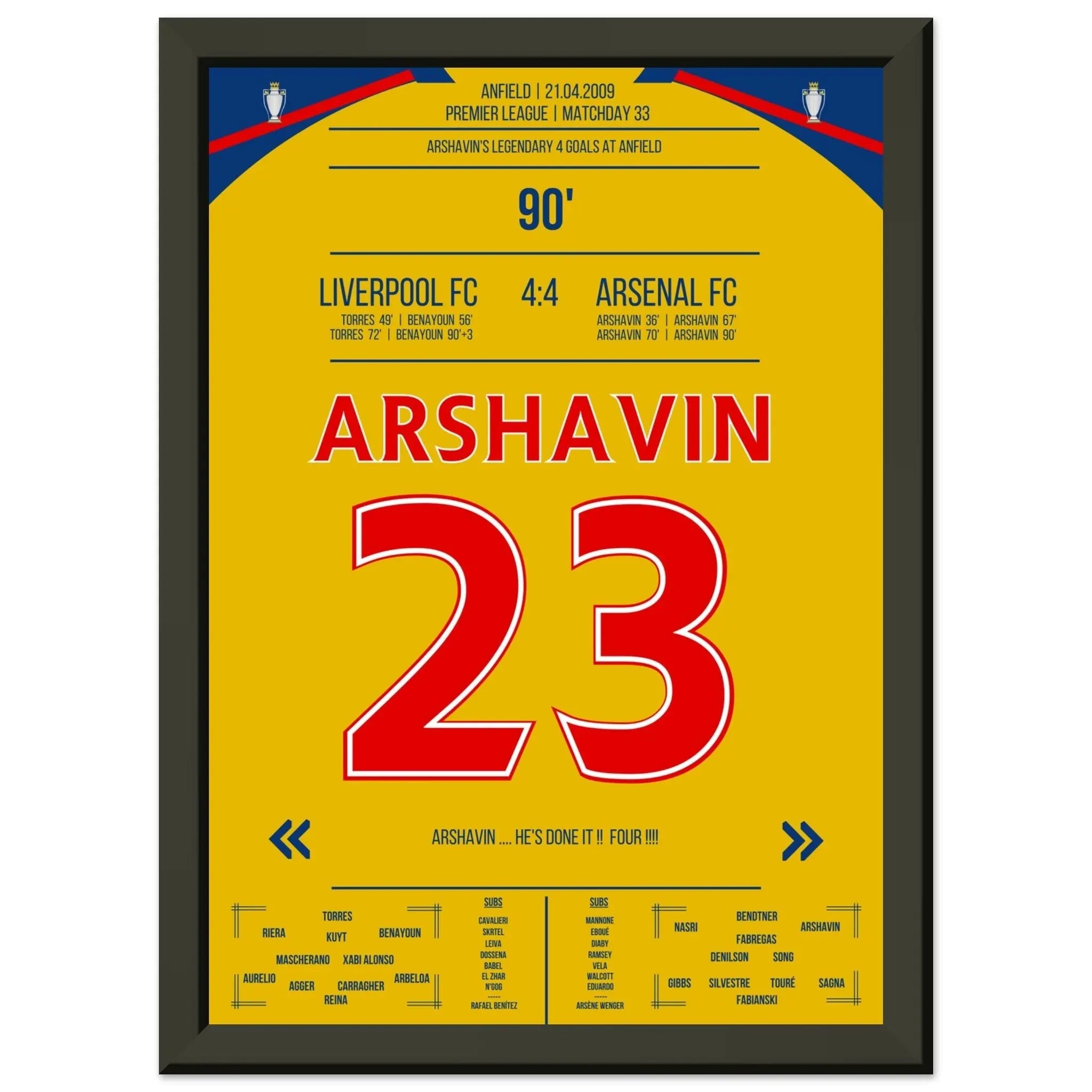 Vous pouvez être assuré que chaque affiche et chaque cadre sont expédiés dans un emballage solide pour garantir qu'ils arrivent en parfait état. C'est le complément parfait à la collection de tout fan de football ou le cadeau parfait pour le fan de football inconditionnel de votre cercle d'amis ou de votre famille.