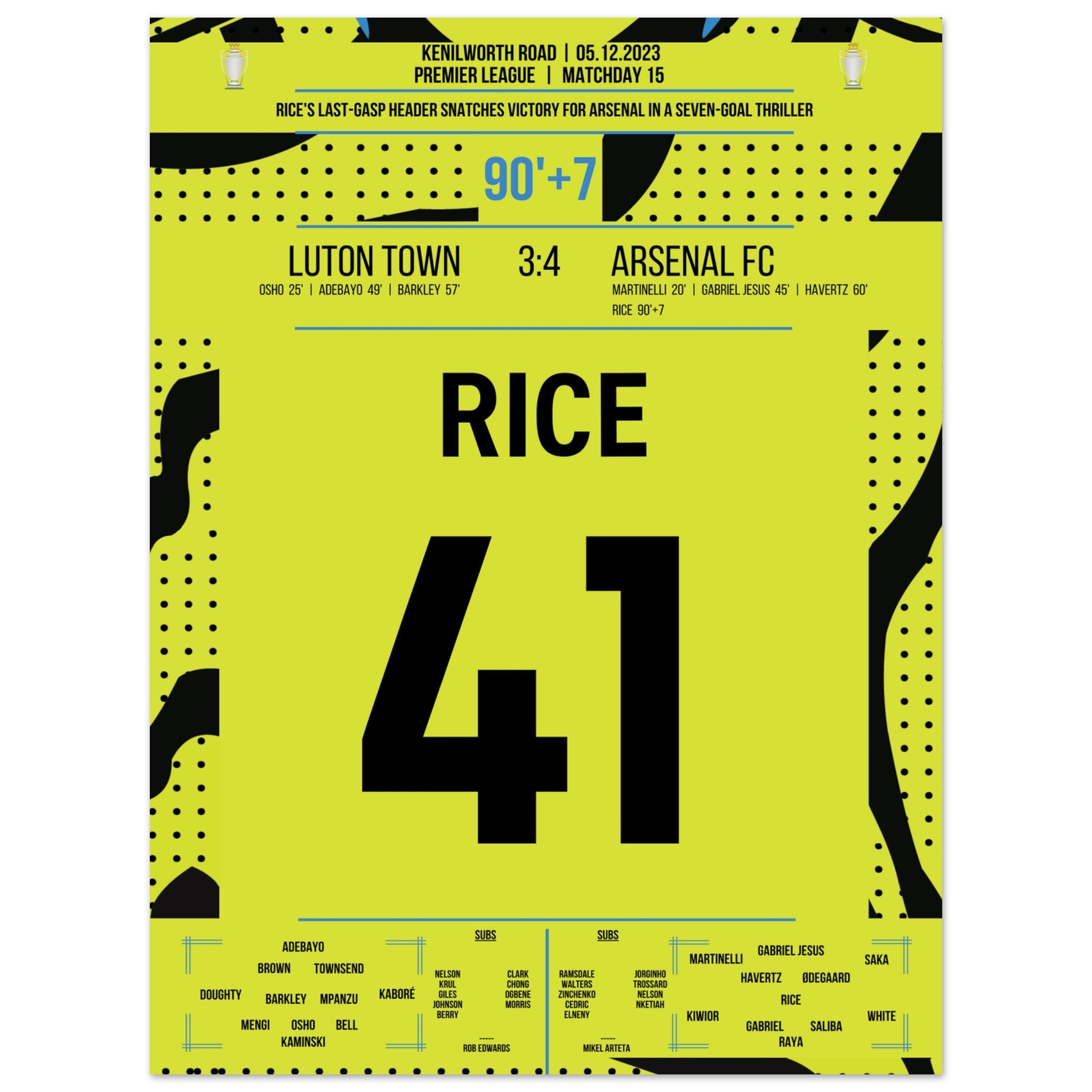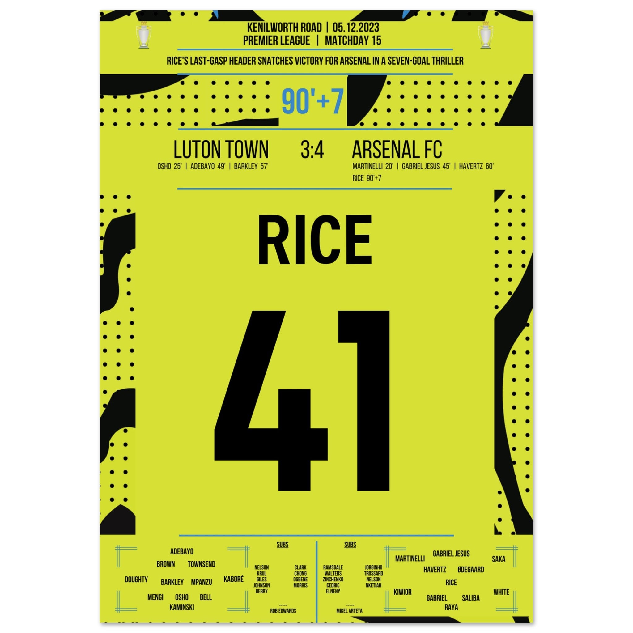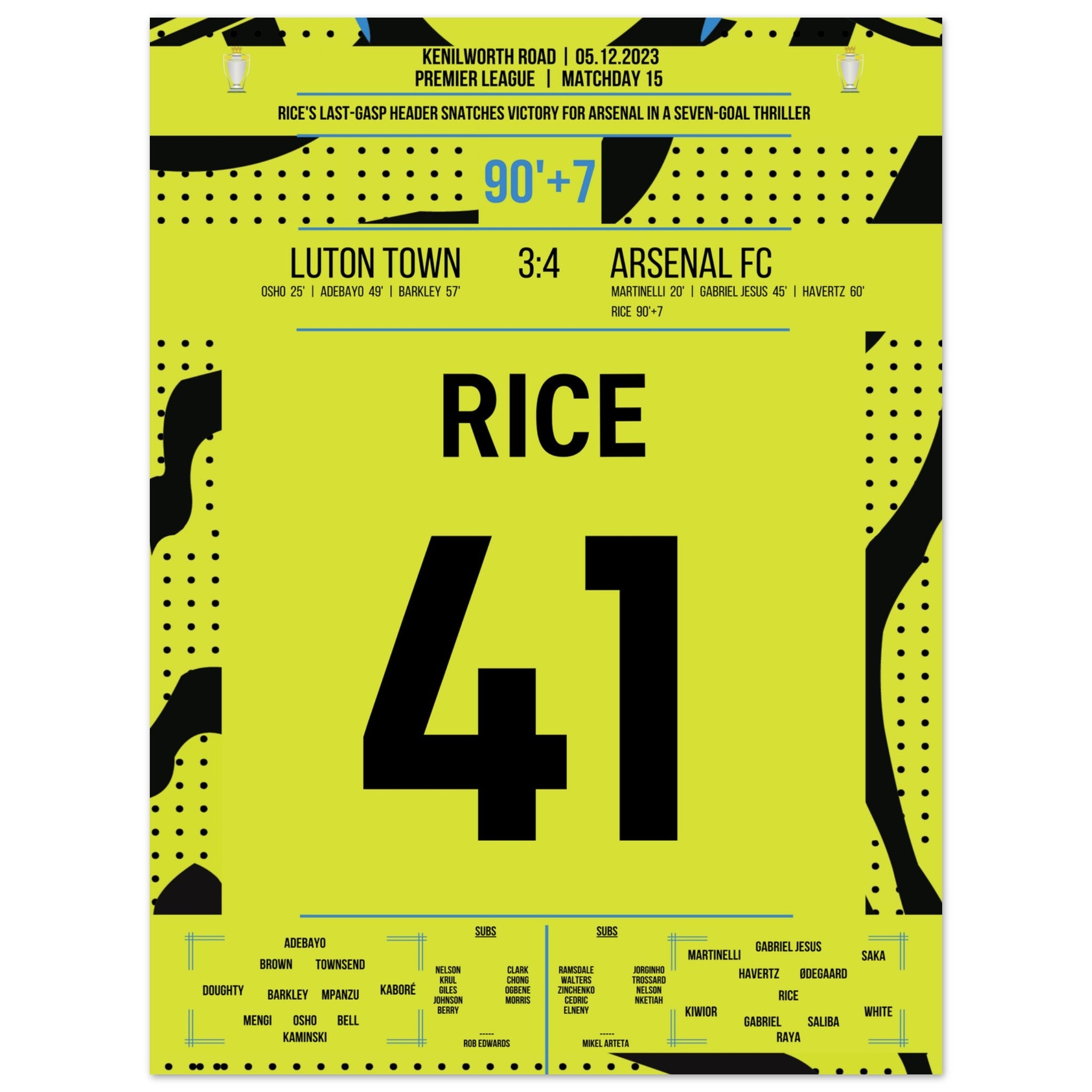 Rice décapite Arsenal dans la dernière seconde pour une victoire à l'extérieur.