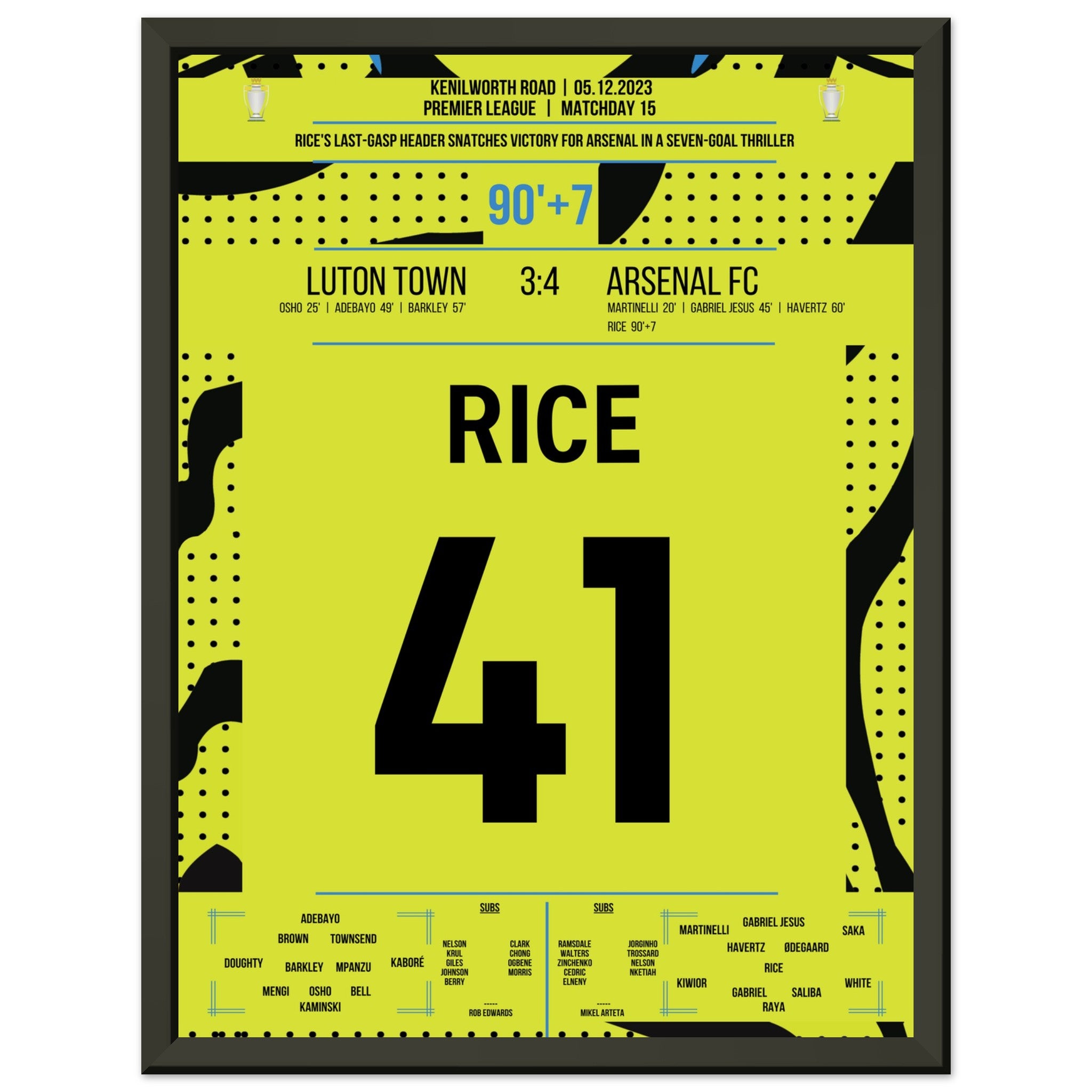 Vous pouvez être assuré que chaque affiche et chaque cadre sont expédiés dans un emballage solide pour garantir qu'ils arrivent en parfait état. C'est le complément parfait à la collection de tout fan de football ou le cadeau parfait pour le fan de football inconditionnel de votre cercle d'amis ou de votre famille.