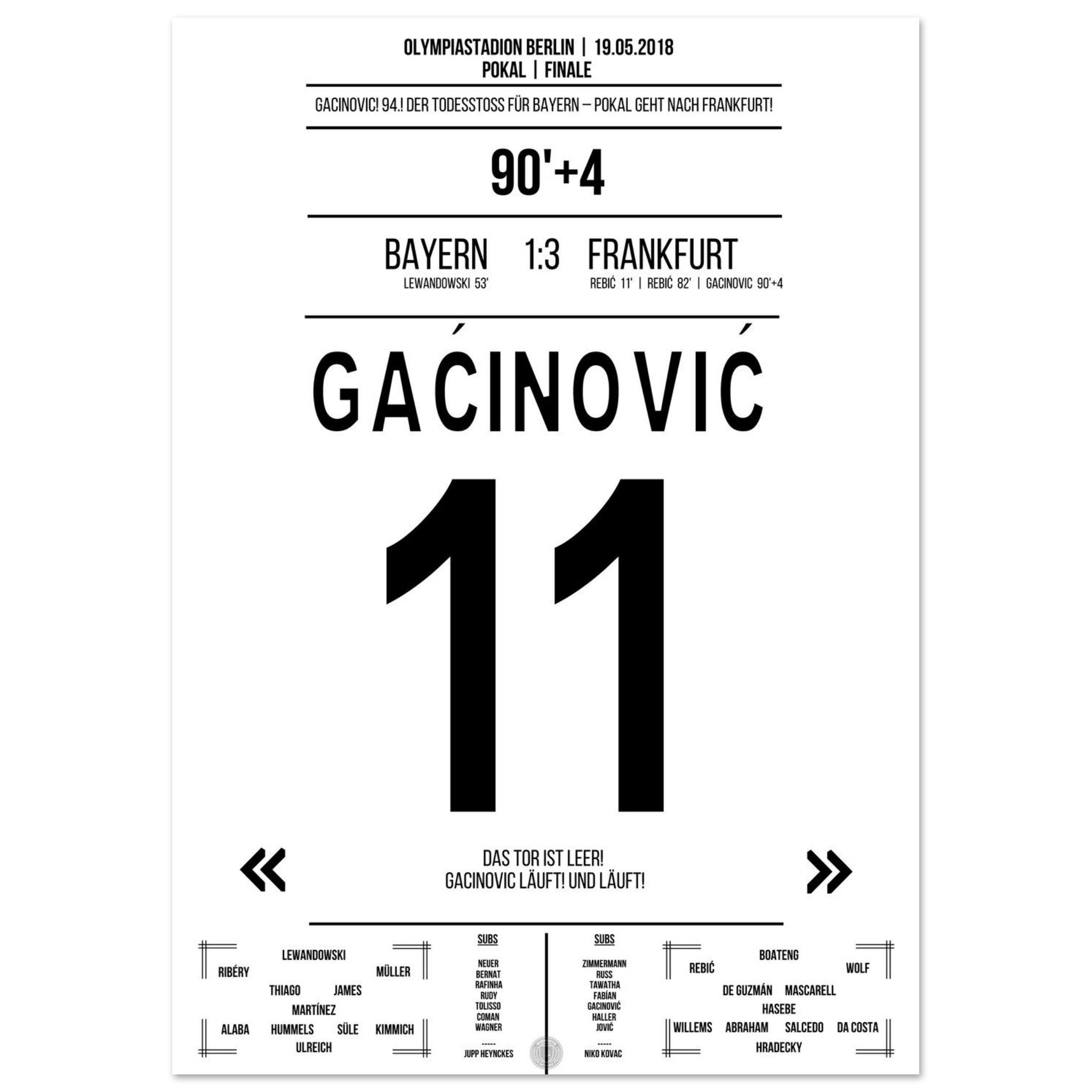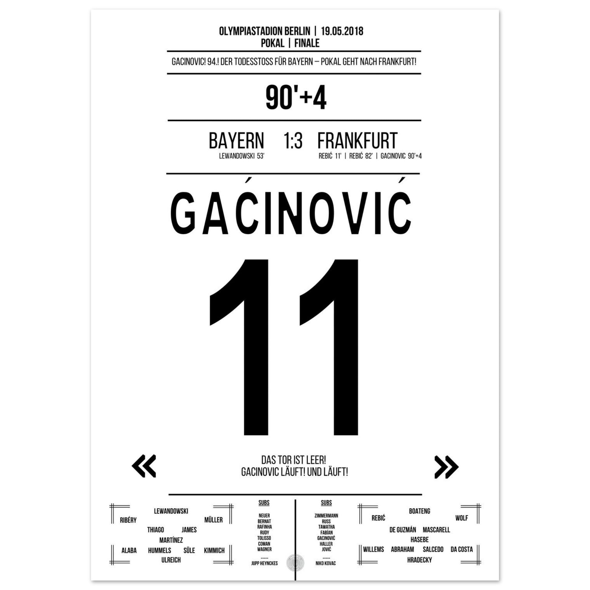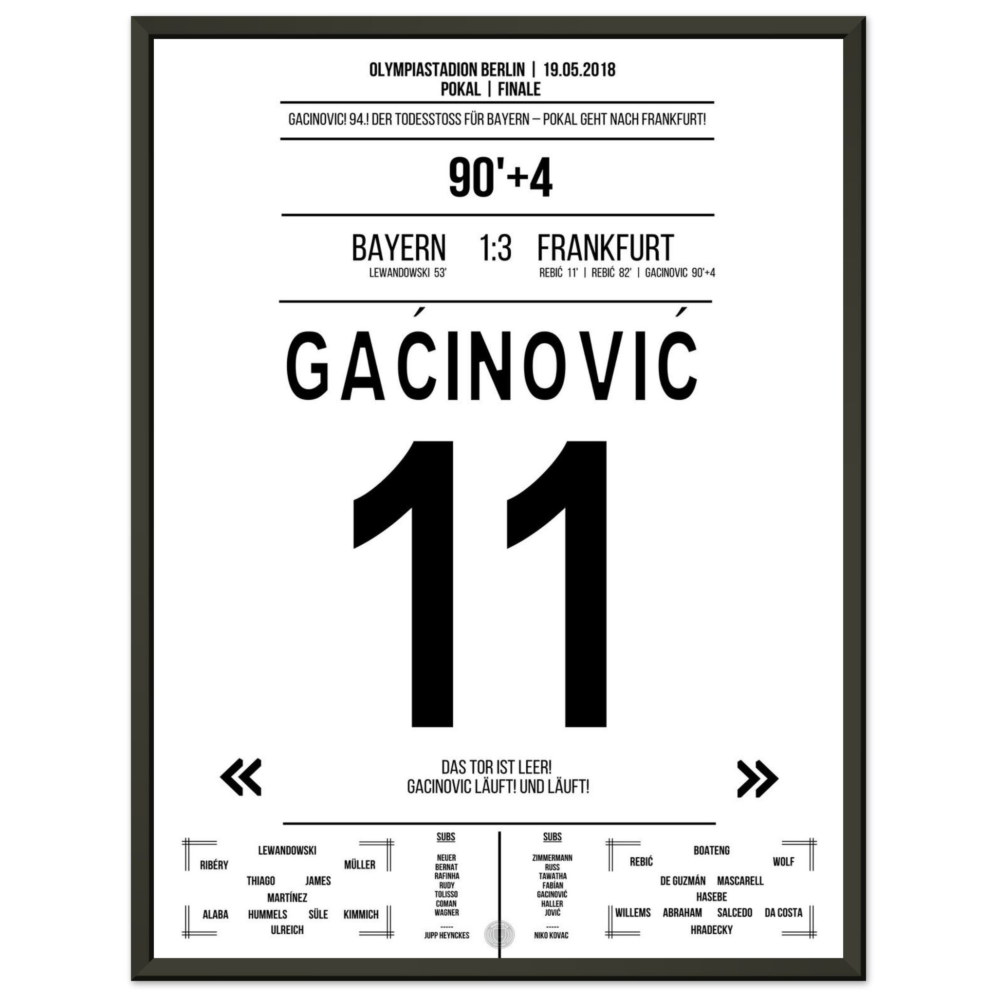 19. Mai 2018 – Bayern vs. Frankfurt 1:3: In der 94. Minute läuft Gaćinović allein aufs leere Tor zu und macht mit dem 3:1 den Pokalsieg gegen Bayern perfekt. Ein Konter, ein Sprint, ein ganzer Verein im Freudentaumel. Unser Poster hält diesen entscheidenden Gänsehautmoment fest.