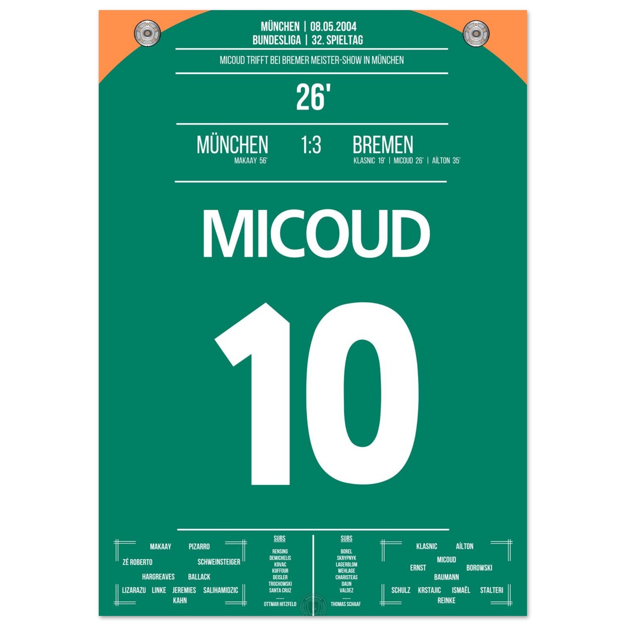 Johan Micoud. 26. Minute. Olympiastadion. Lupfer über Kahn. 2:0. Meistermacher. Werder-Legende. Jetzt als Poster für deine Wand.