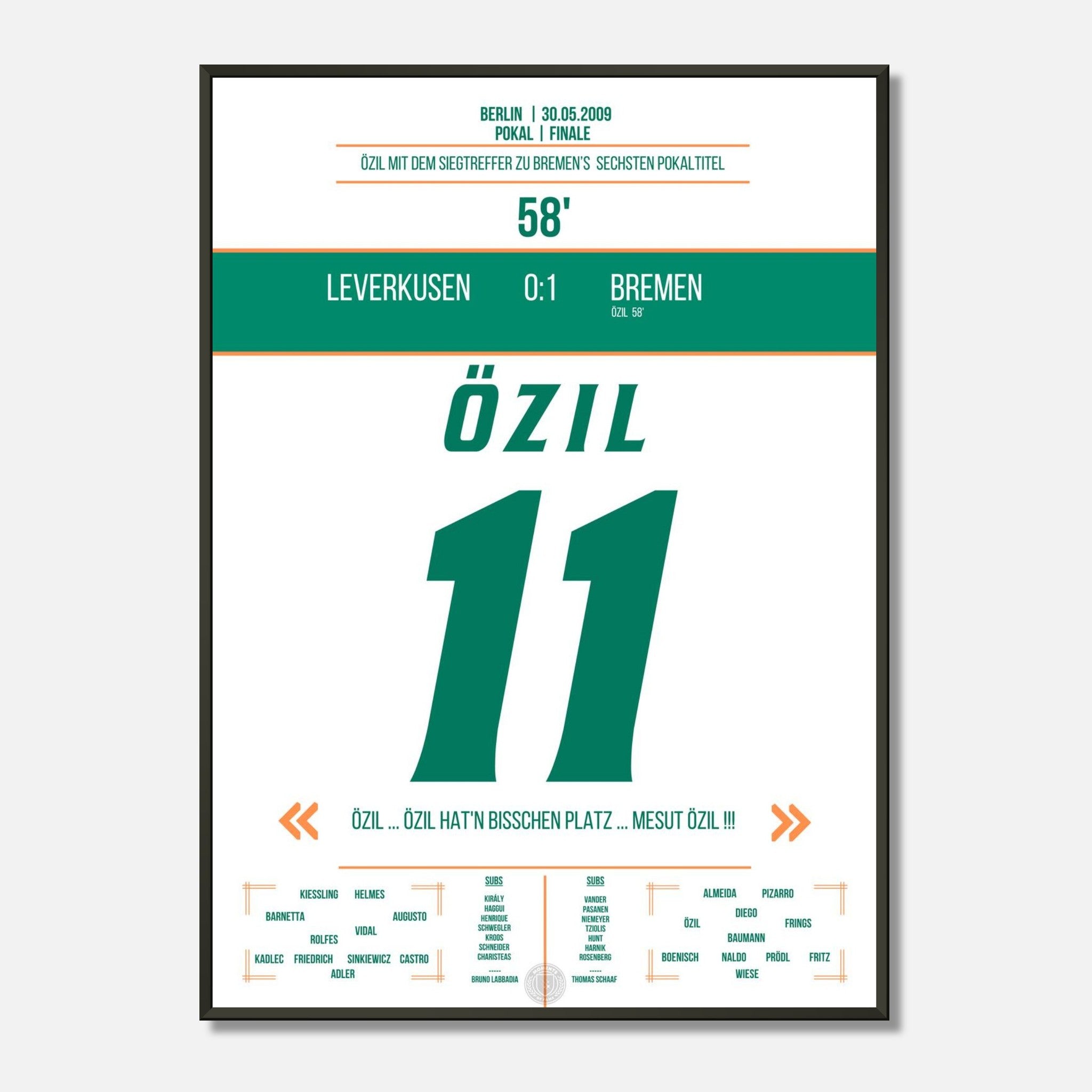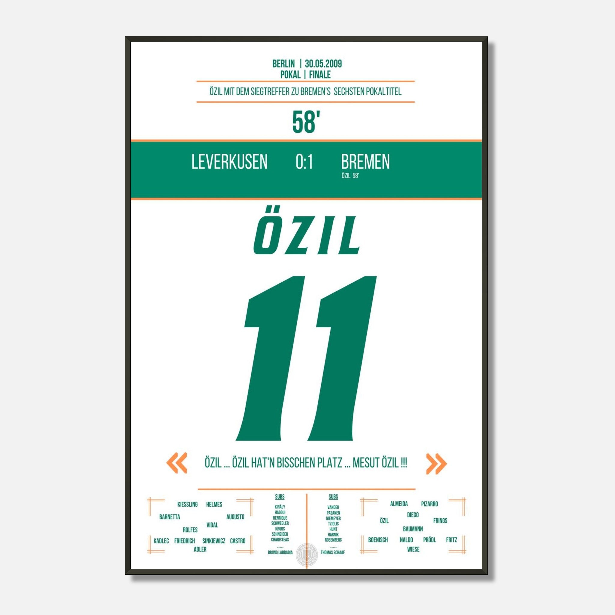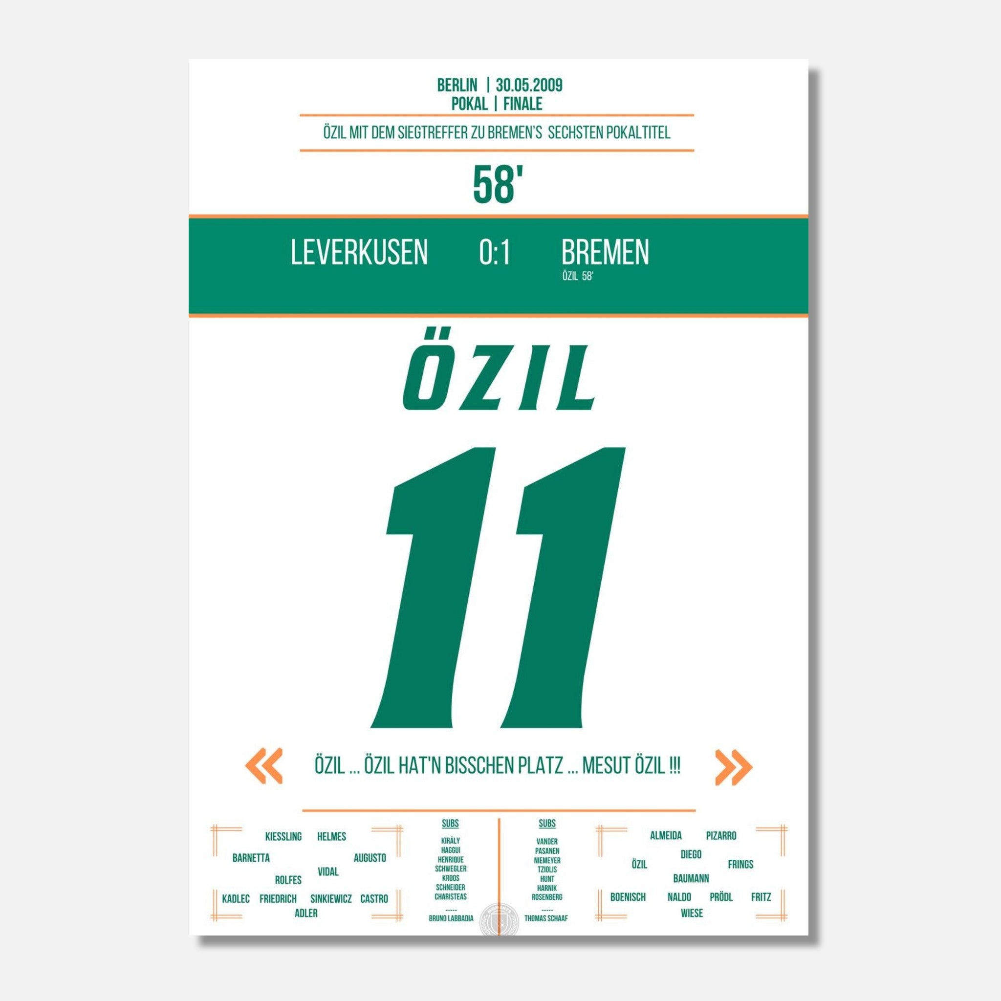 Mesut Özil in der 58. Minute – eiskalt zum Pokalsieg. Ein magischer Moment im Olympiastadion, jetzt als Poster für deine Wand.