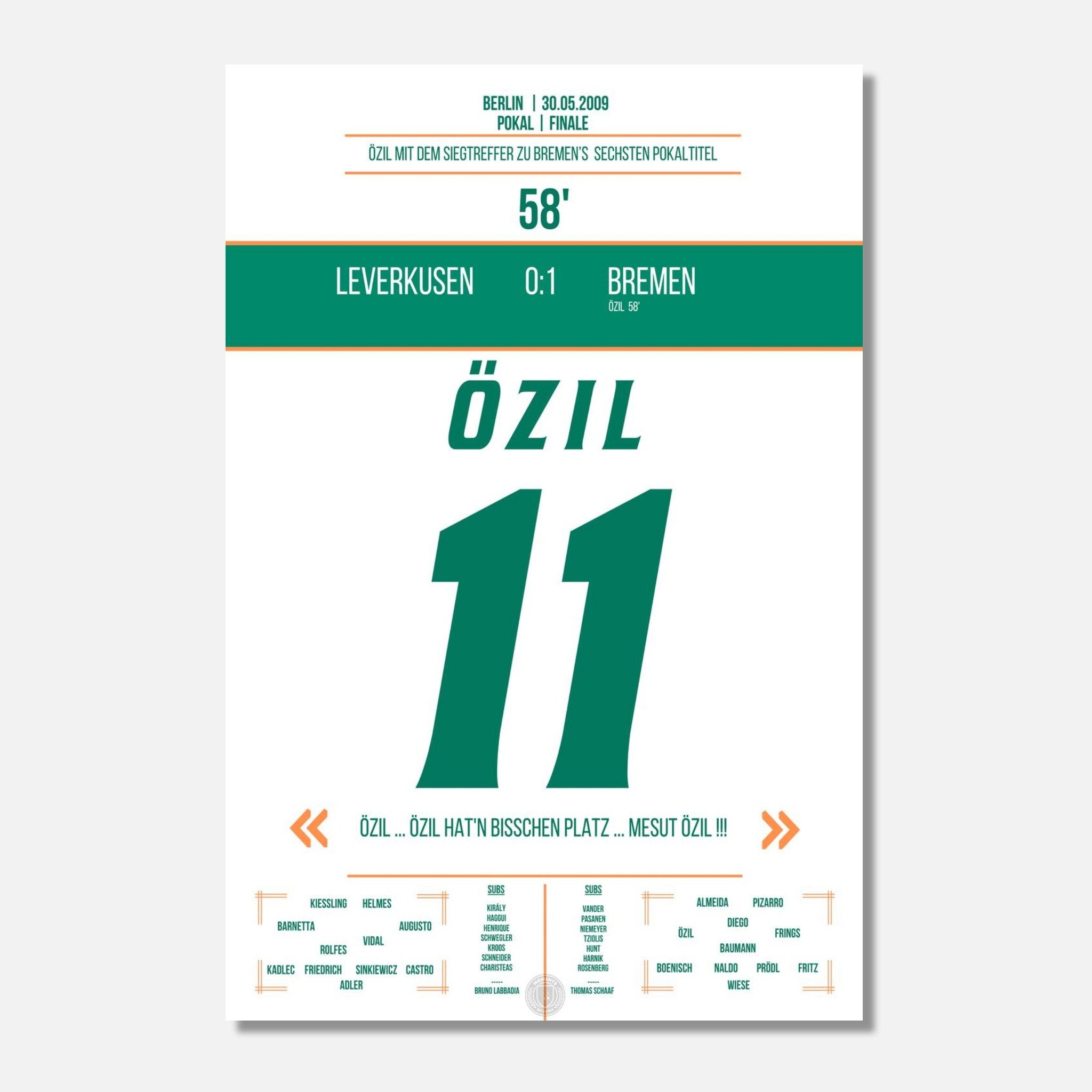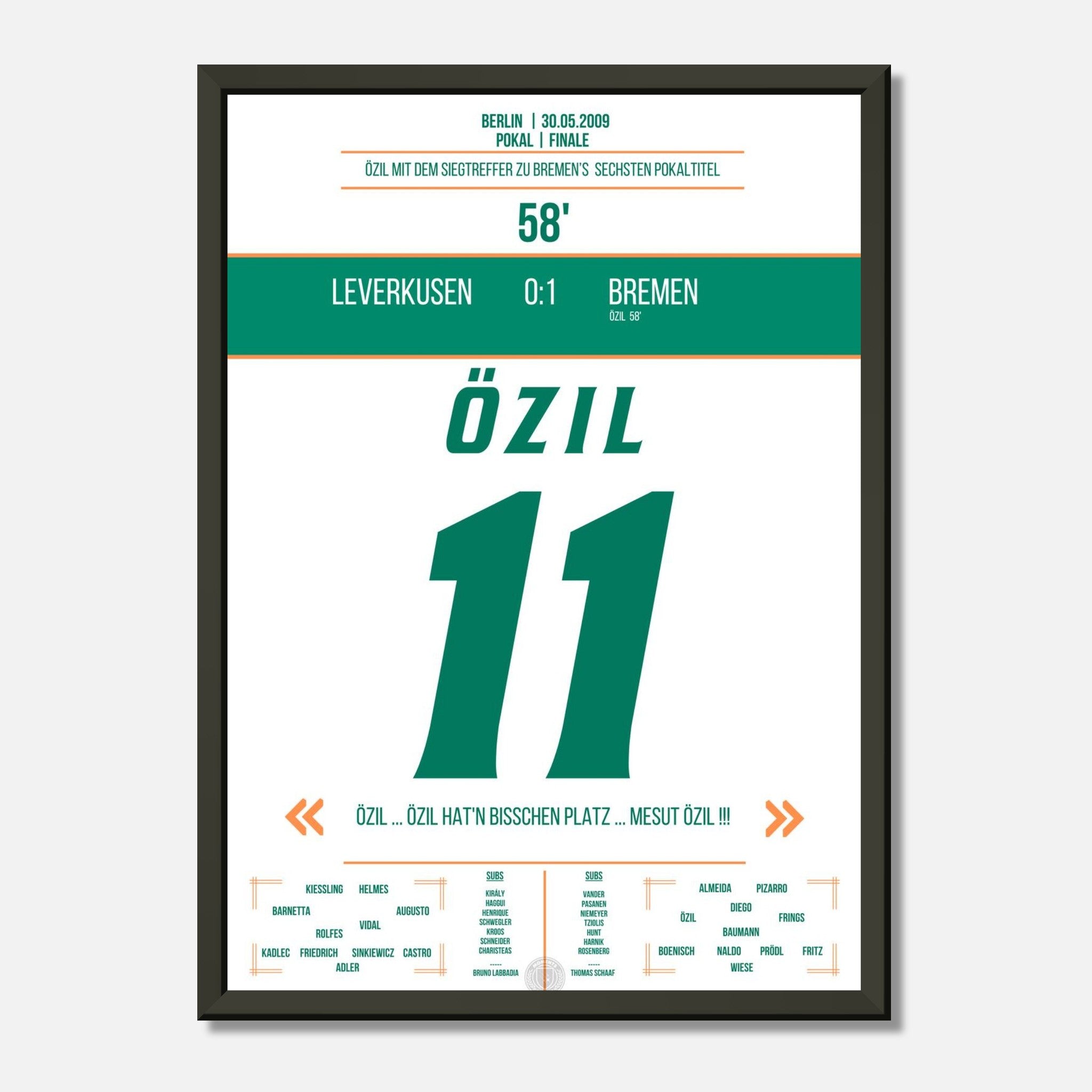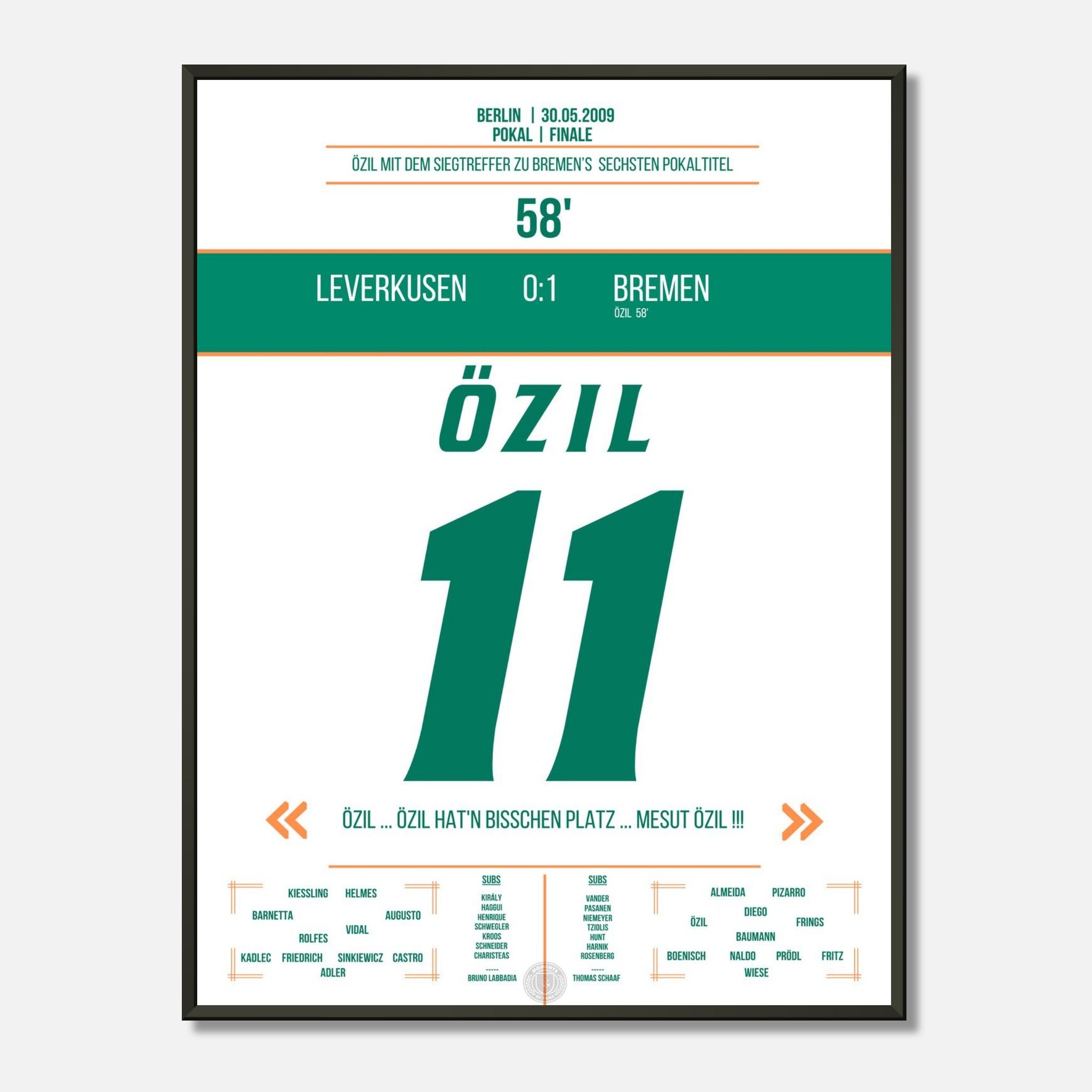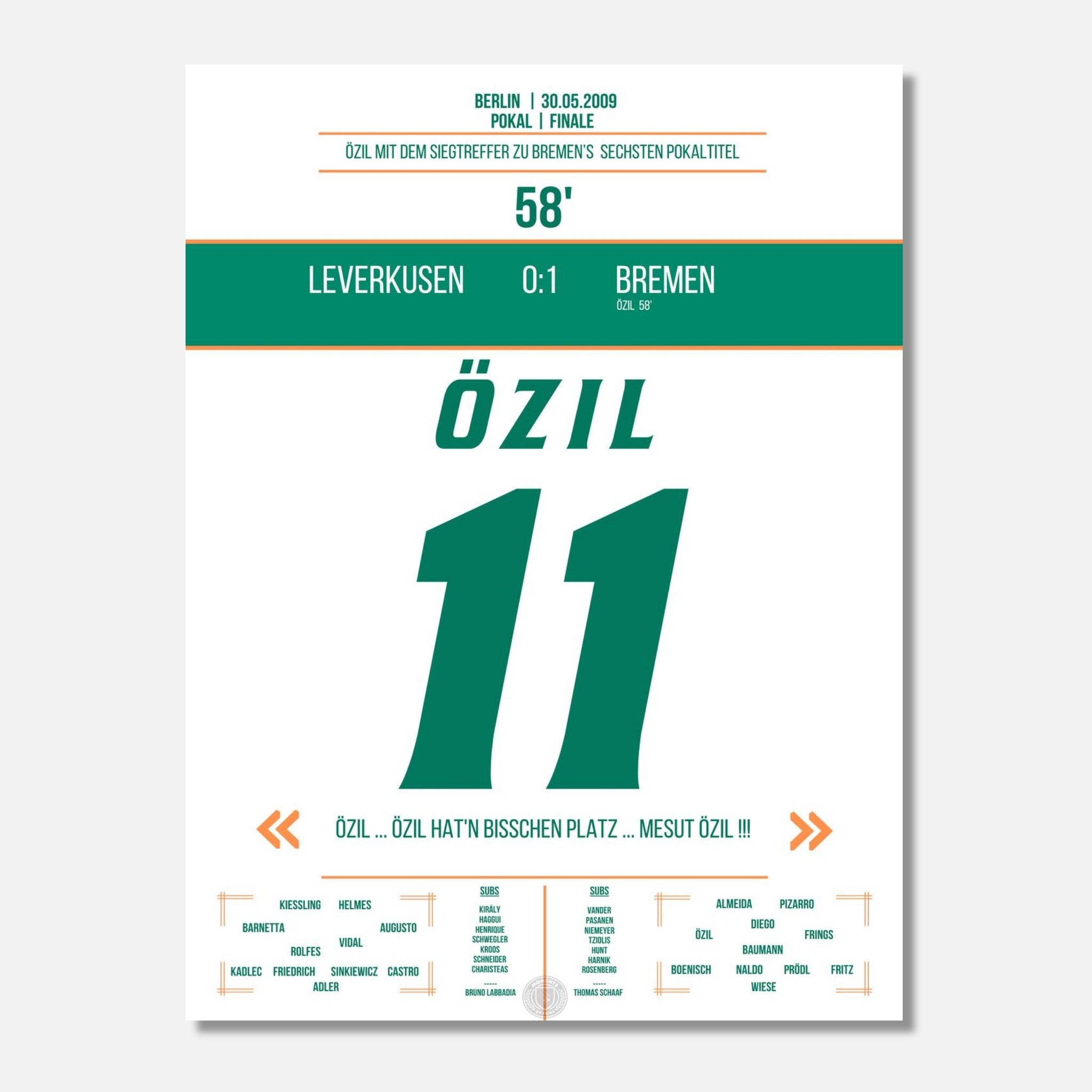 Mesut Özil in der 58. Minute – eiskalt zum Pokalsieg. Ein magischer Moment im Olympiastadion, jetzt als Poster für deine Wand.