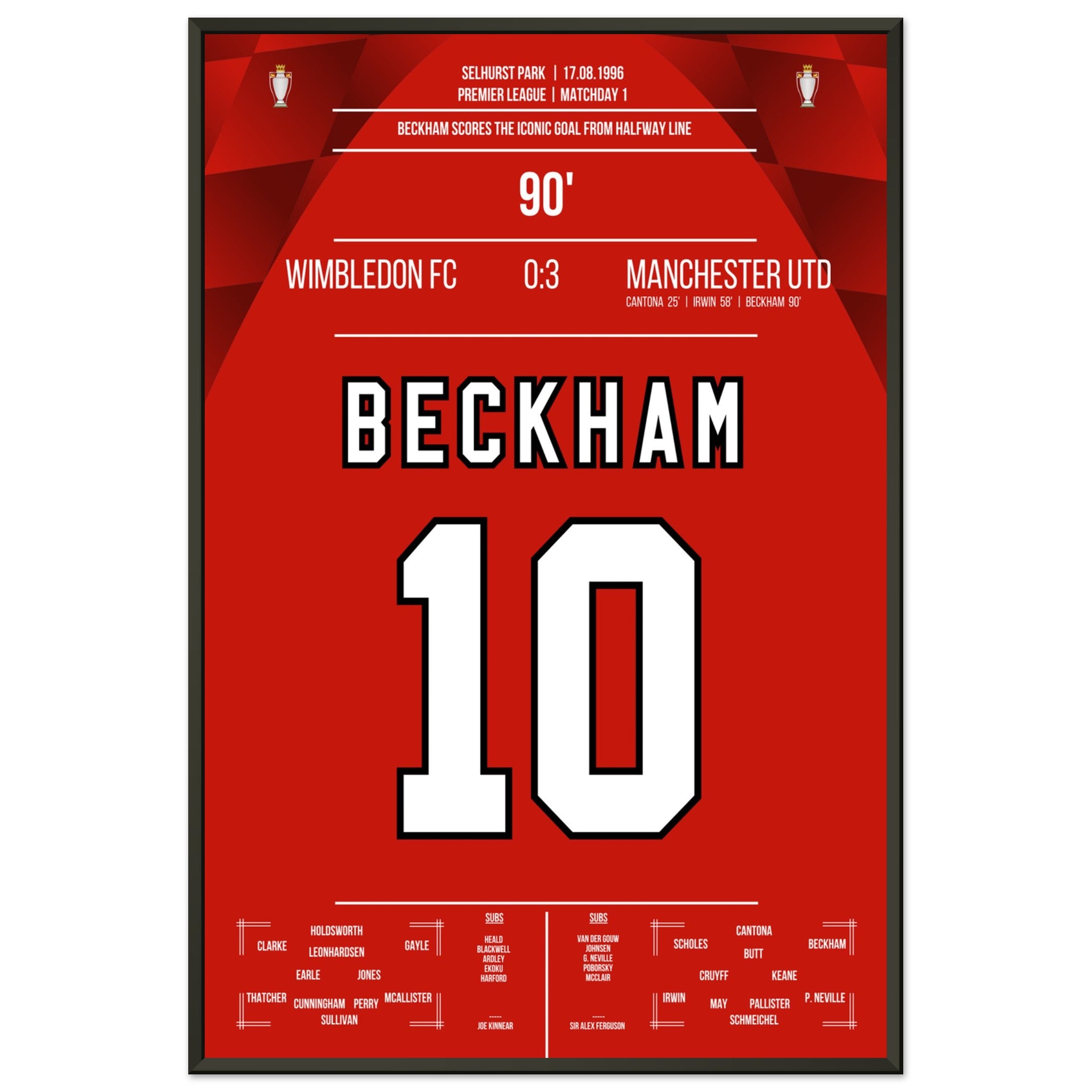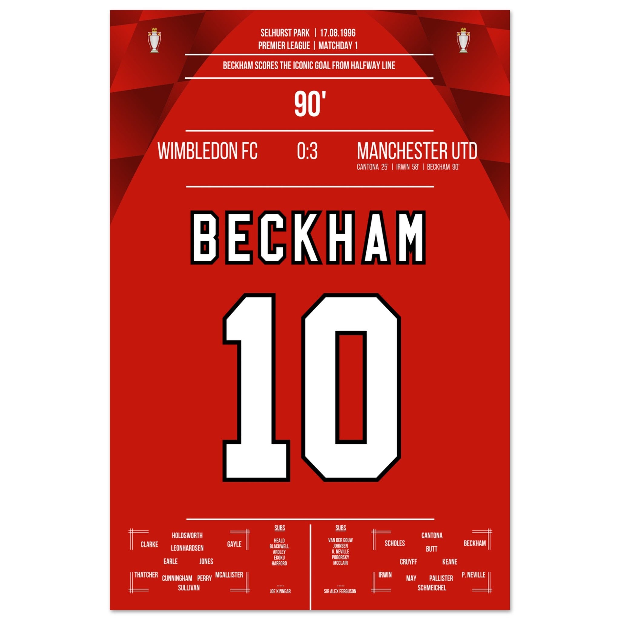 Beckham's Tor von der Mittellinie beim Auswärtsspiel gegen Wimbledon 1996