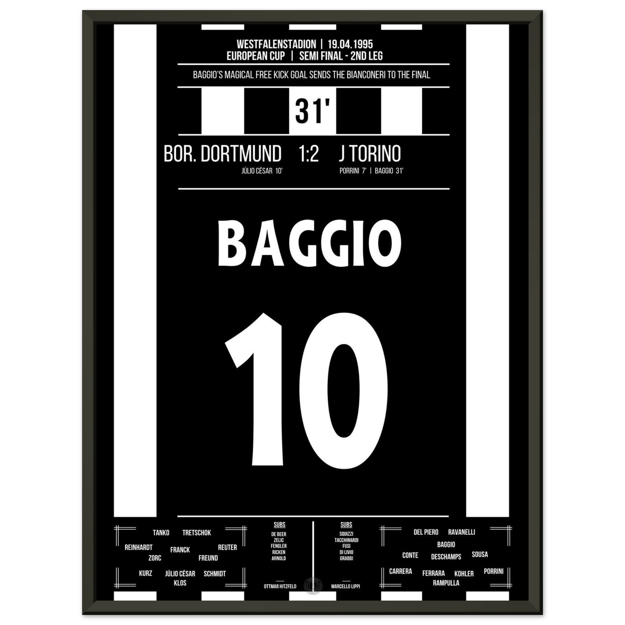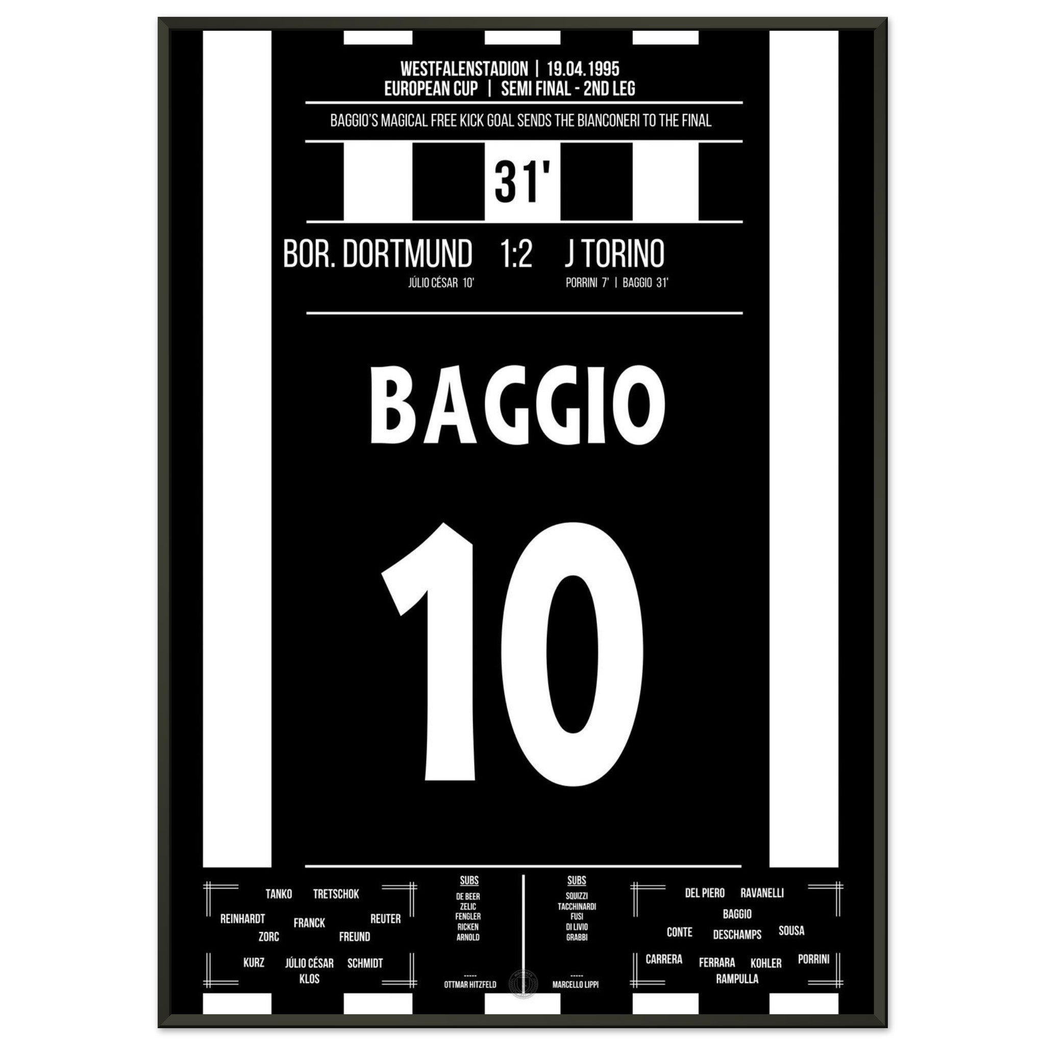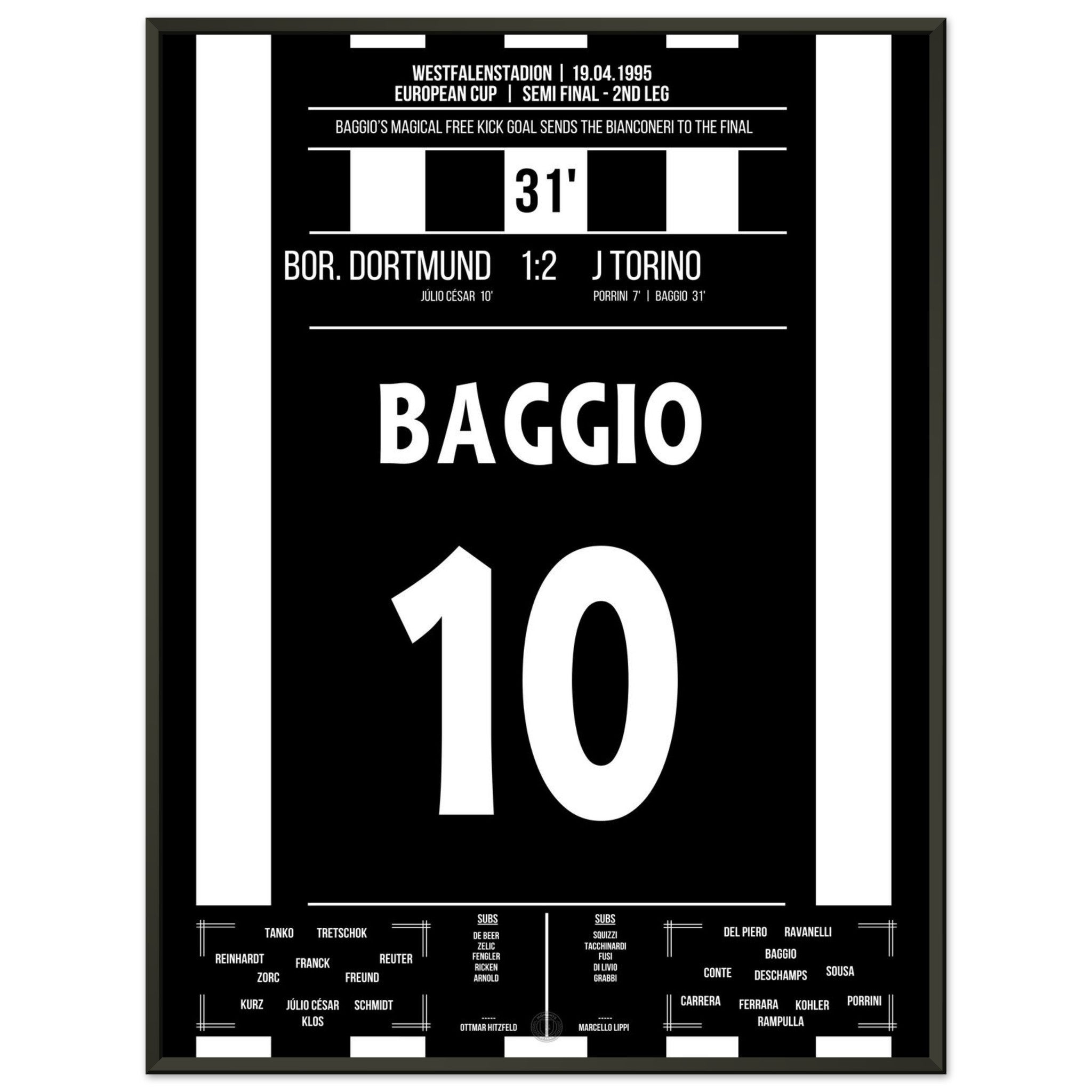 Hier kommt unser Premium-Druck dieses unvergesslichen Fußballmoments für das ultimative Fan-Erlebnis. Gedruckt auf schwerem, seidenmattem Premium-Papier, glänzt dieses Kunstwerk mit verstärkten Farben und einem subtilen Glanz, der jedes Detail zum Vorschein bringt.