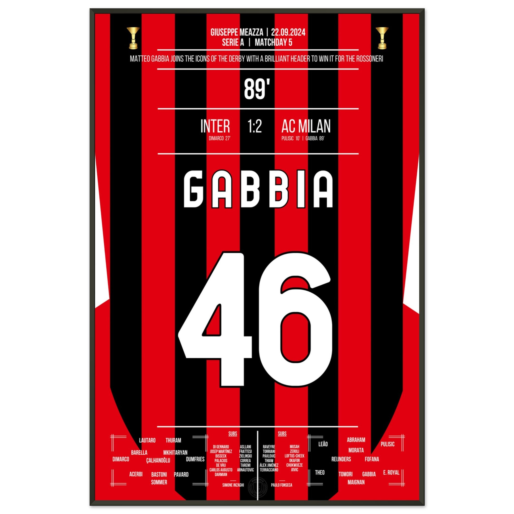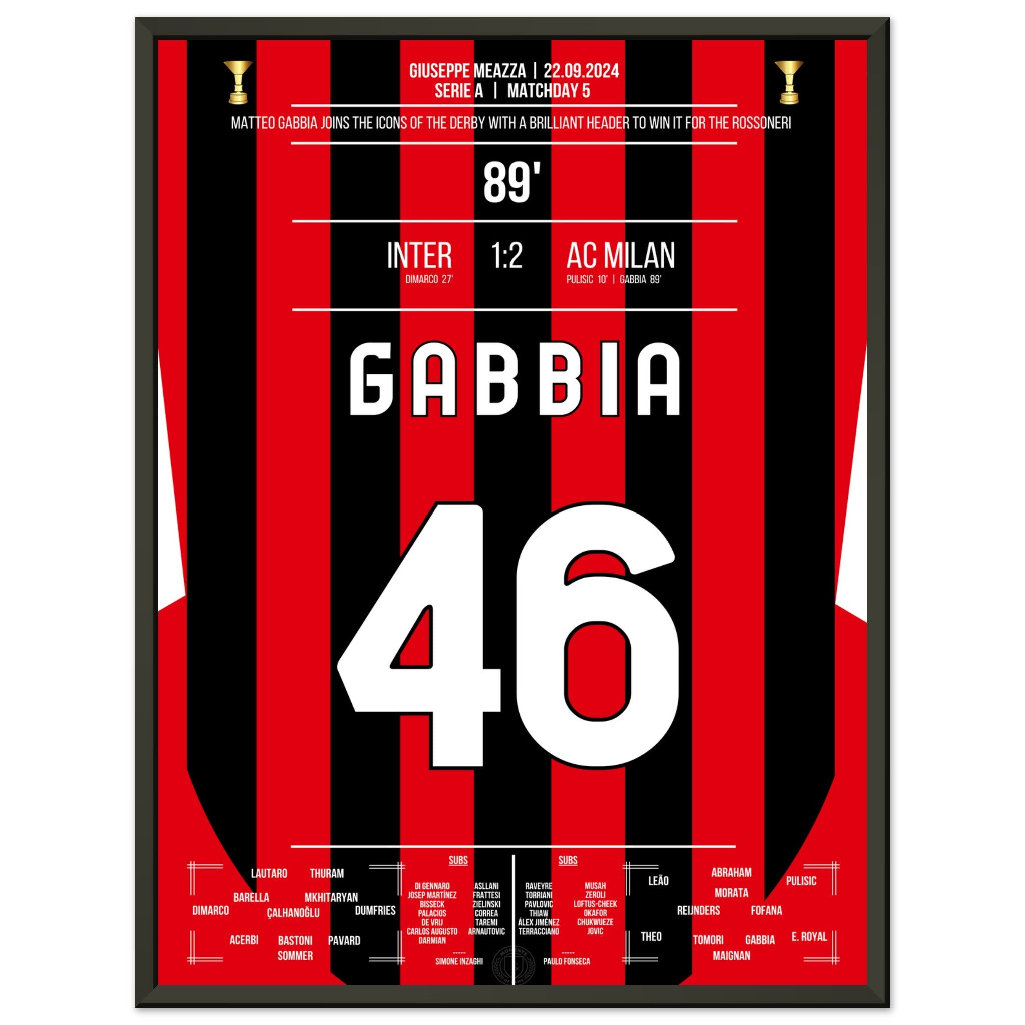 Hier kommt unser Premium-Druck dieses unvergesslichen Fußballmoments für das ultimative Fan-Erlebnis. Gedruckt auf schwerem, seidenmattem Premium-Papier, glänzt dieses Kunstwerk mit verstärkten Farben und einem subtilen Glanz, der jedes Detail zum Vorschein bringt.
