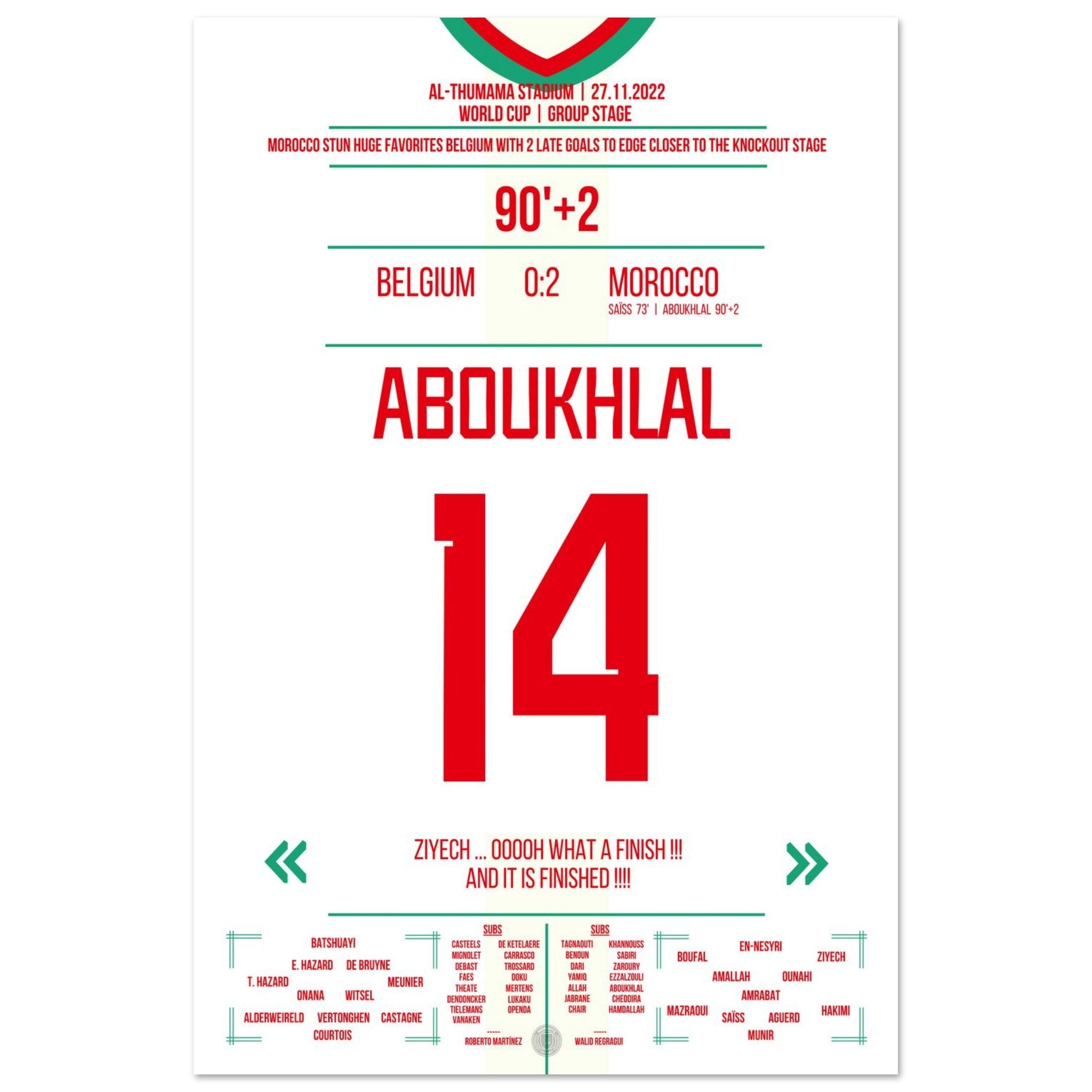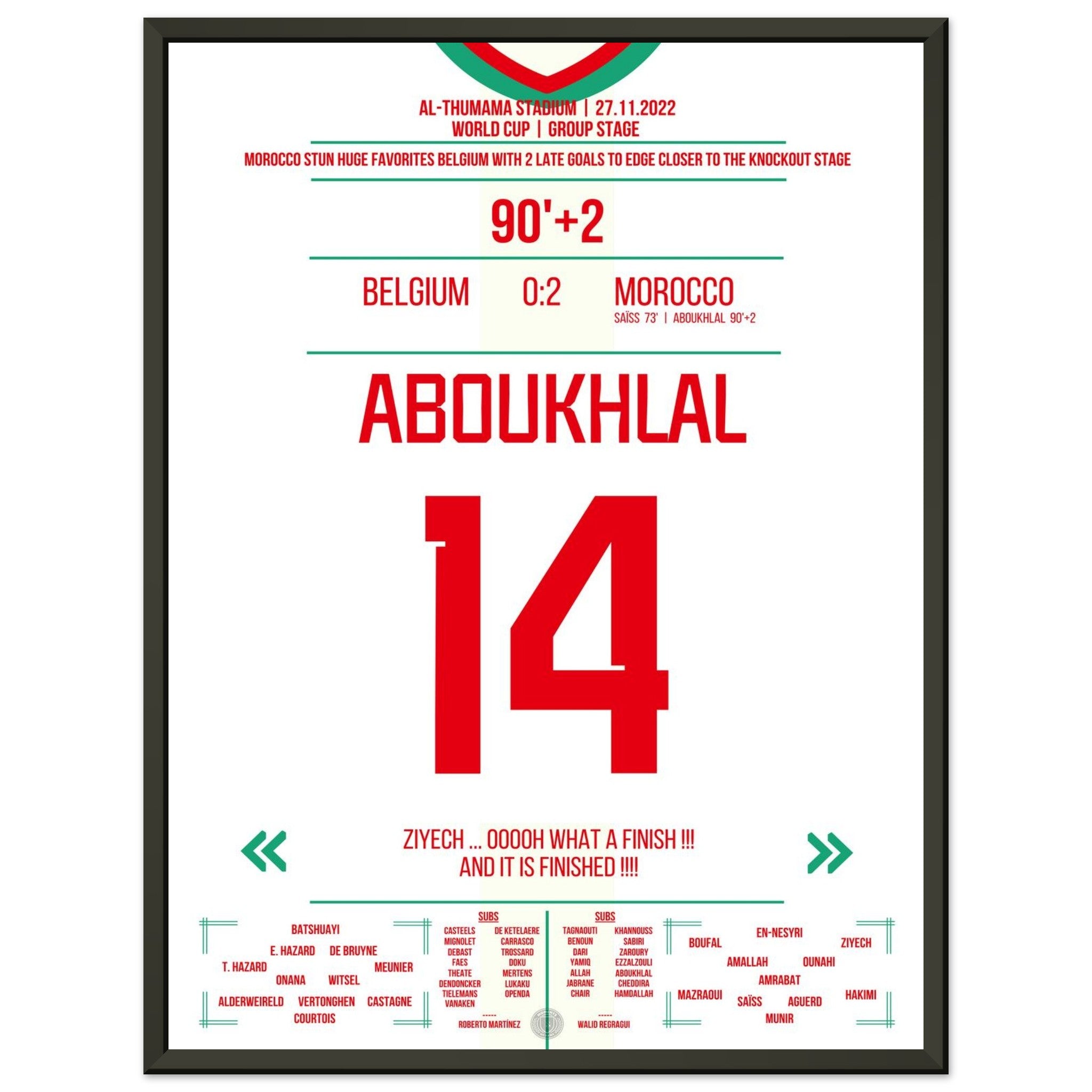 Unser Poster feiert diesen magischen Moment – Marokkos Triumph auf der größten Bühne der Welt. ❤️💚⚽