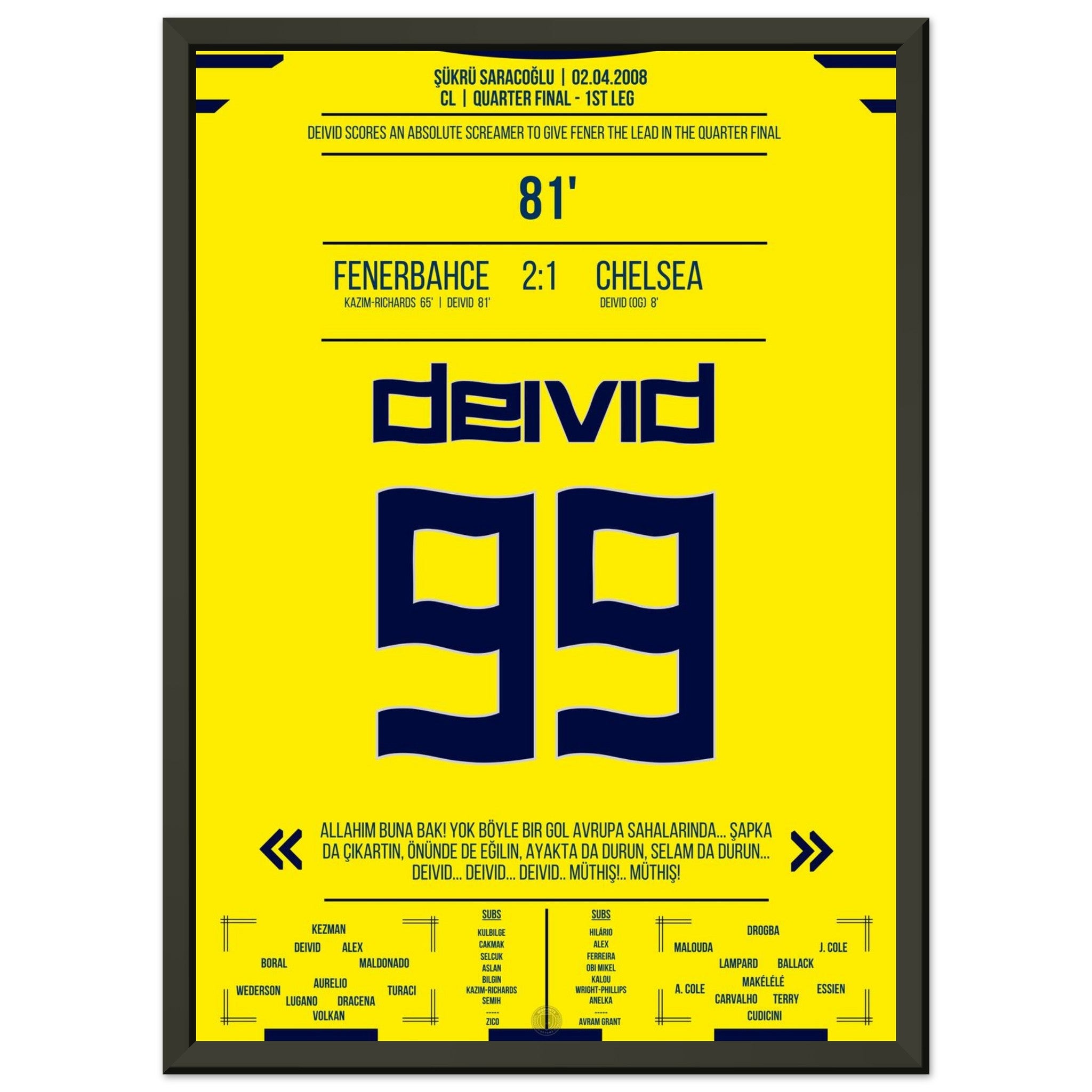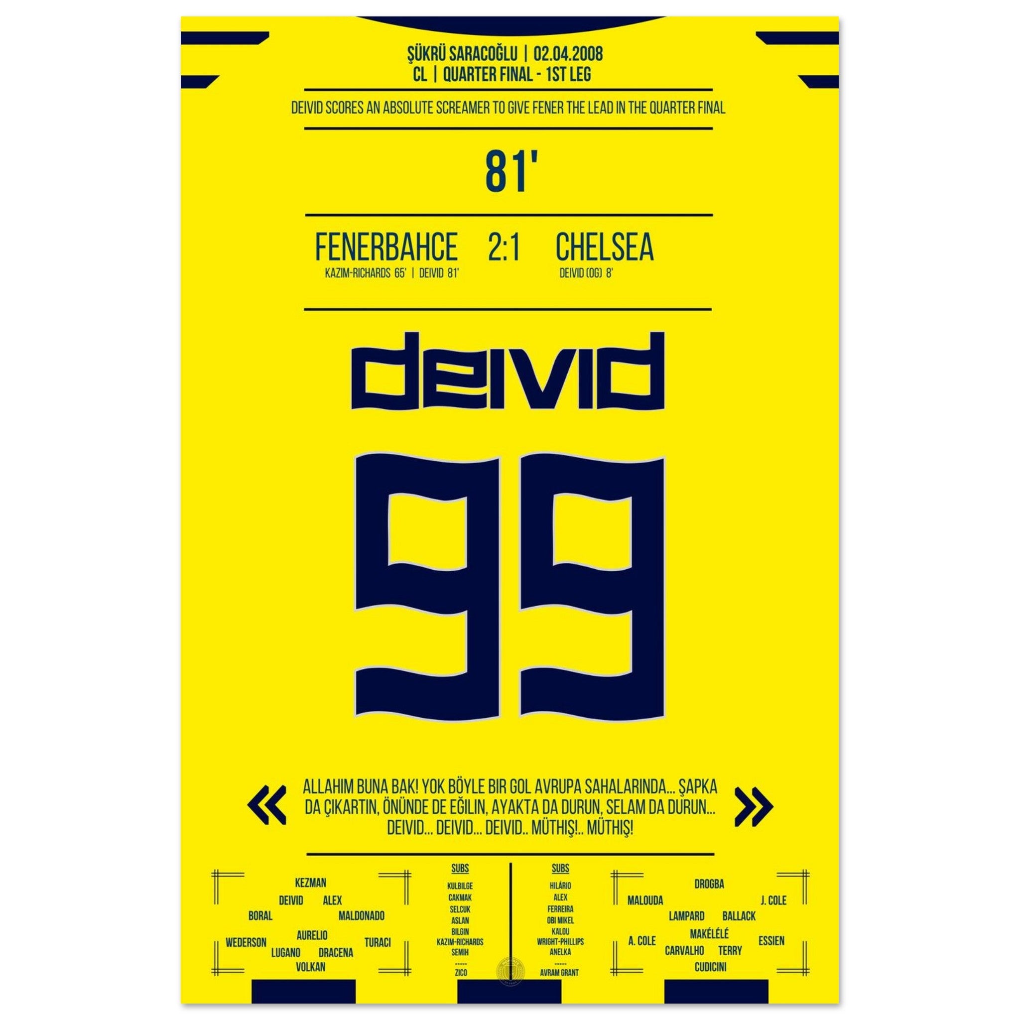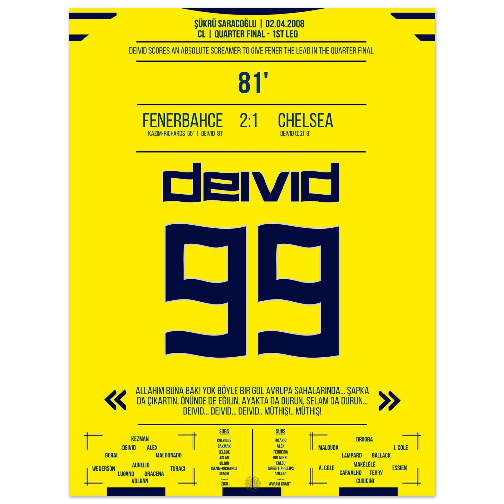 2. April 2008 – Fenerbahce vs. Chelsea 2:1 – Deivids Traumtor erschüttert Europa: