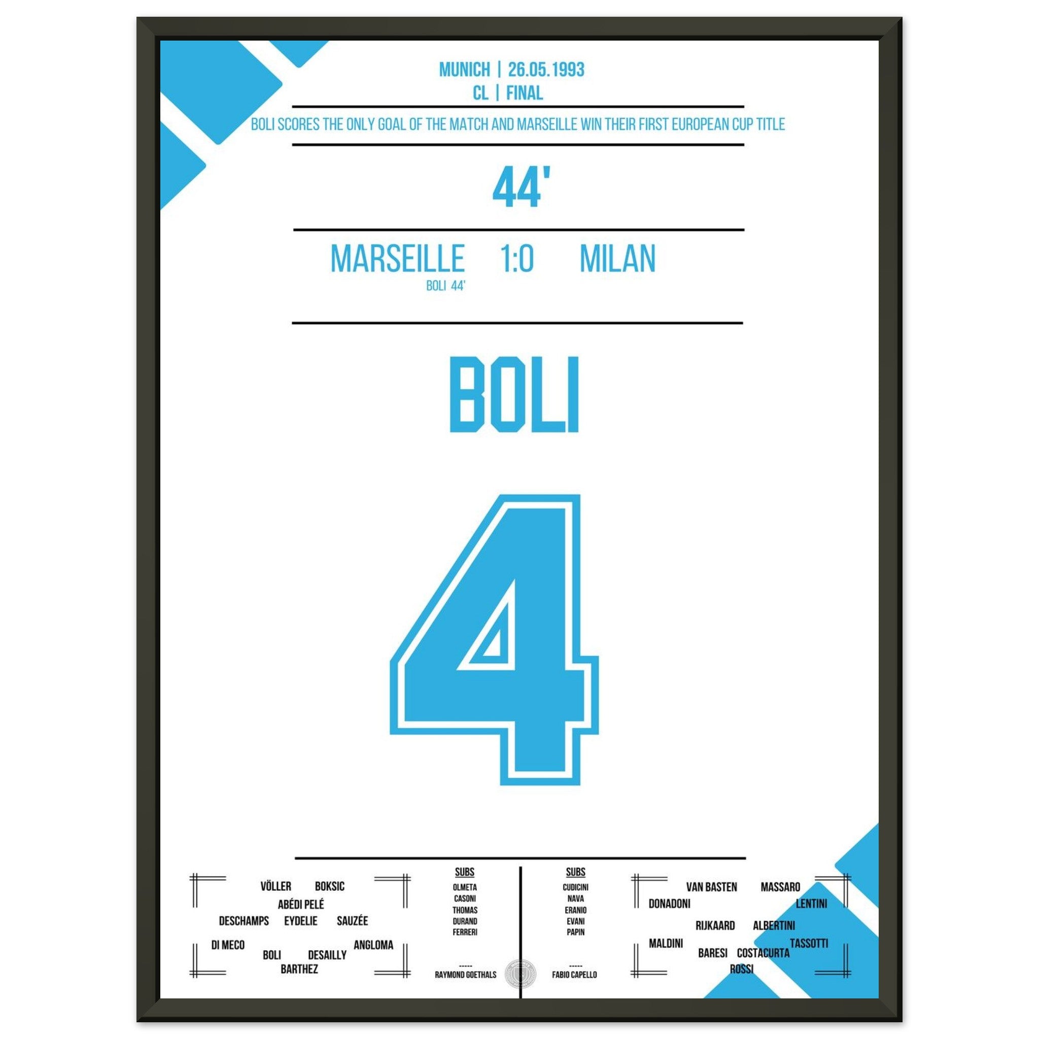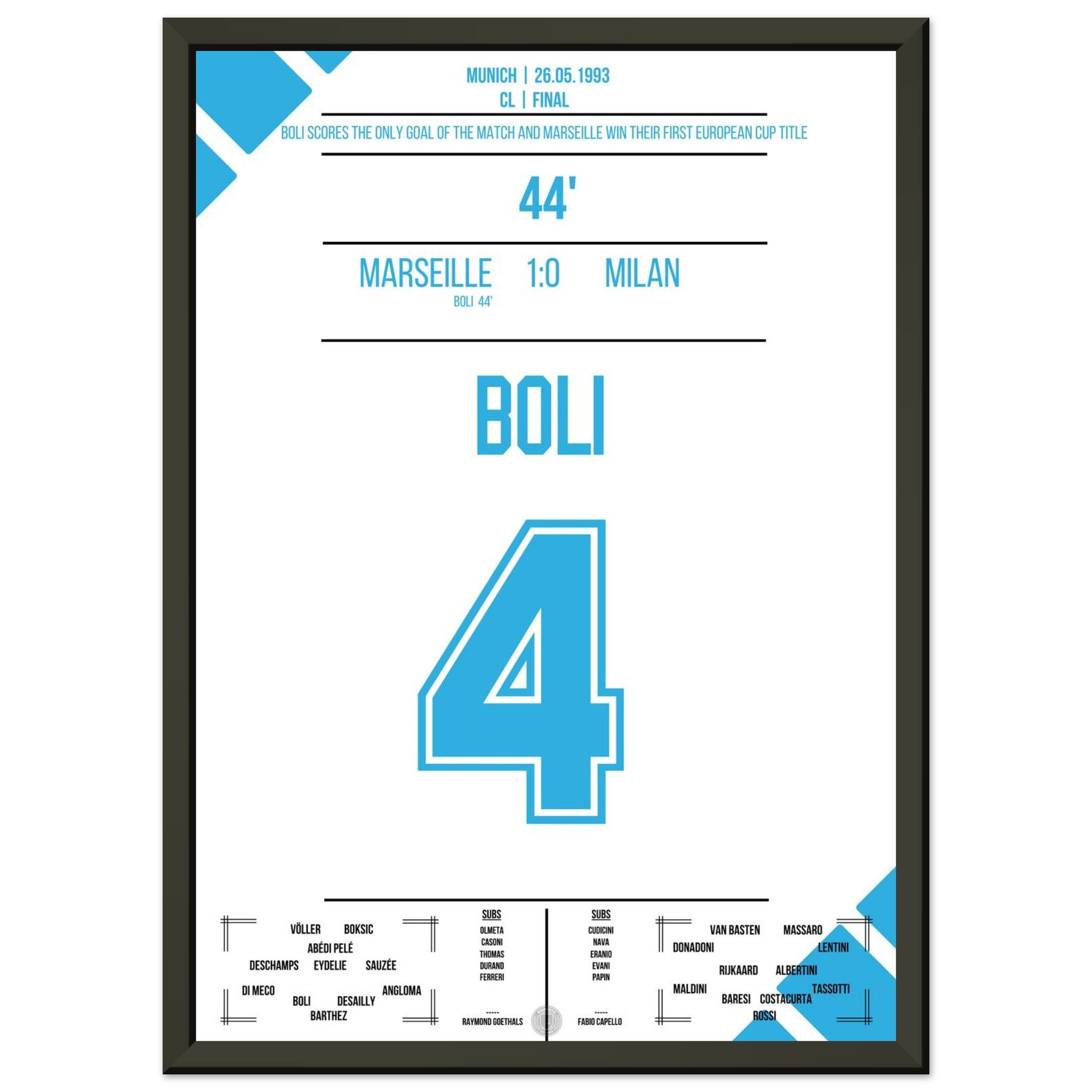 👉 Unser Poster erinnert an Bolis goldenen Kopfball und den größten Triumph Marseilles – für alle, die Fußballgeschichte fühlen wollen.