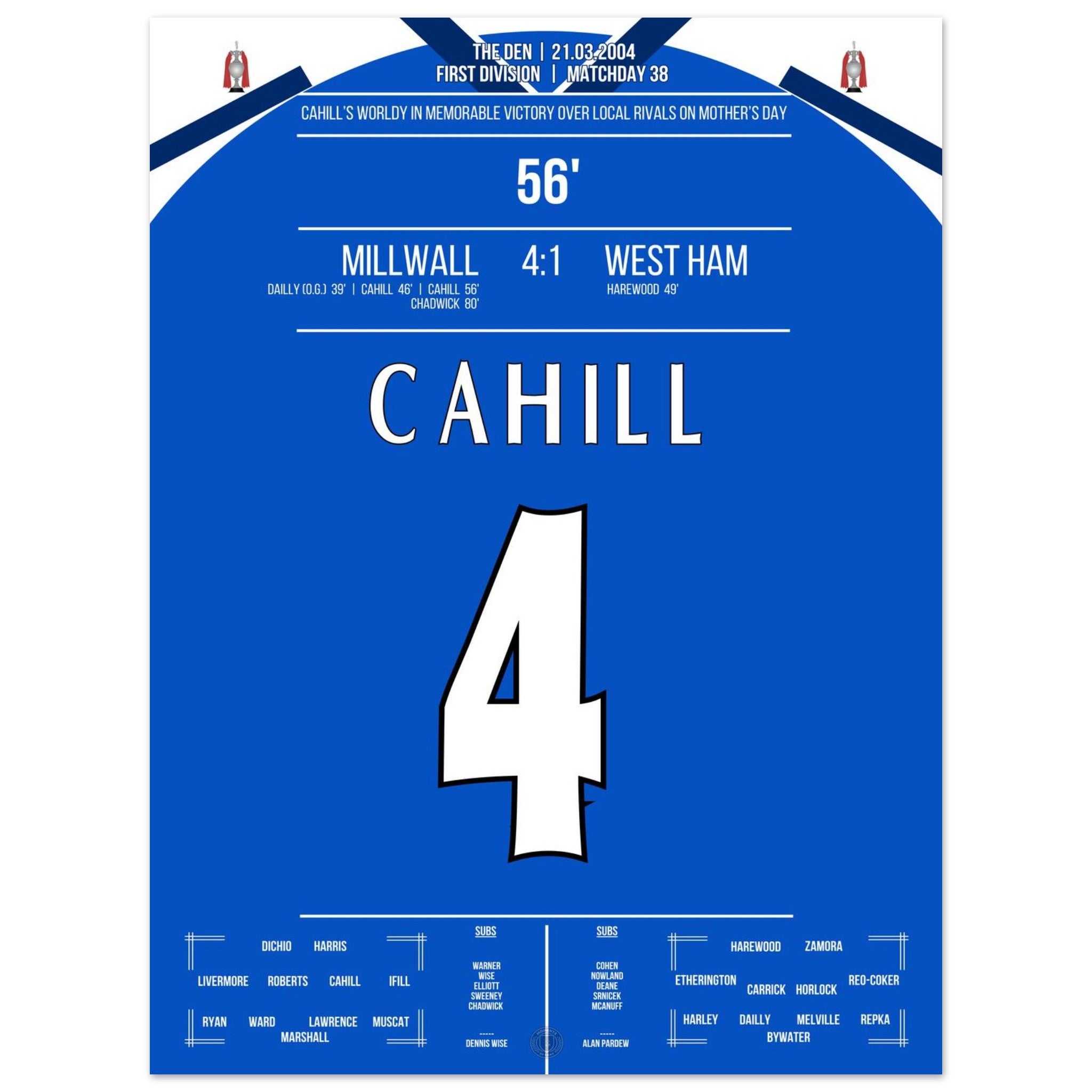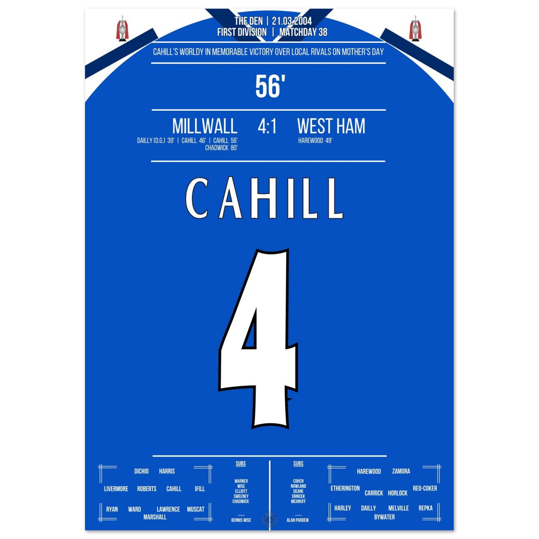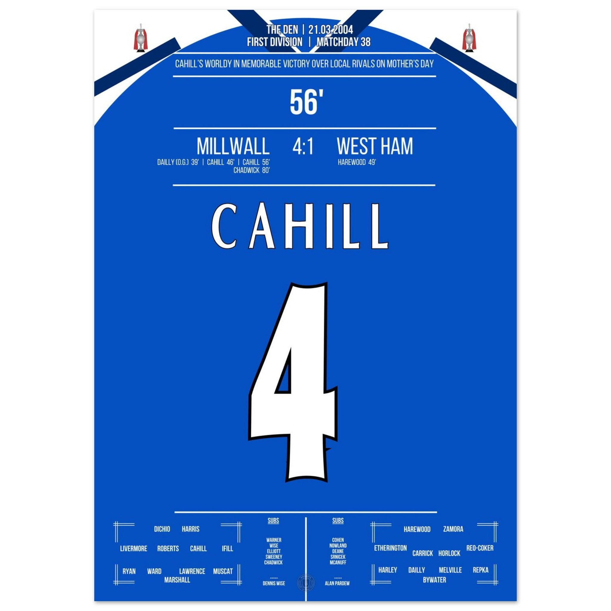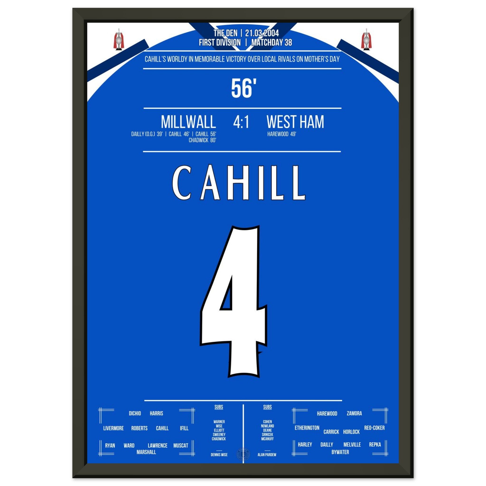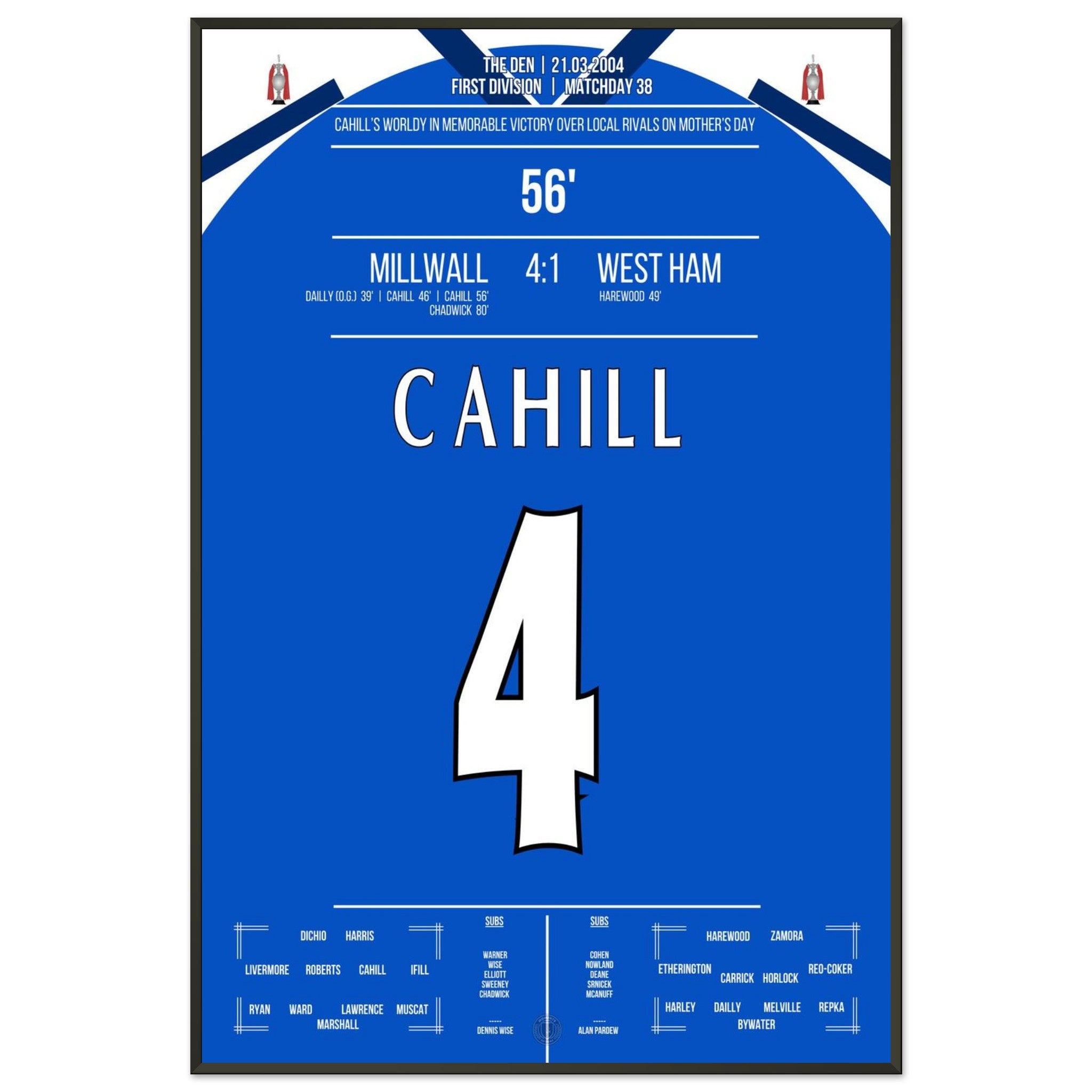 Unser Poster fängt die rohe Energie dieses Tages ein – Millwall pur, voller Stolz und Rivalität.