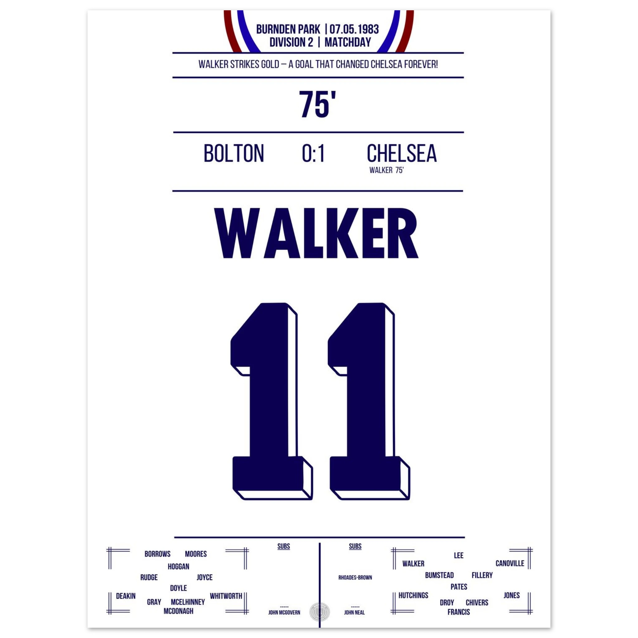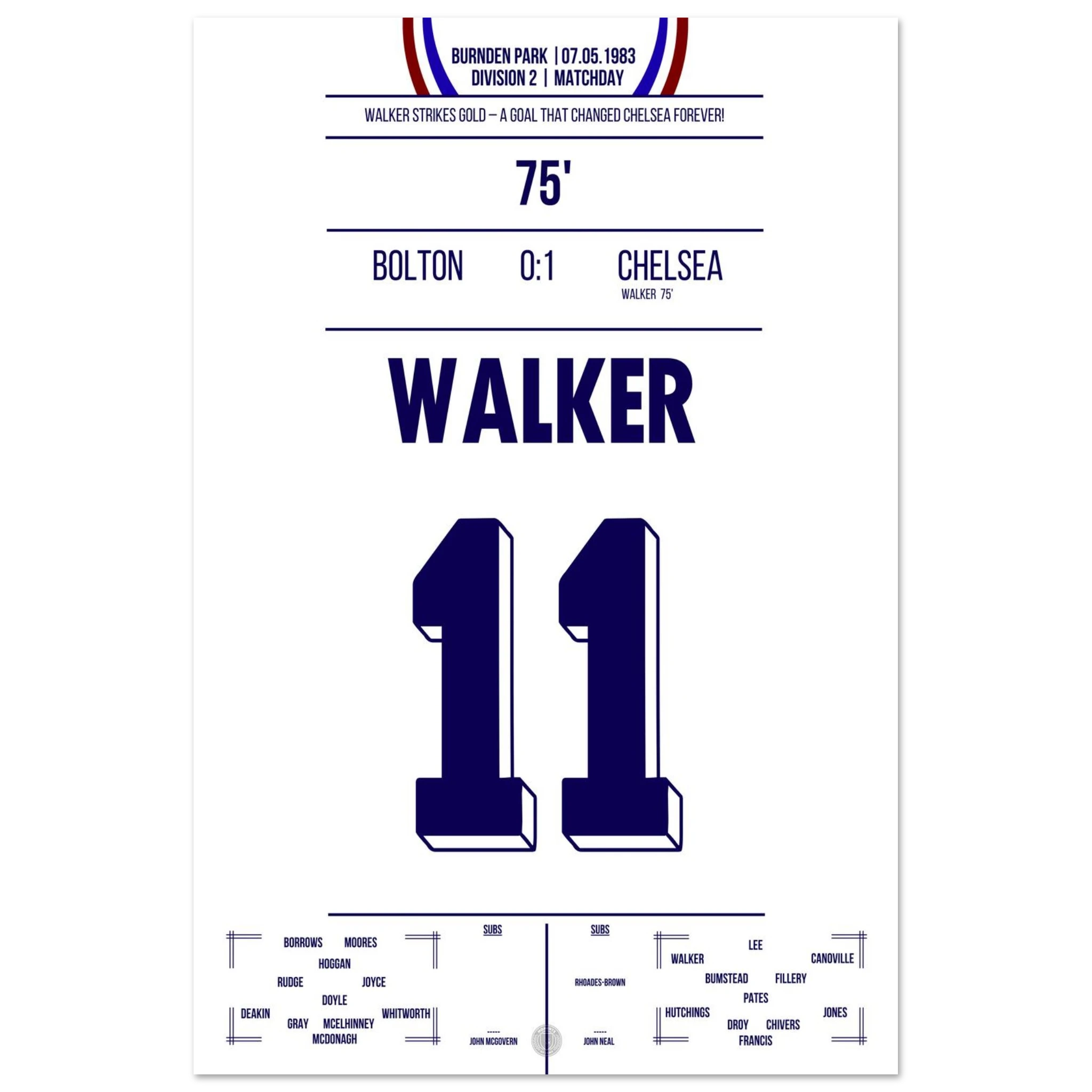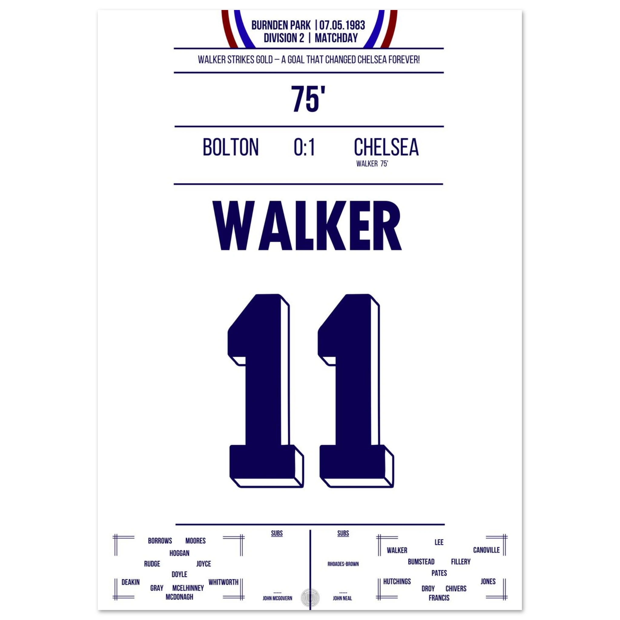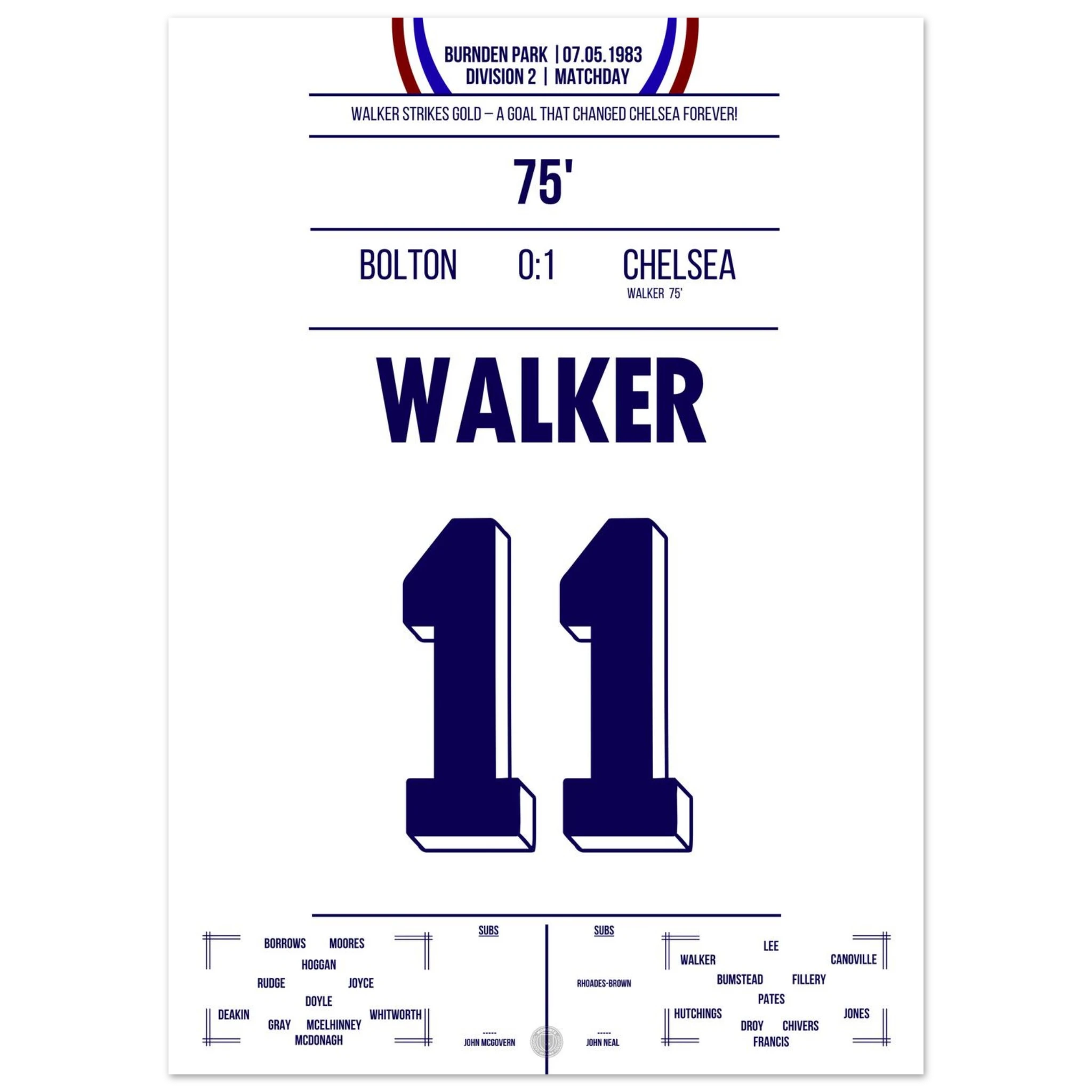 It was more than just a match — it was about survival. Facing relegation and the threat of extinction, Chelsea went to Burnden Park needing a win to stay in the Second Division. With courage and grit, the Blues delivered: goals from David Speedie and Clive Walker secured a 2–0 victory and, with it, the club’s future.