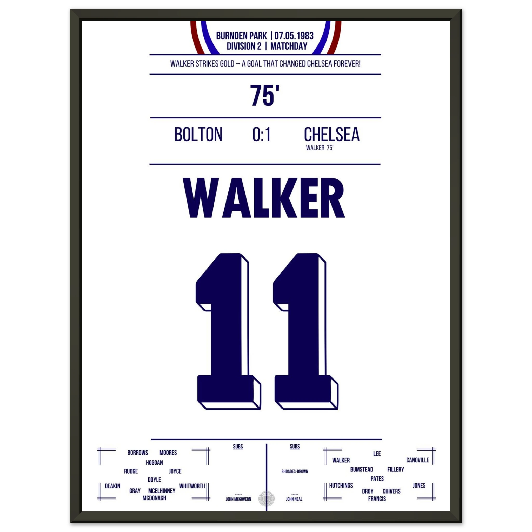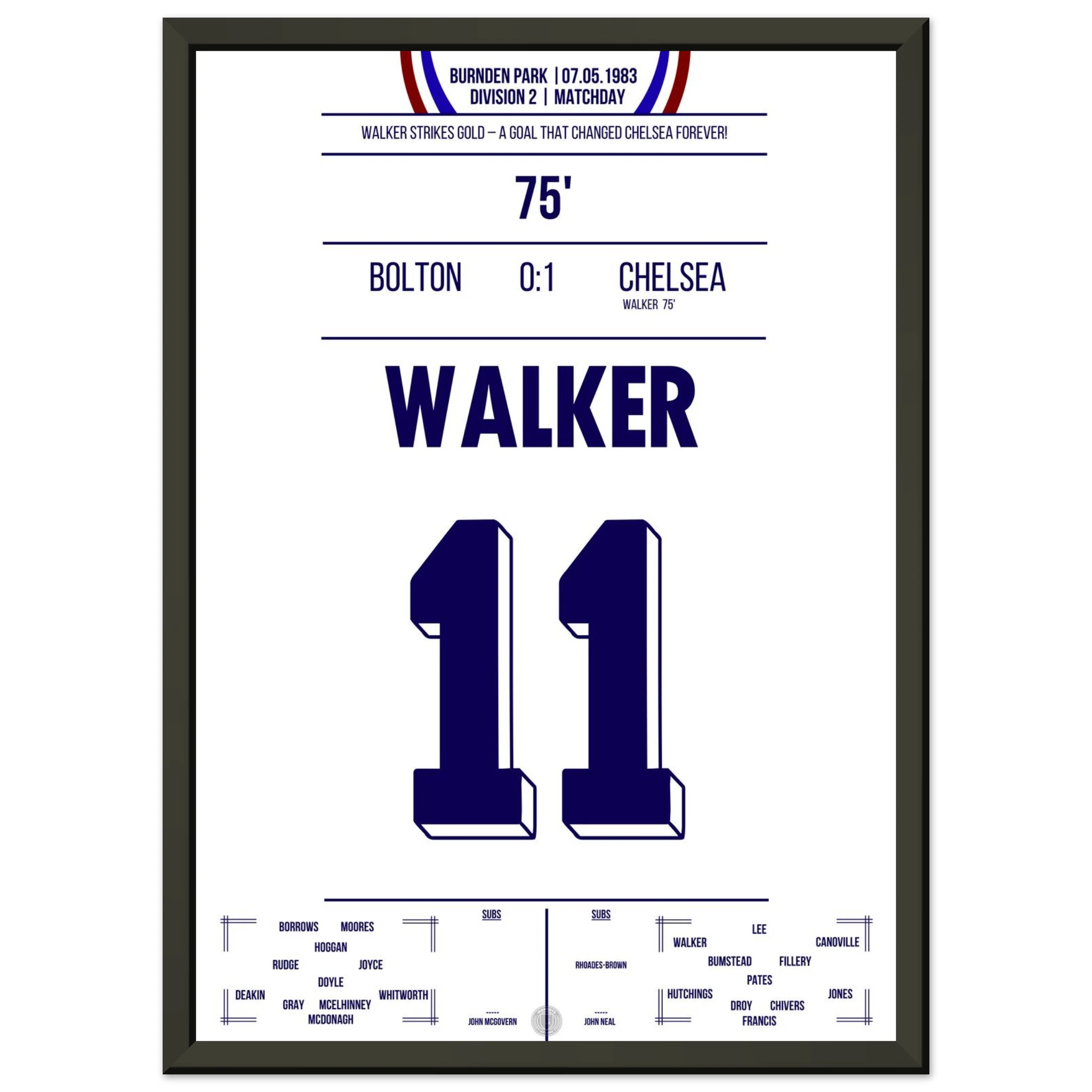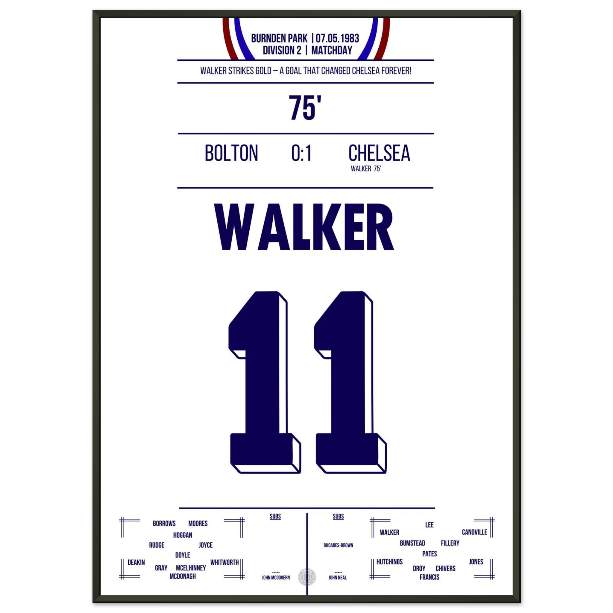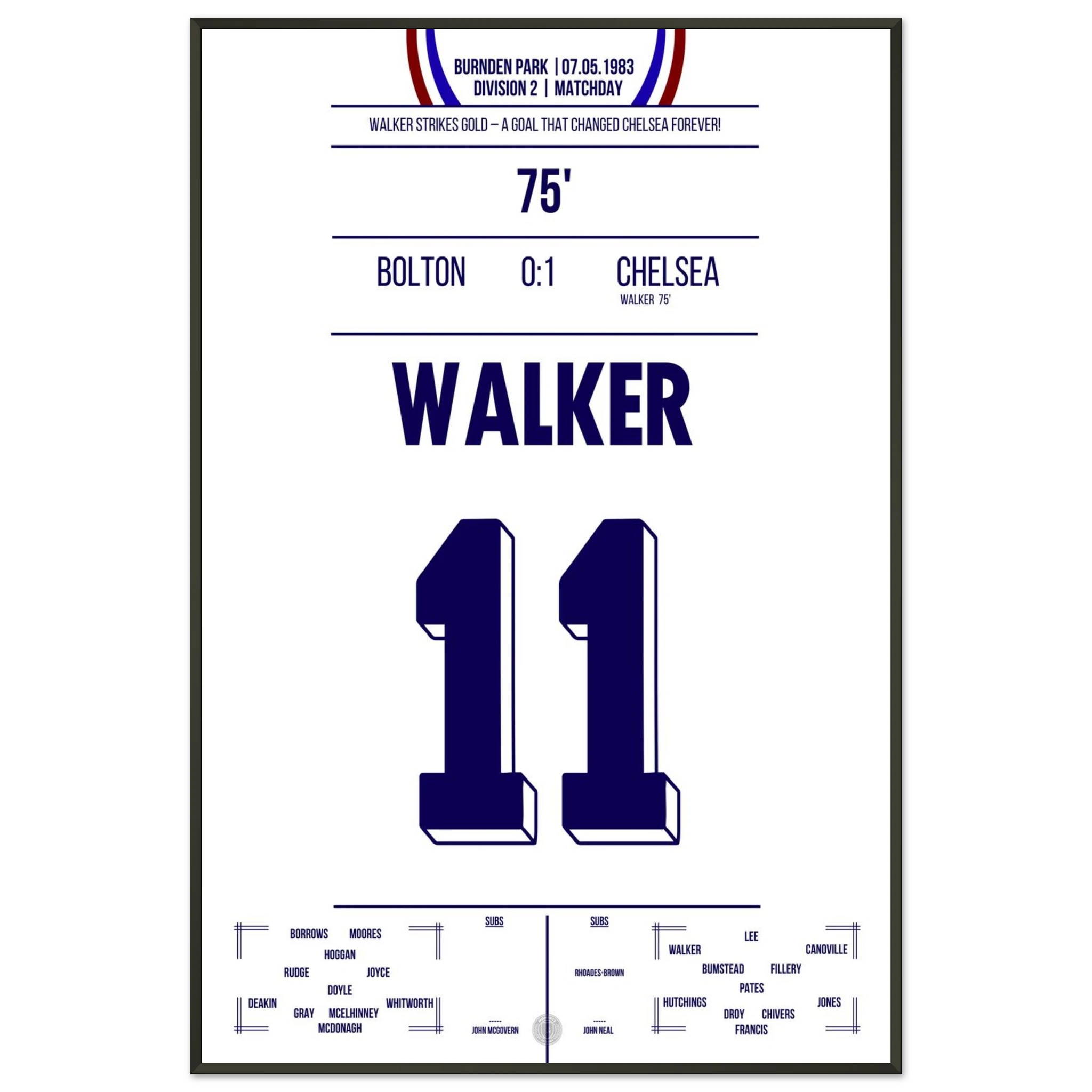 It was more than just a match — it was about survival. Facing relegation and the threat of extinction, Chelsea went to Burnden Park needing a win to stay in the Second Division. With courage and grit, the Blues delivered: goals from David Speedie and Clive Walker secured a 2–0 victory and, with it, the club’s future.