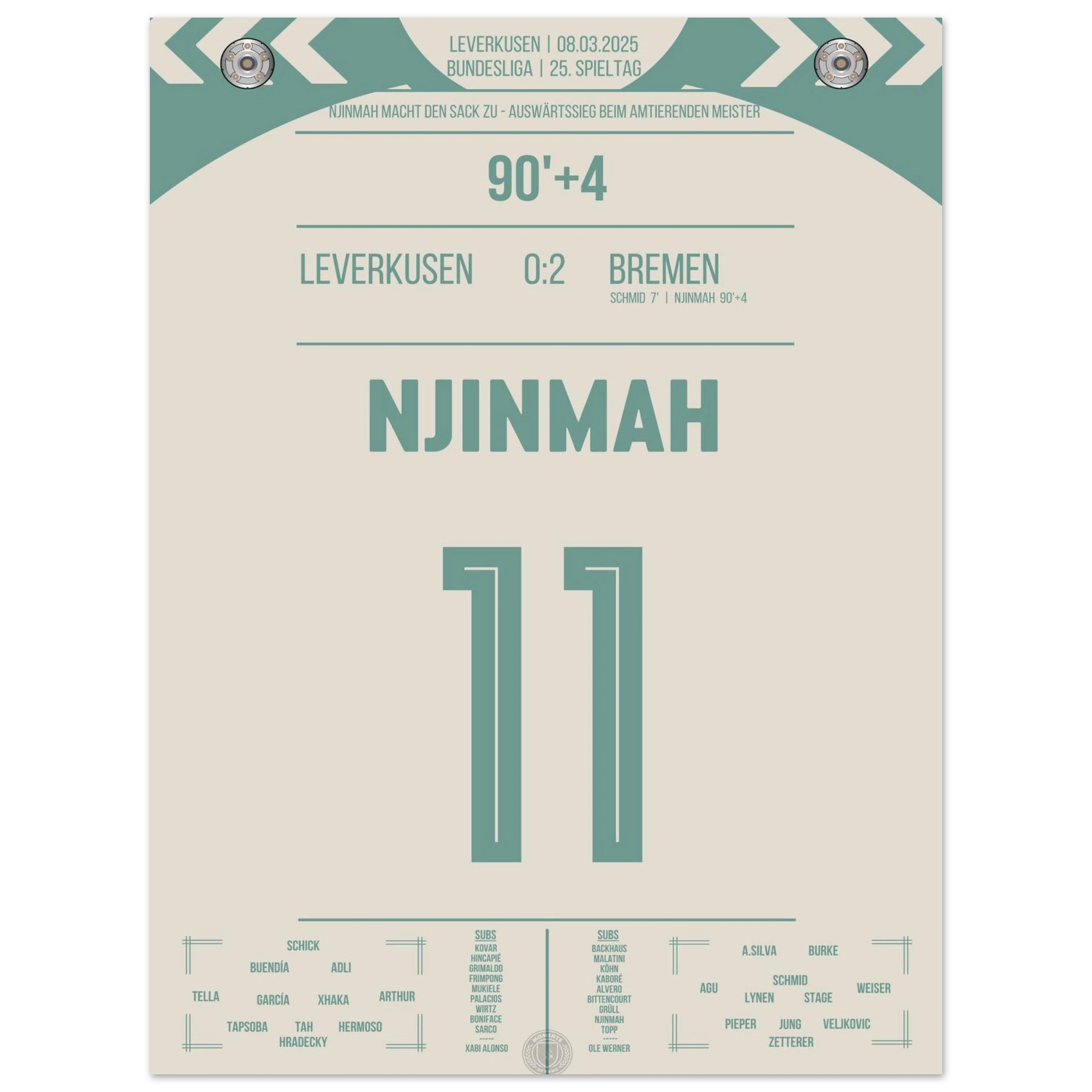 Justin Njinmah. Nachspielzeit. Eiskalt zum 2:0. Bremen schockt den Meister. Jetzt als Poster für deine Wand.