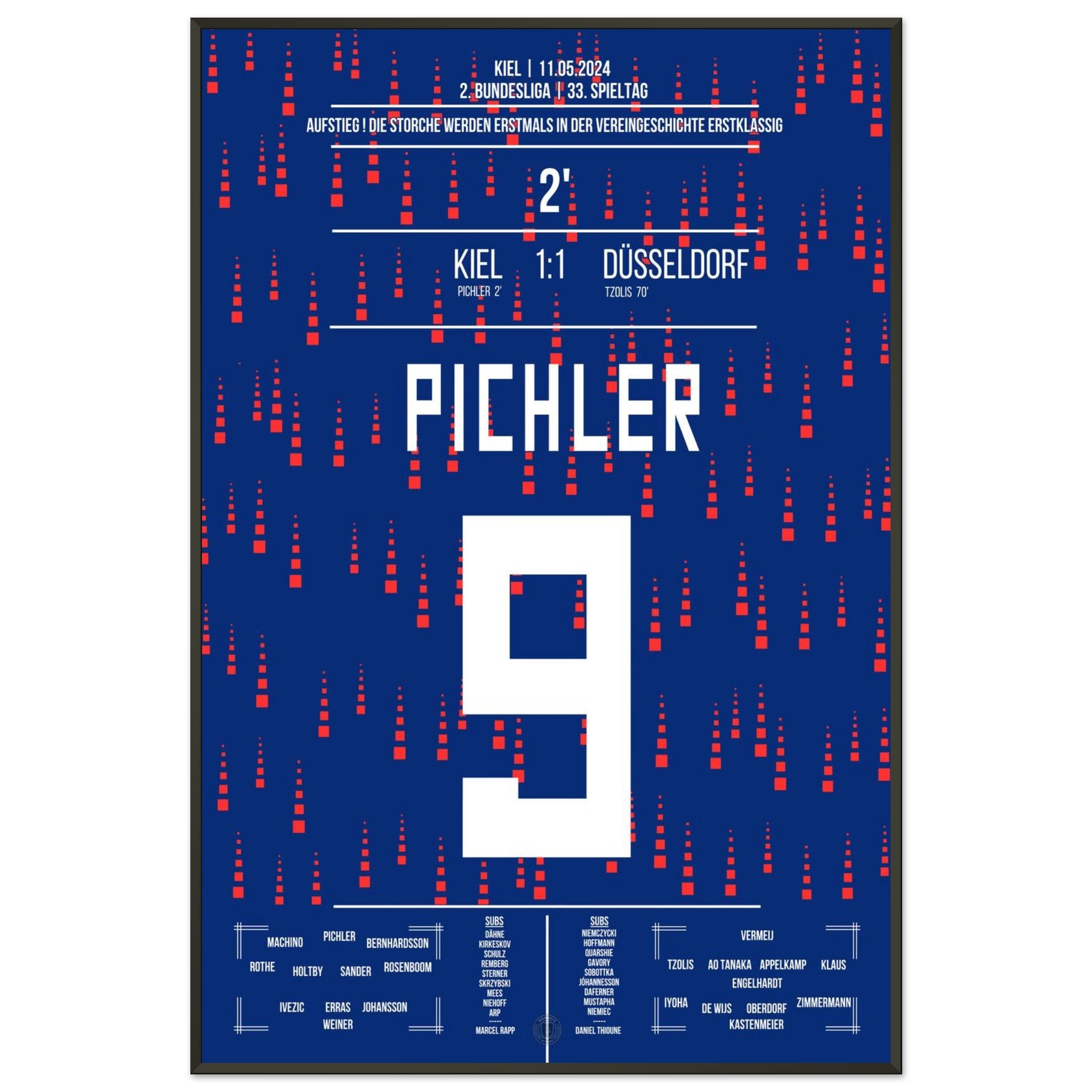 11. Mai 2024 – Kiel vs. Düsseldorf 1:1: In einem nervenaufreibenden Aufstiegsduell erzielt Benedikt Pichler das entscheidende Tor und schreibt Geschichte: Sein Treffer bringt Kiel erstmals überhaupt in die Bundesliga. Ein unvergesslicher Moment für Stadt, Verein und Fans. Unser Poster verewigt diesen historischen Augenblick für die Ewigkeit.