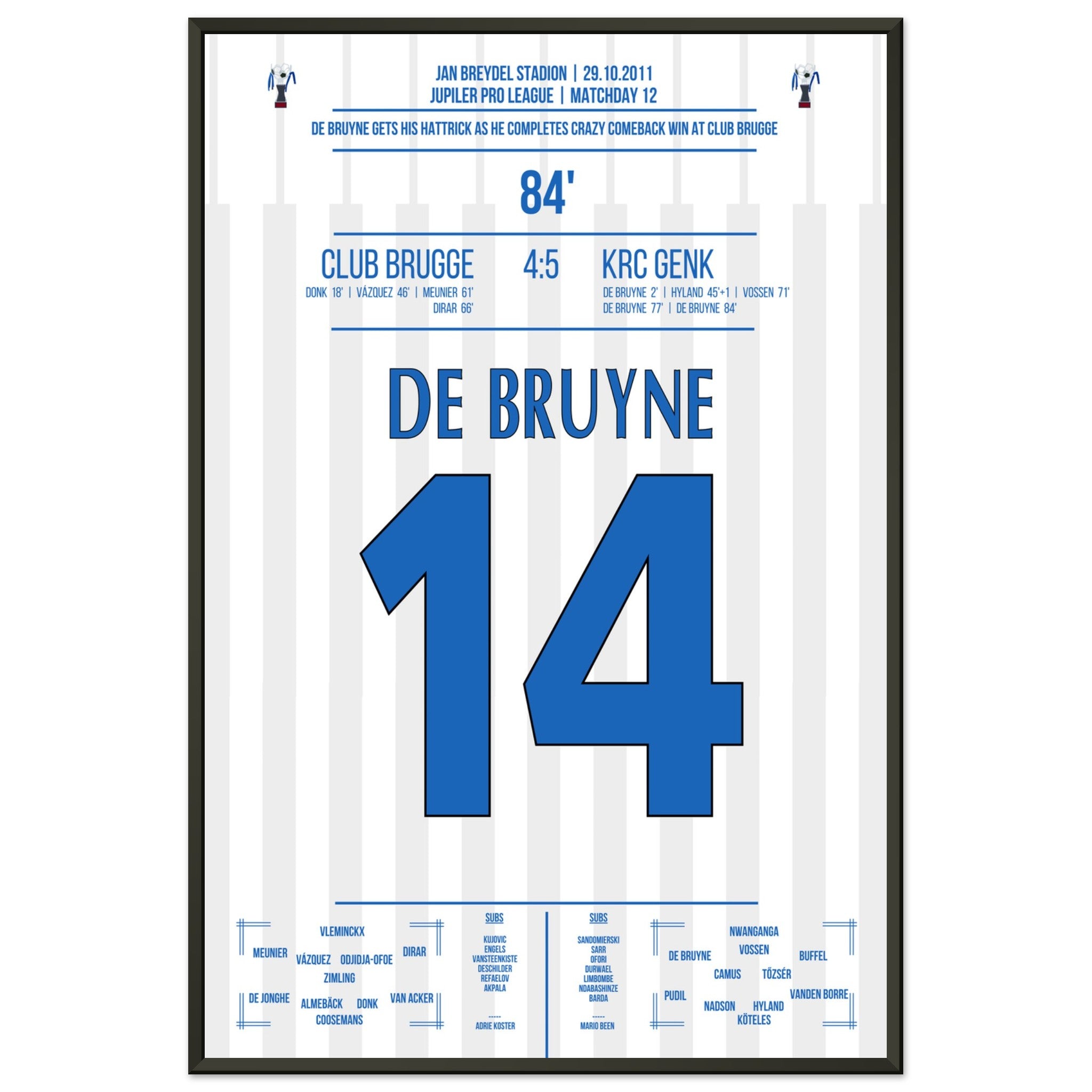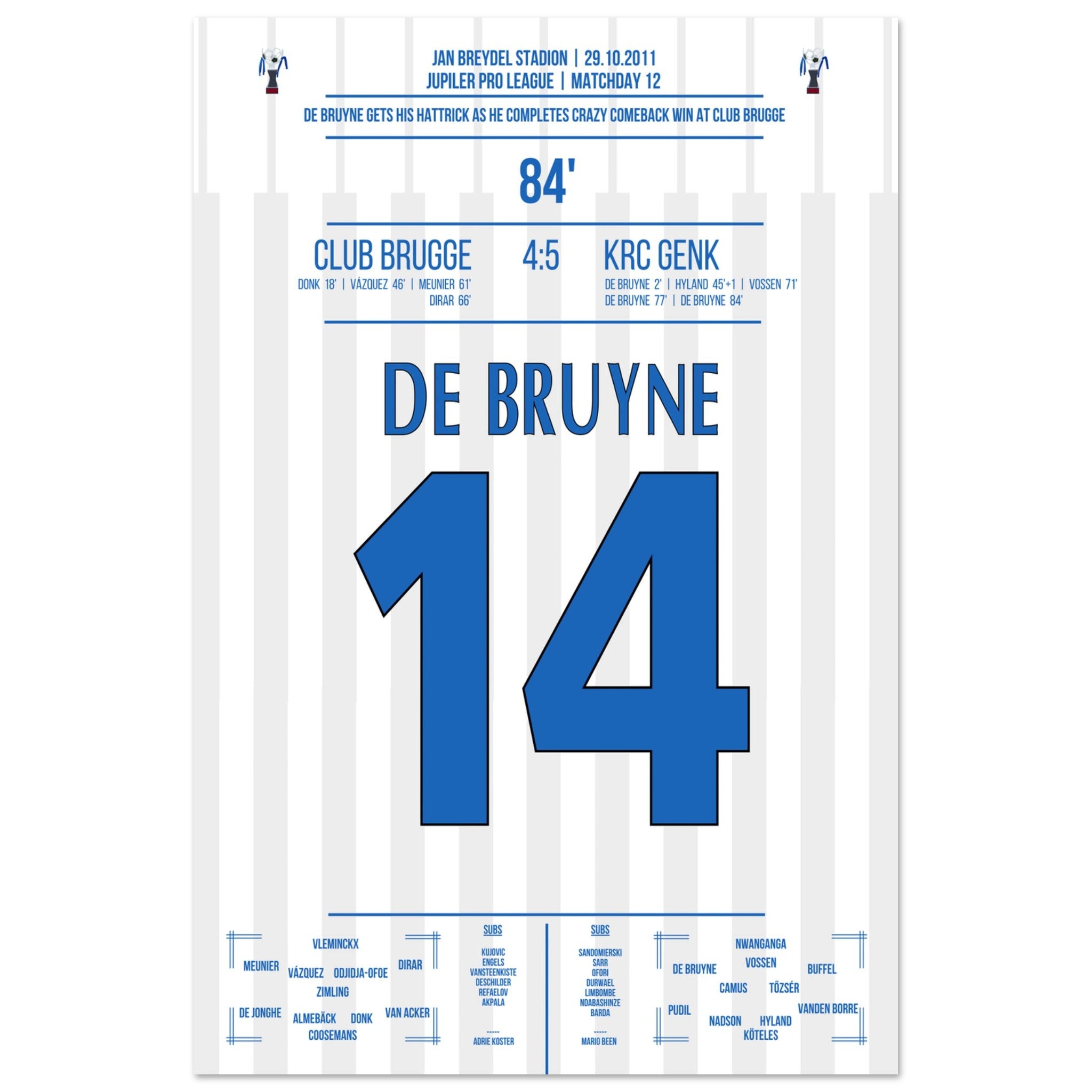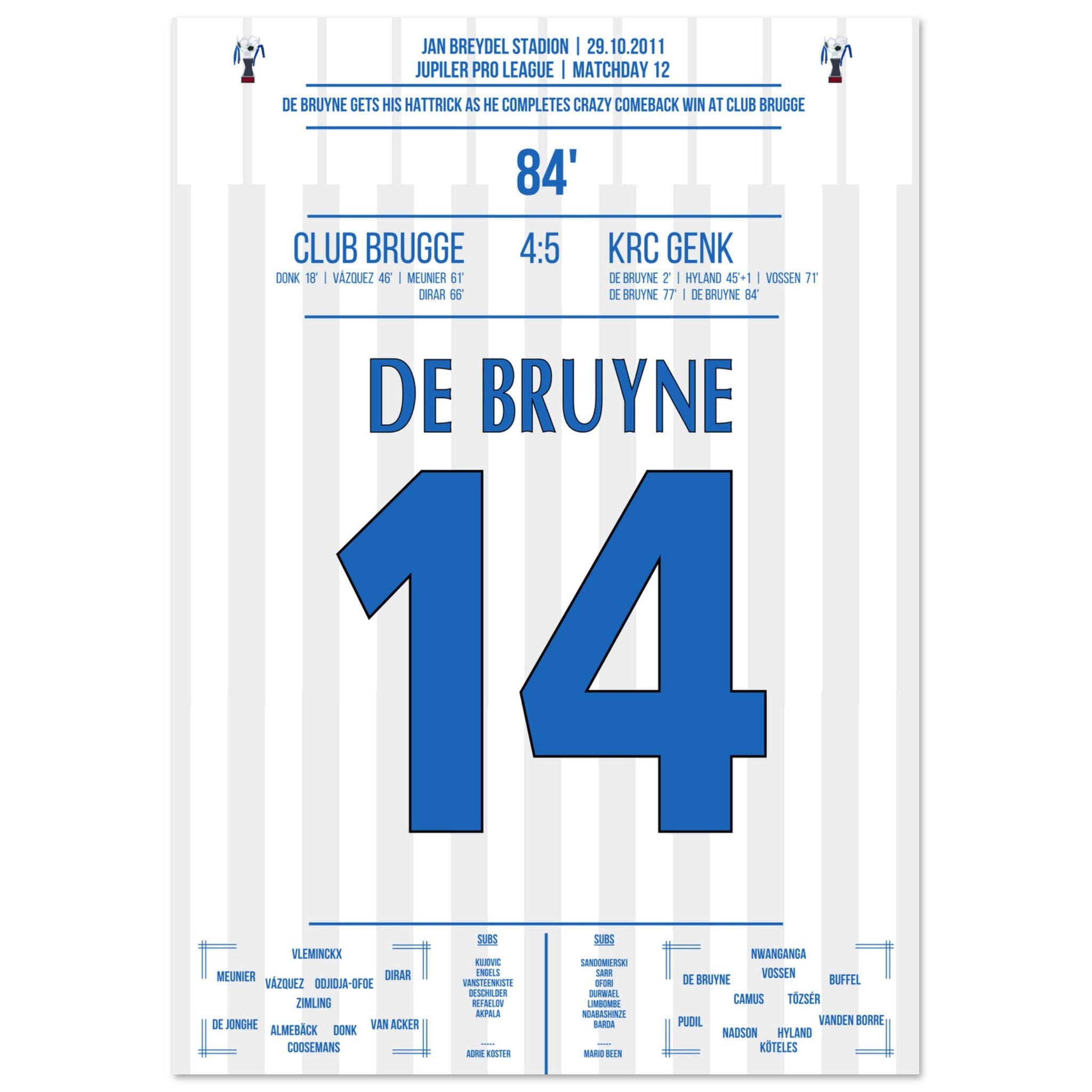De Bruyne hat a hat trick for Genk in a legendary comeback victory in Bruges in 2011.