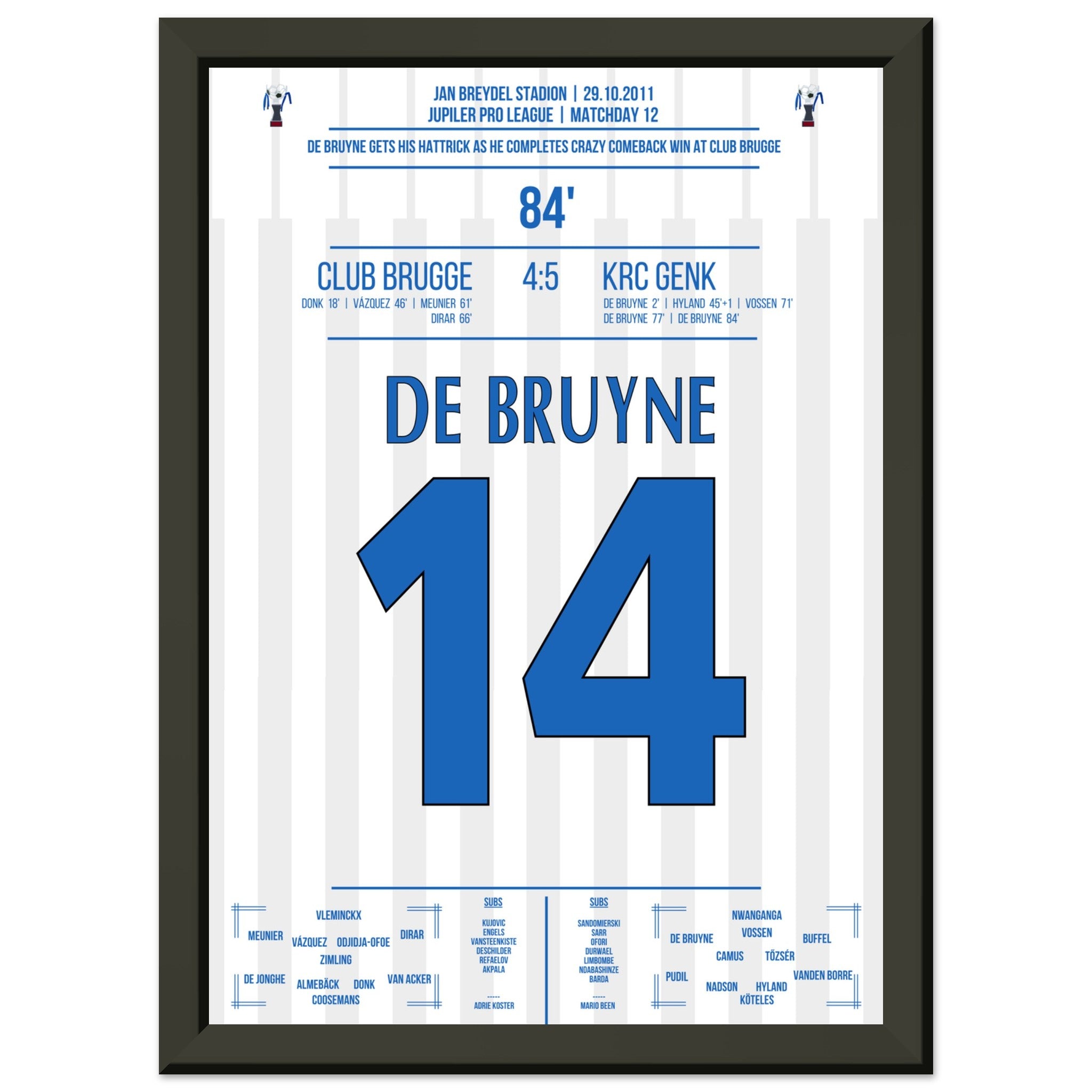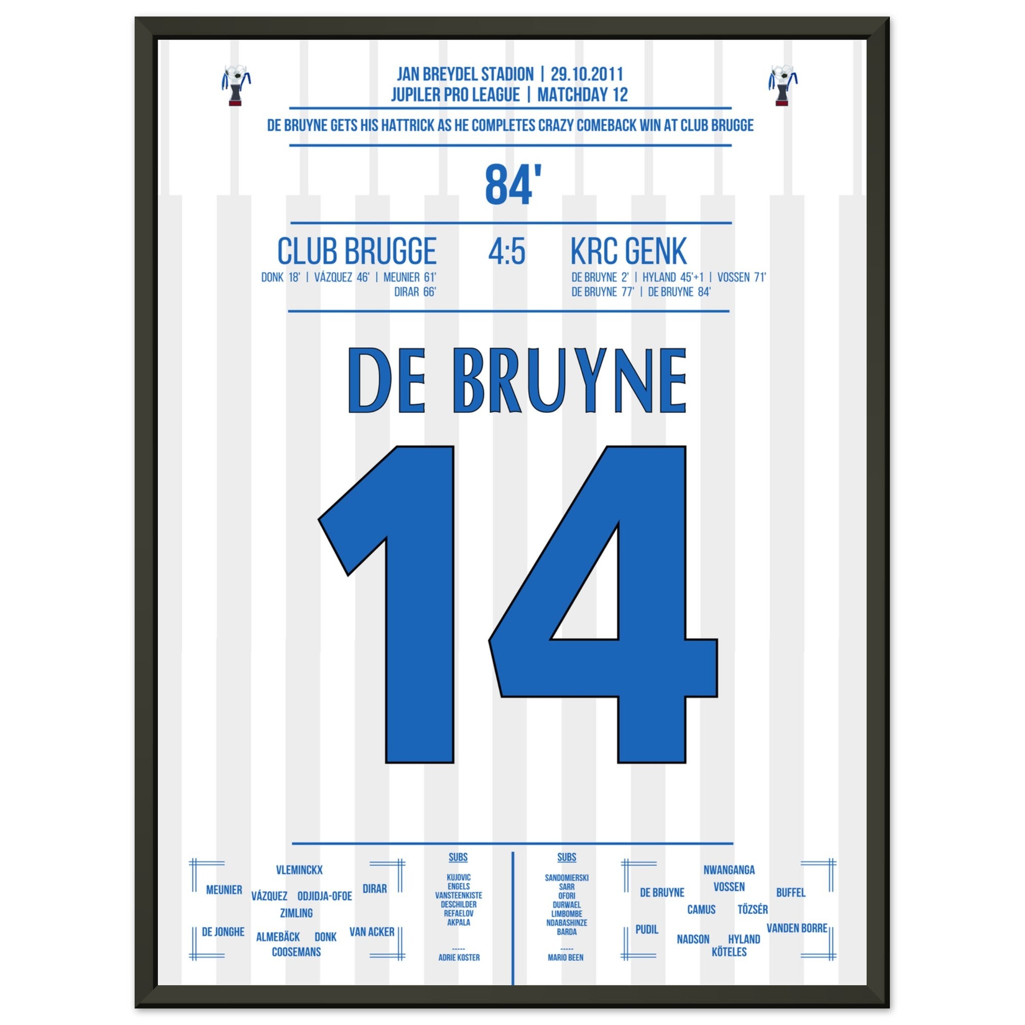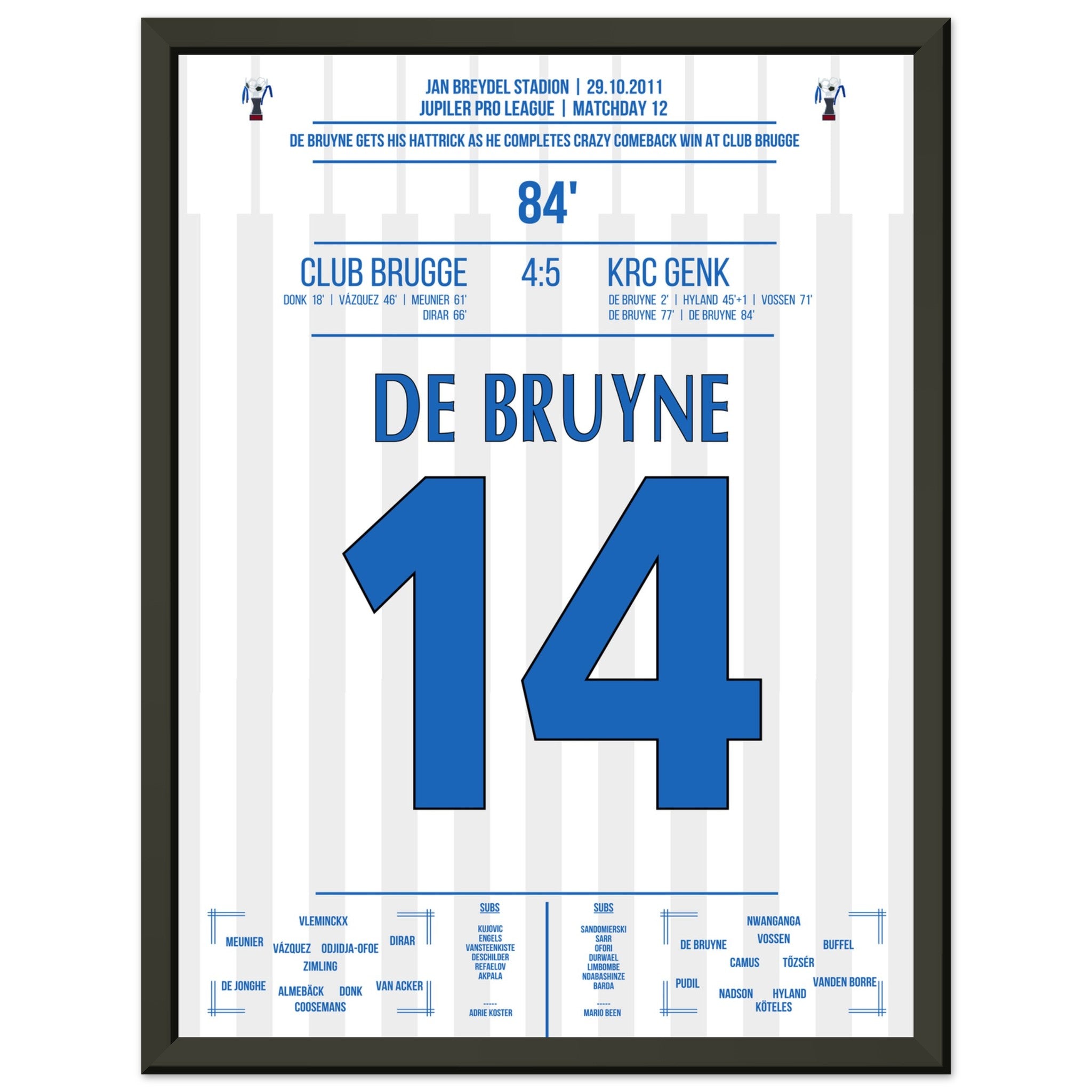 De Bruyne hat a hat trick for Genk in a legendary comeback victory in Bruges in 2011.