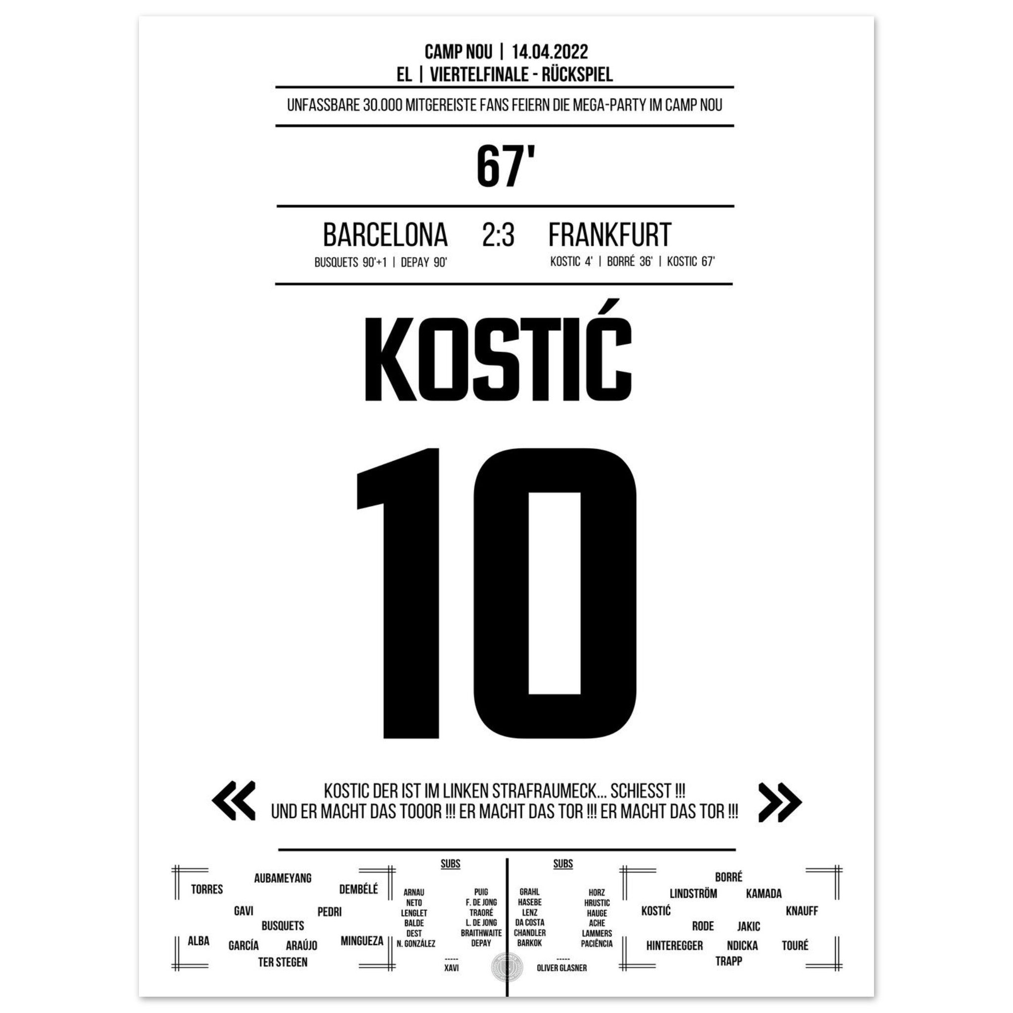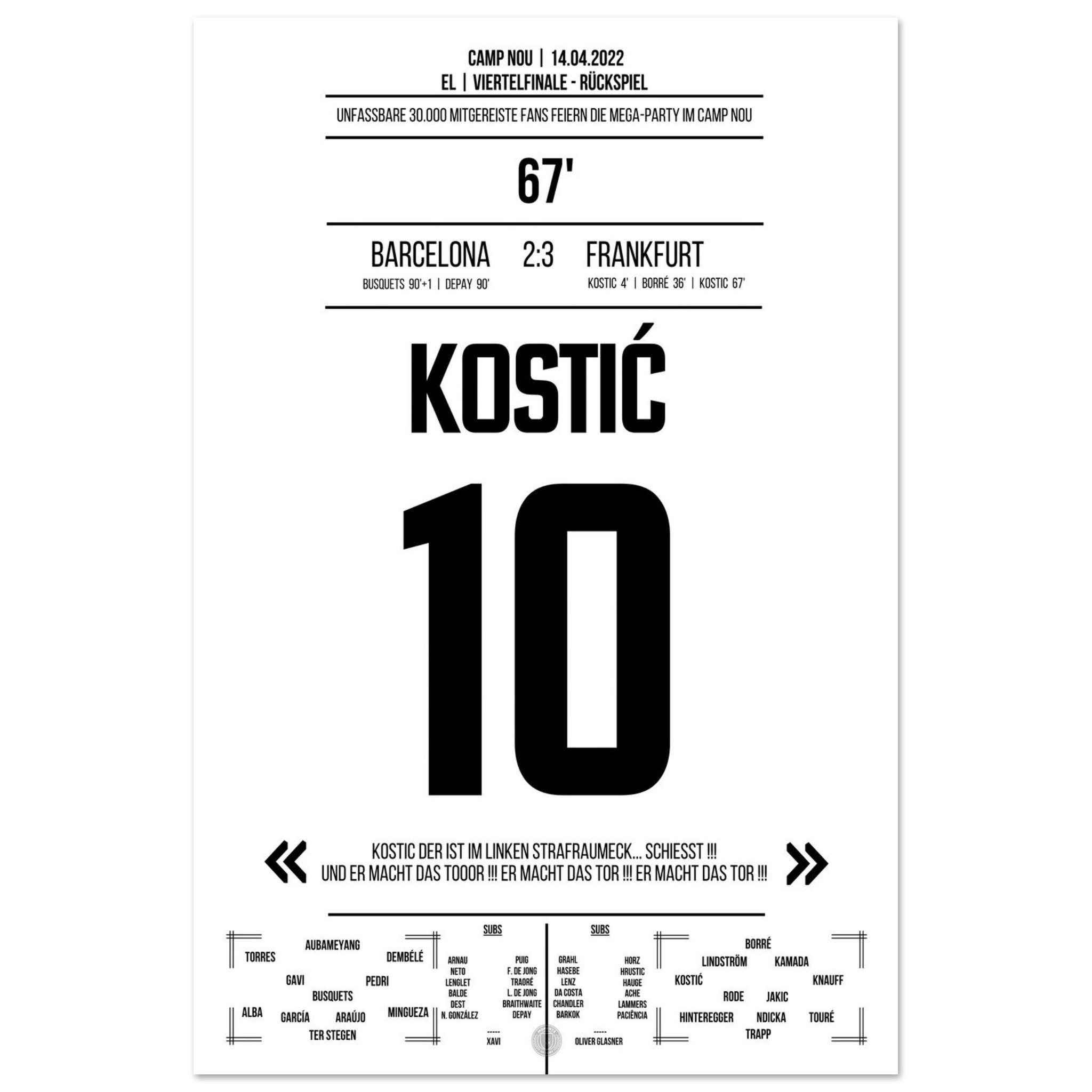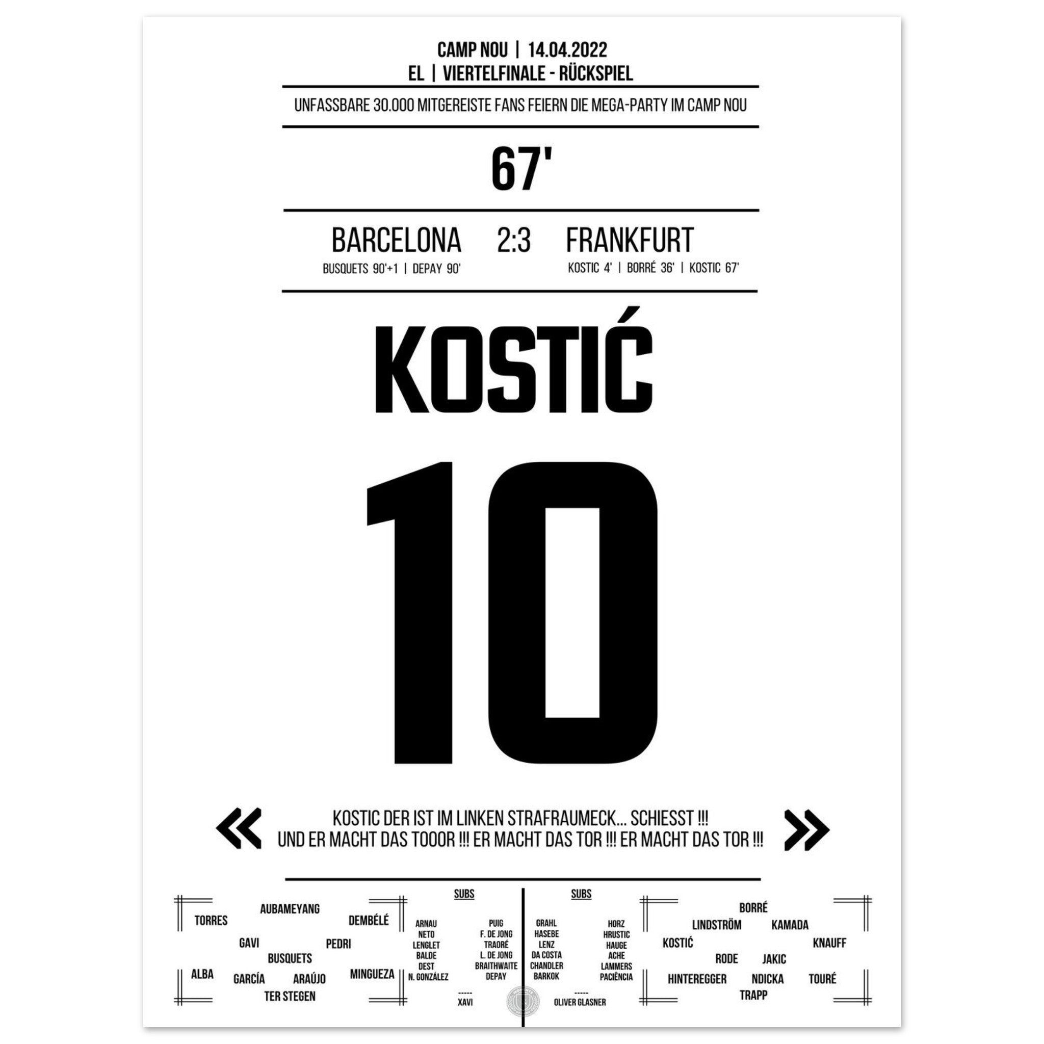 Kostic's gala performance at Frankfurt's big party in Camp Nou