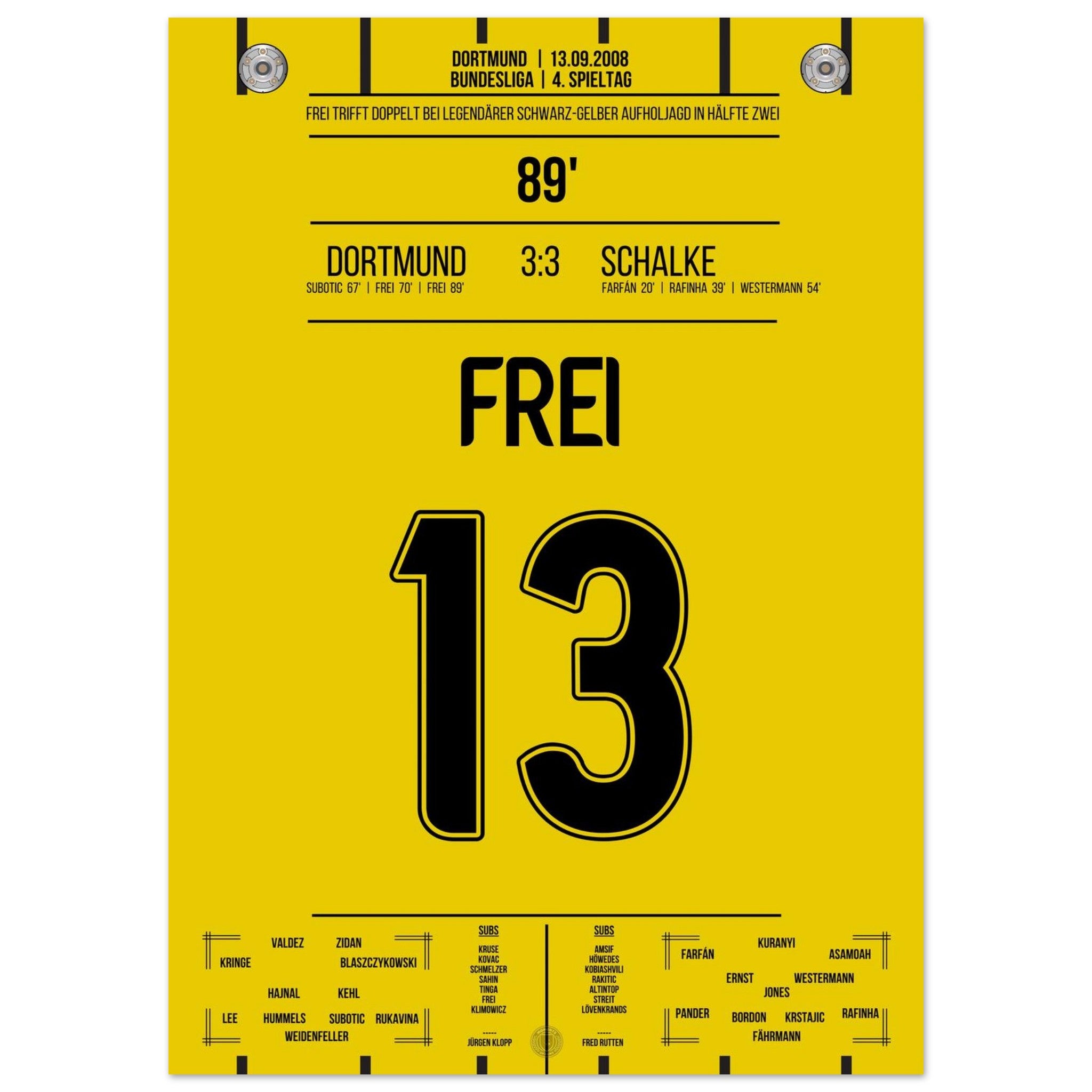 Alex Frei scores twice and secures Dortmund's comeback in the derby.