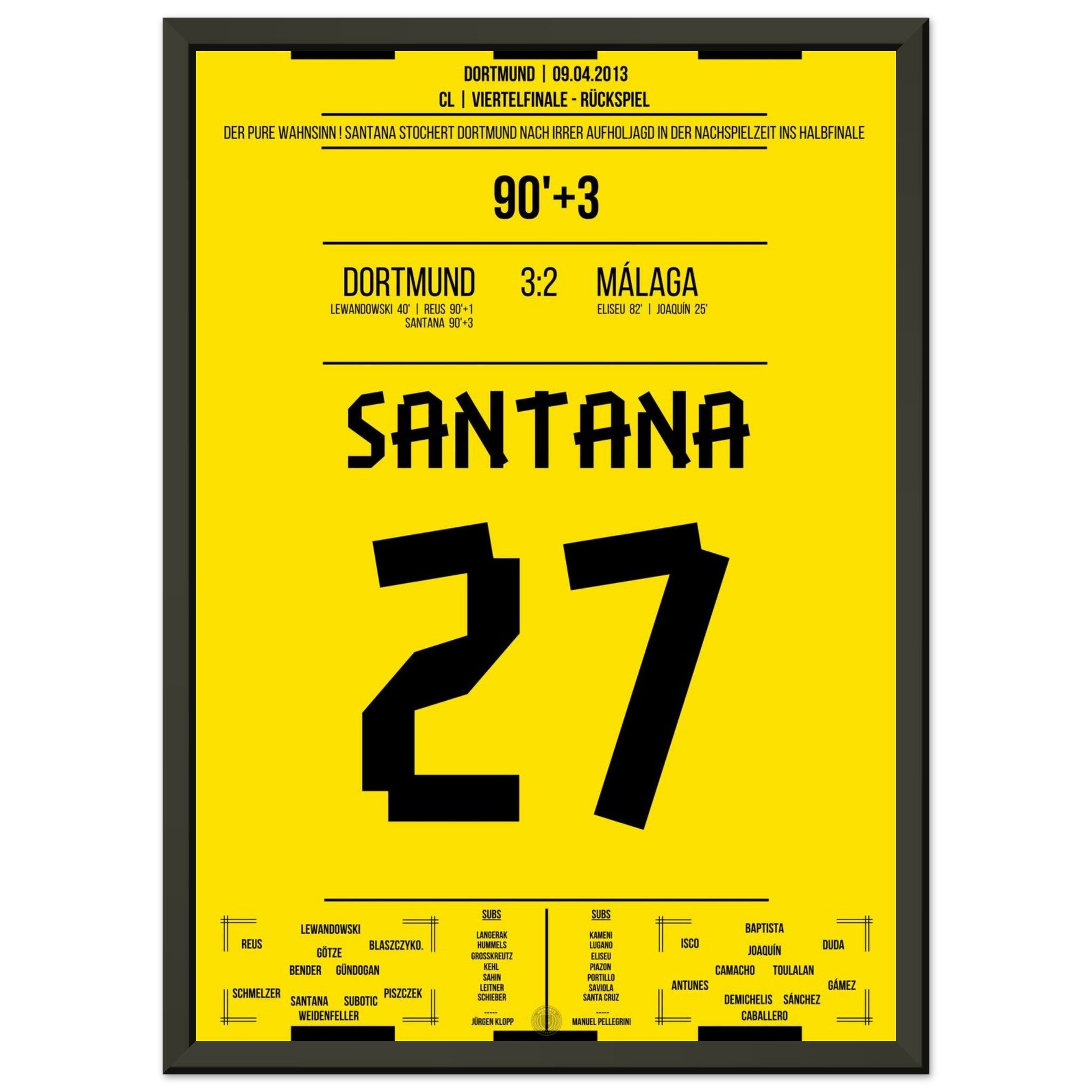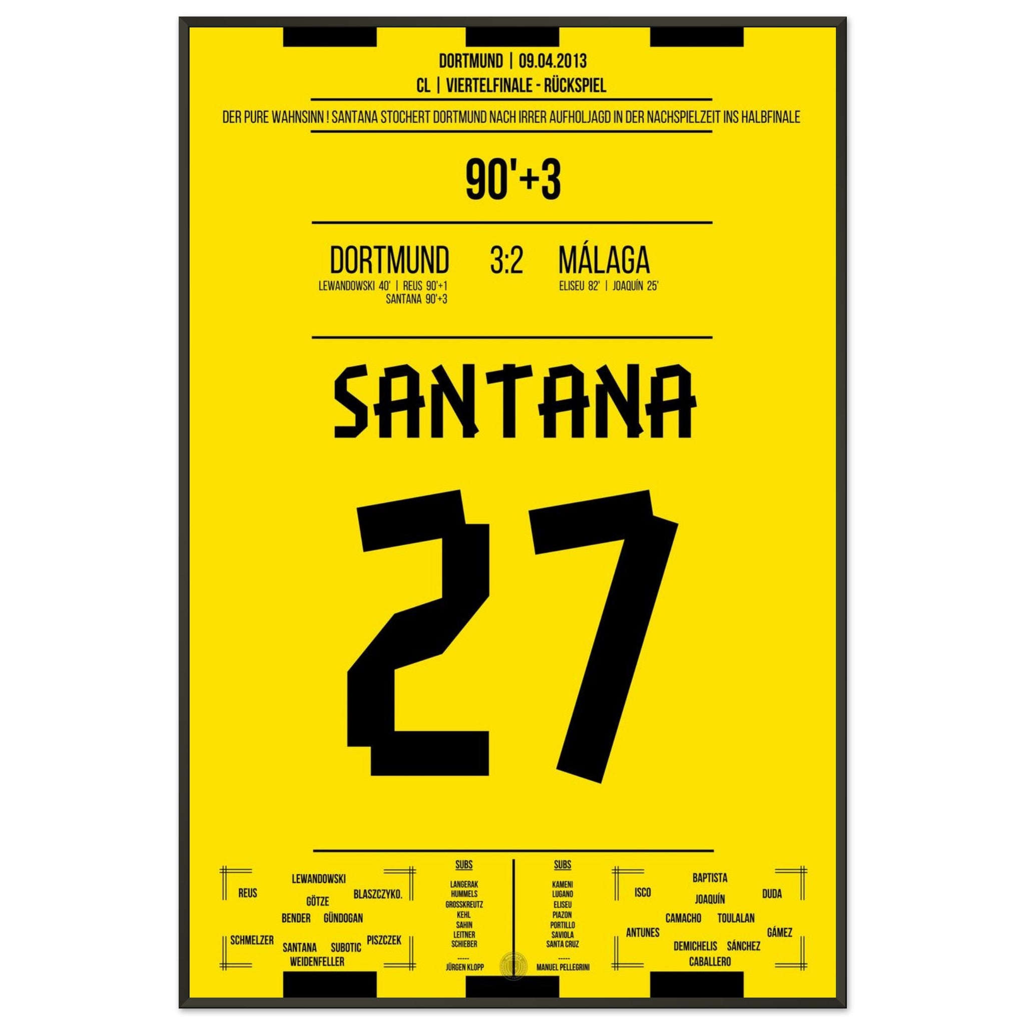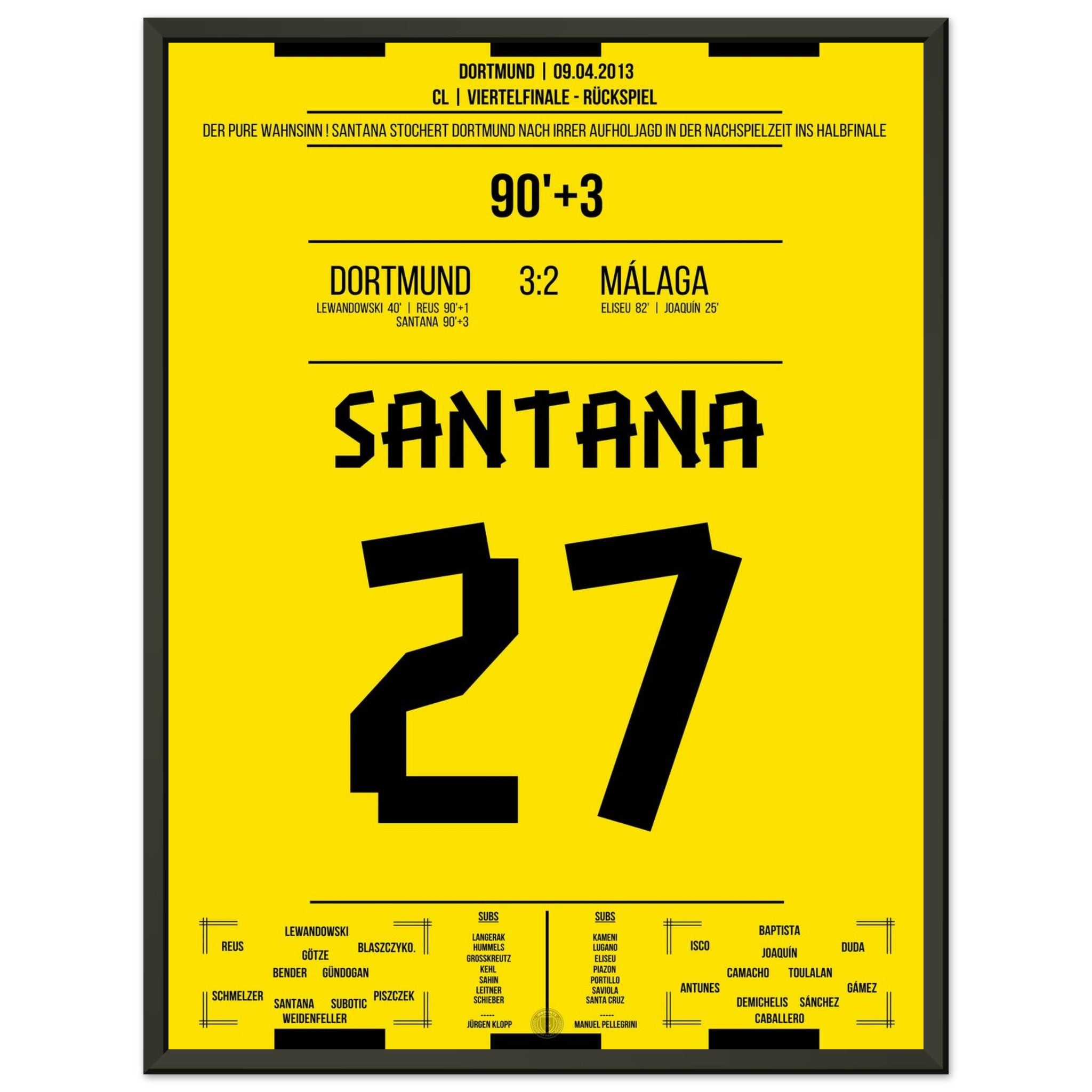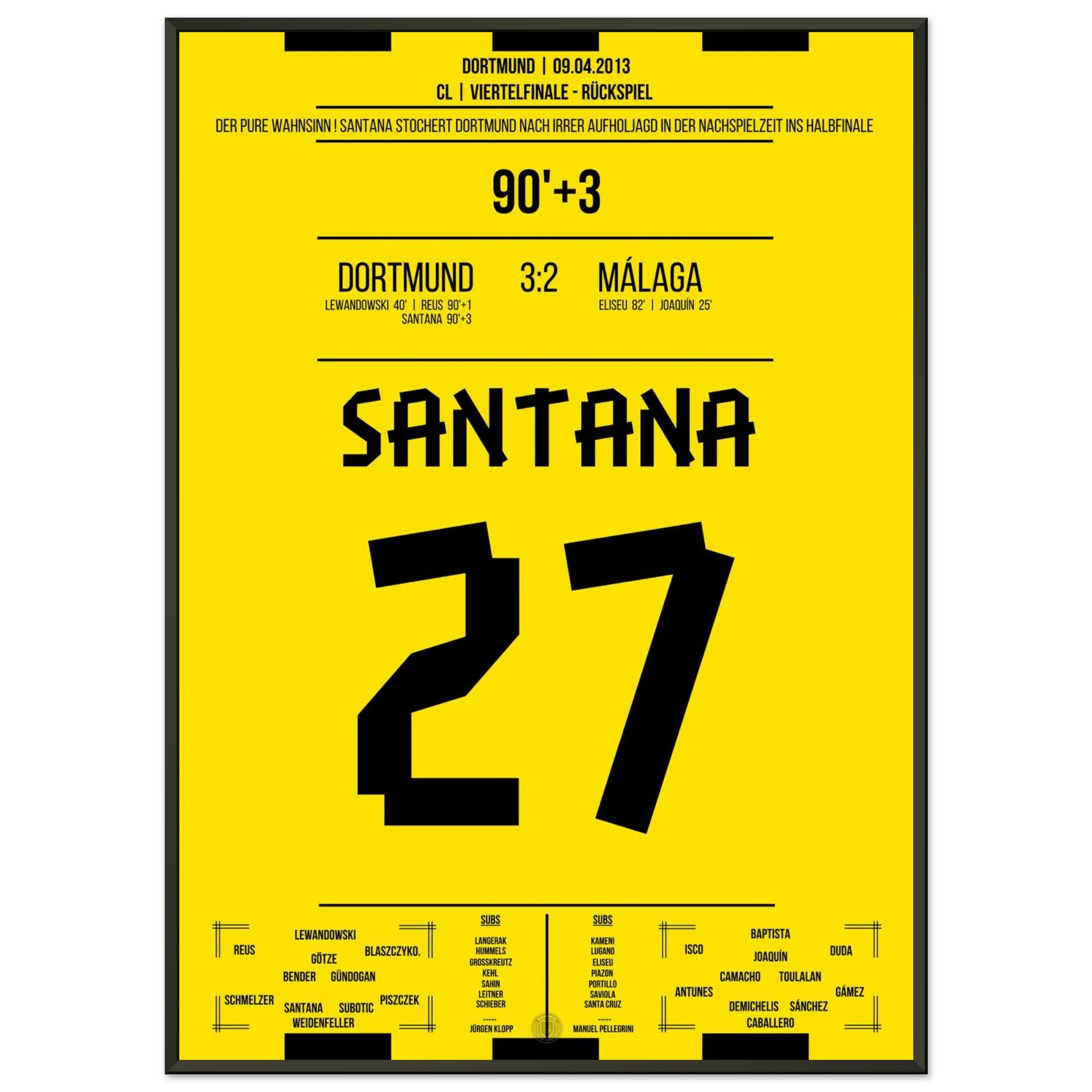 Vendor:Moments Of FameSantana's winning goal in Dortmund's sensational comeback against Malaga
