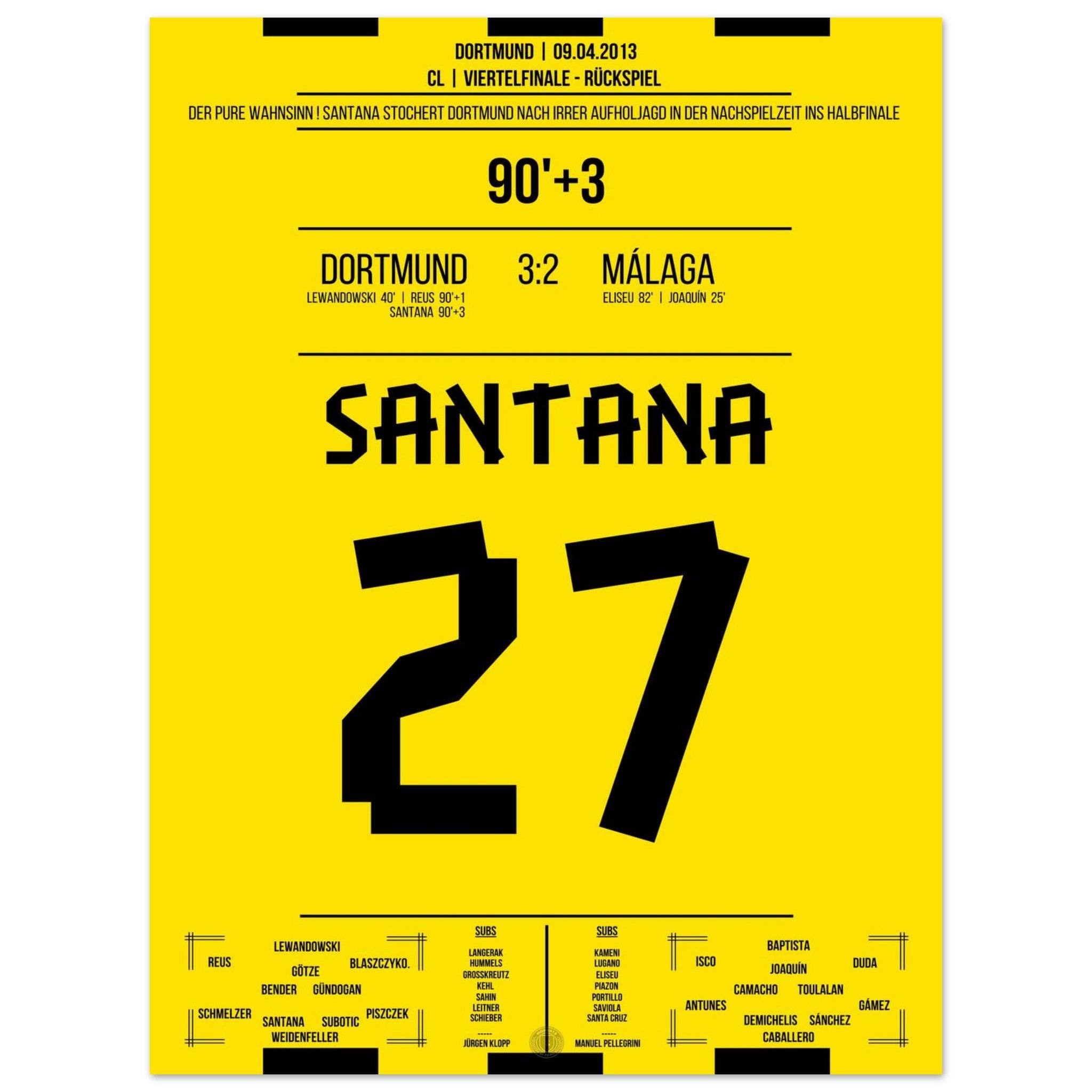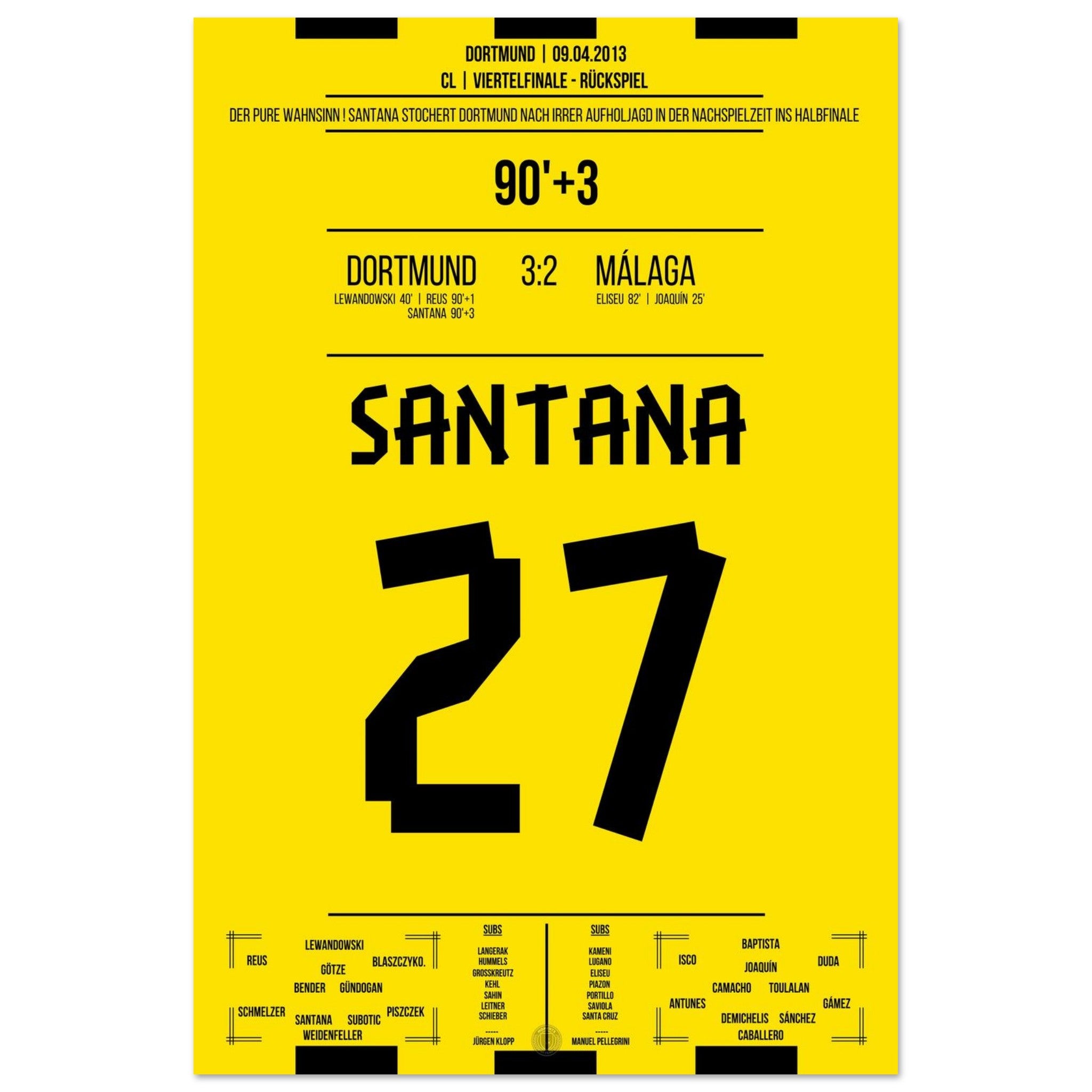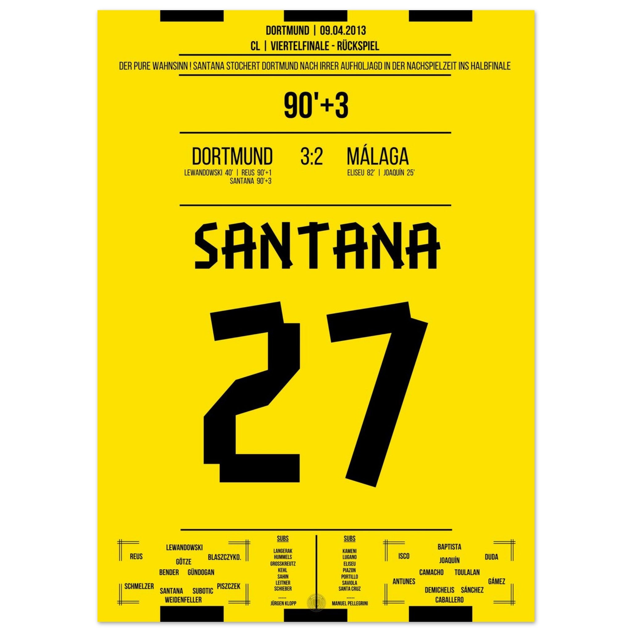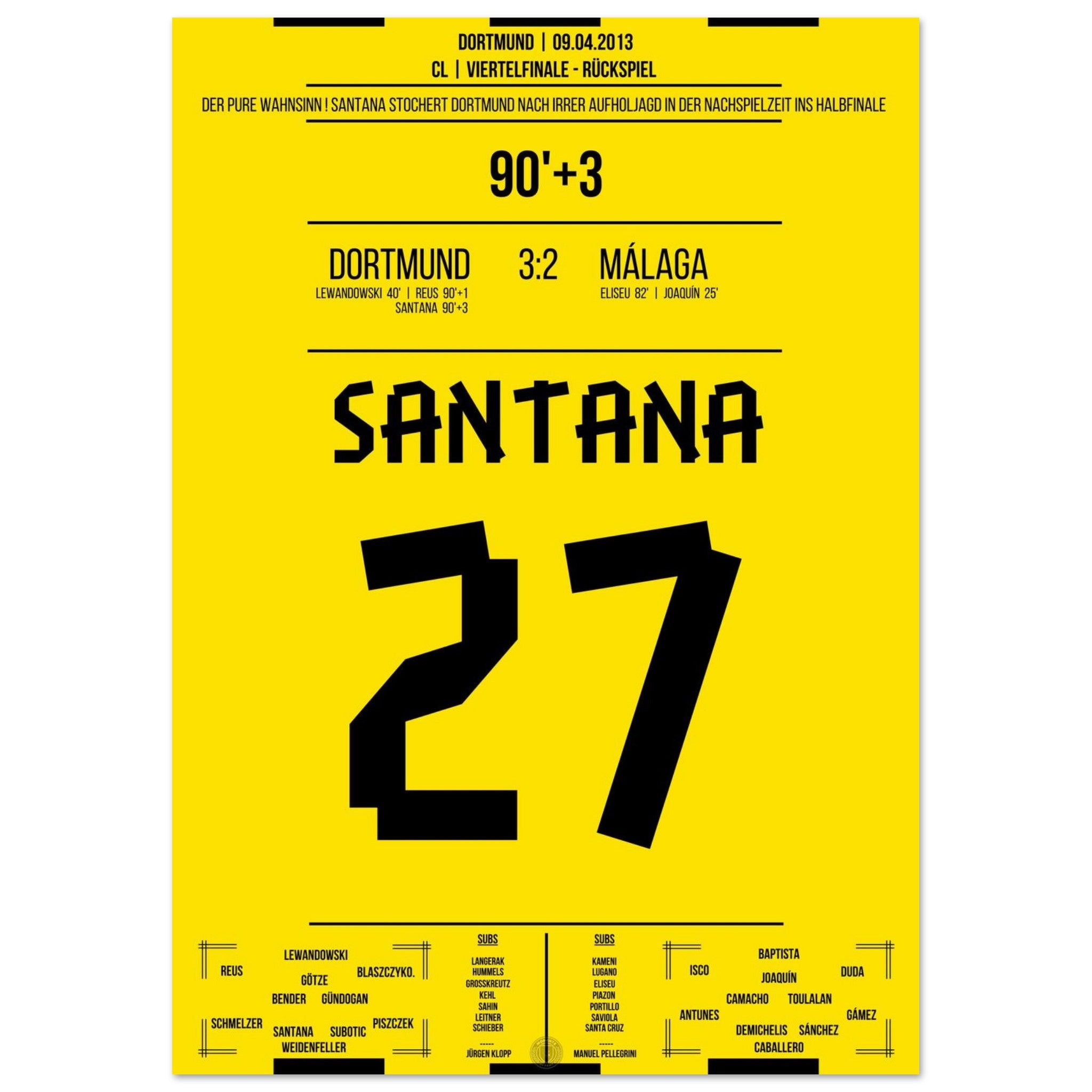 Vendor:Moments Of FameSantana's winning goal in Dortmund's sensational comeback against Malaga