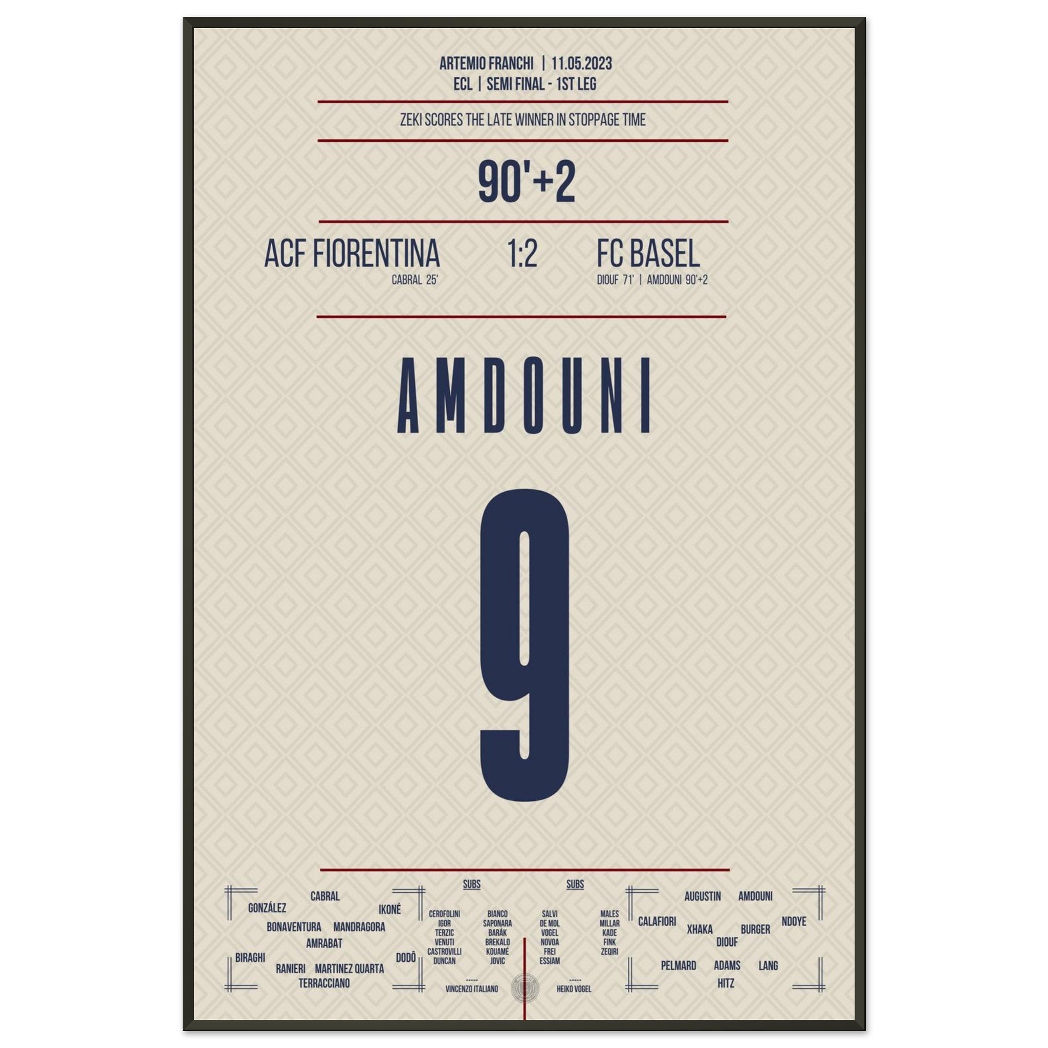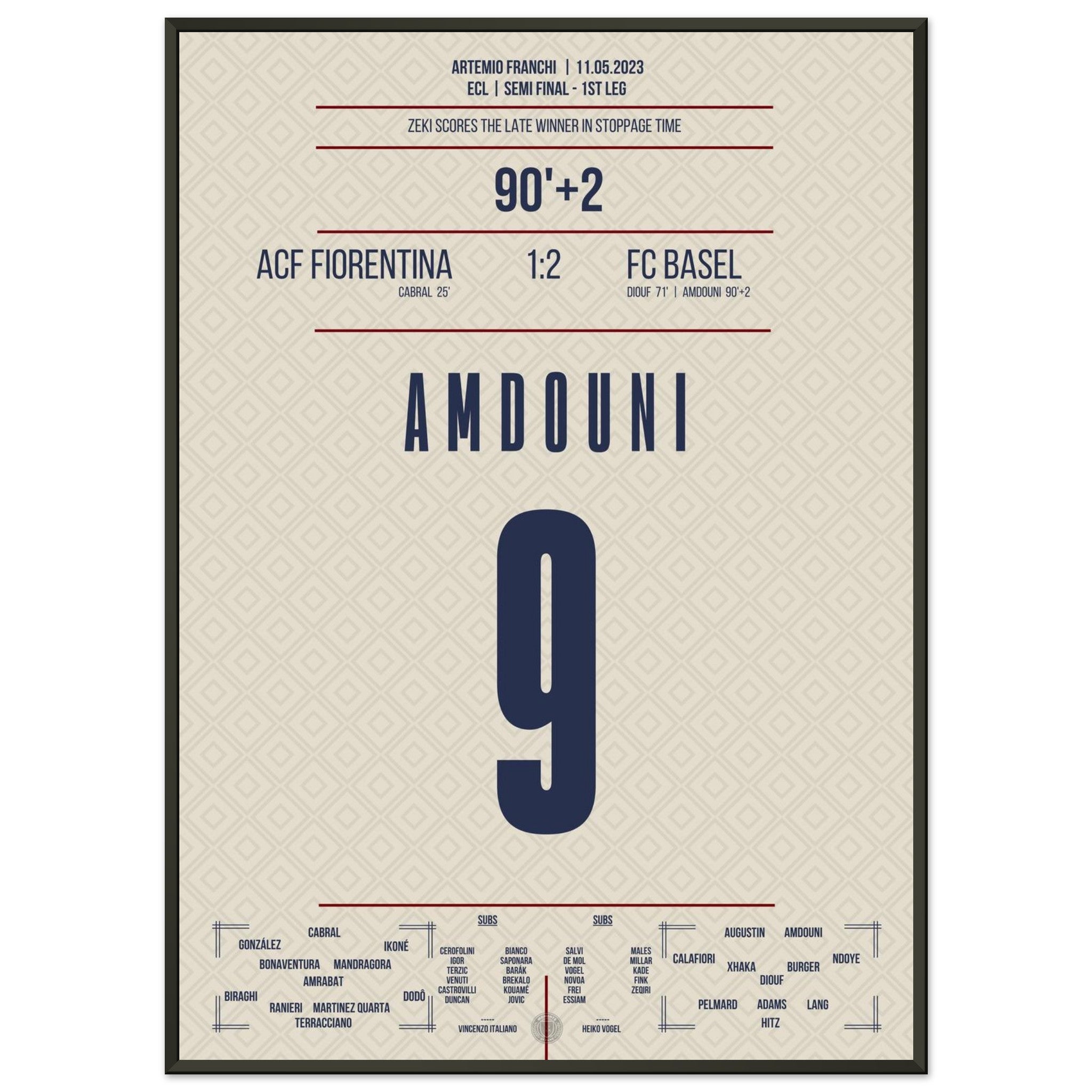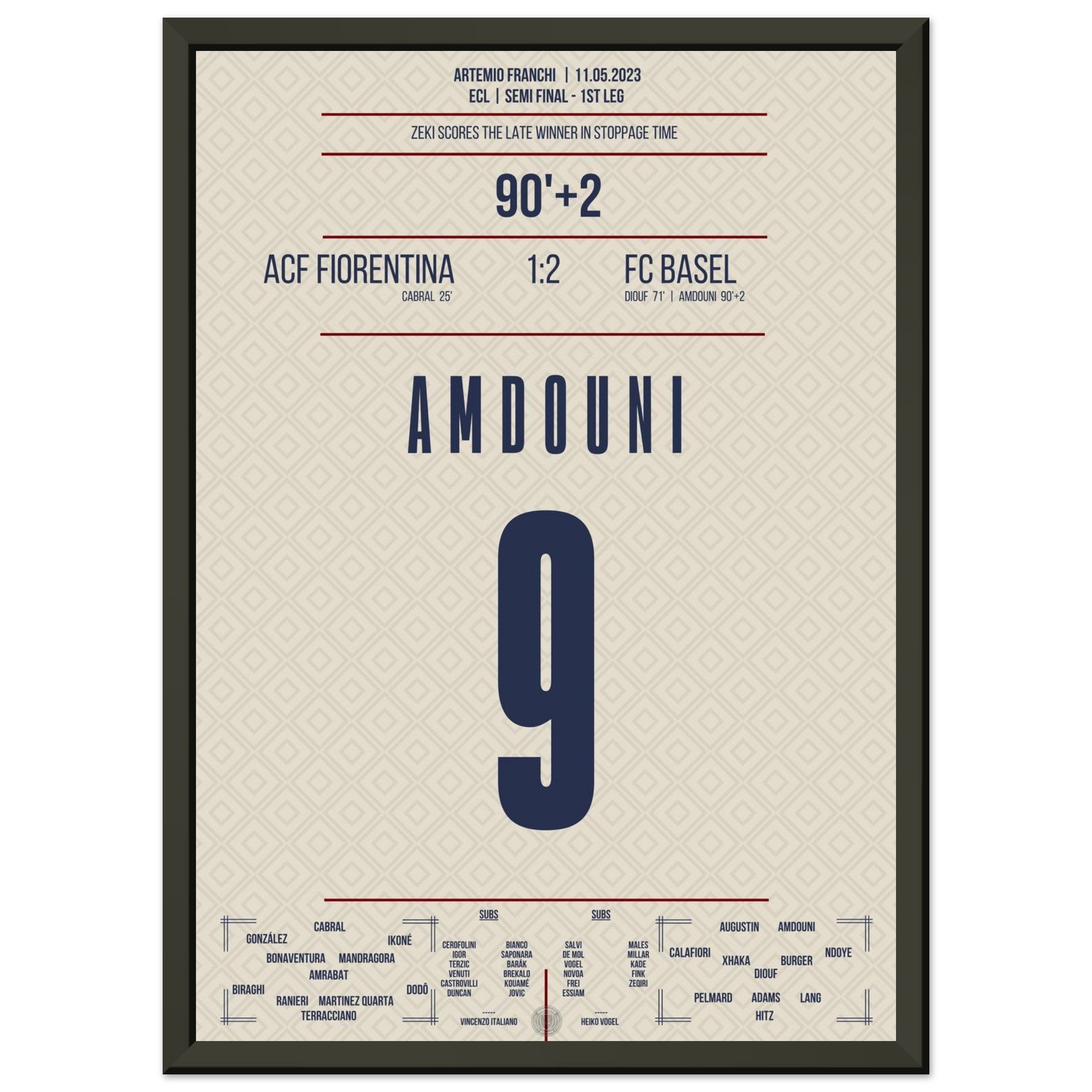 Vendor:MomentsOfFameZeki Amdouni scores in stoppage time to secure victory in the semifinal first leg against Fiorentina.