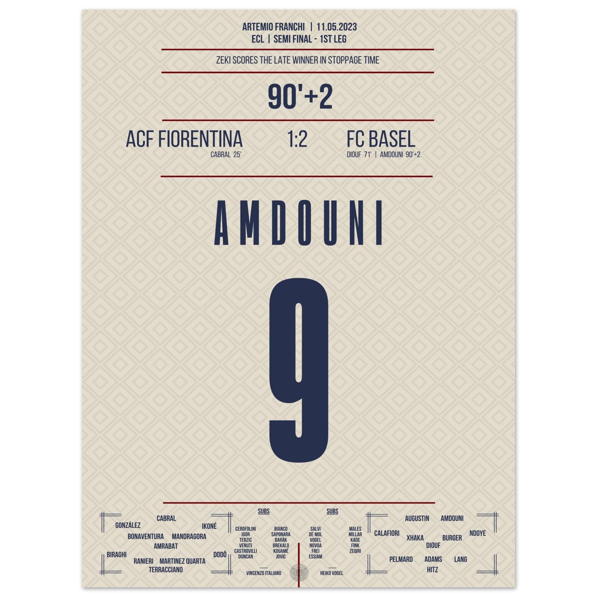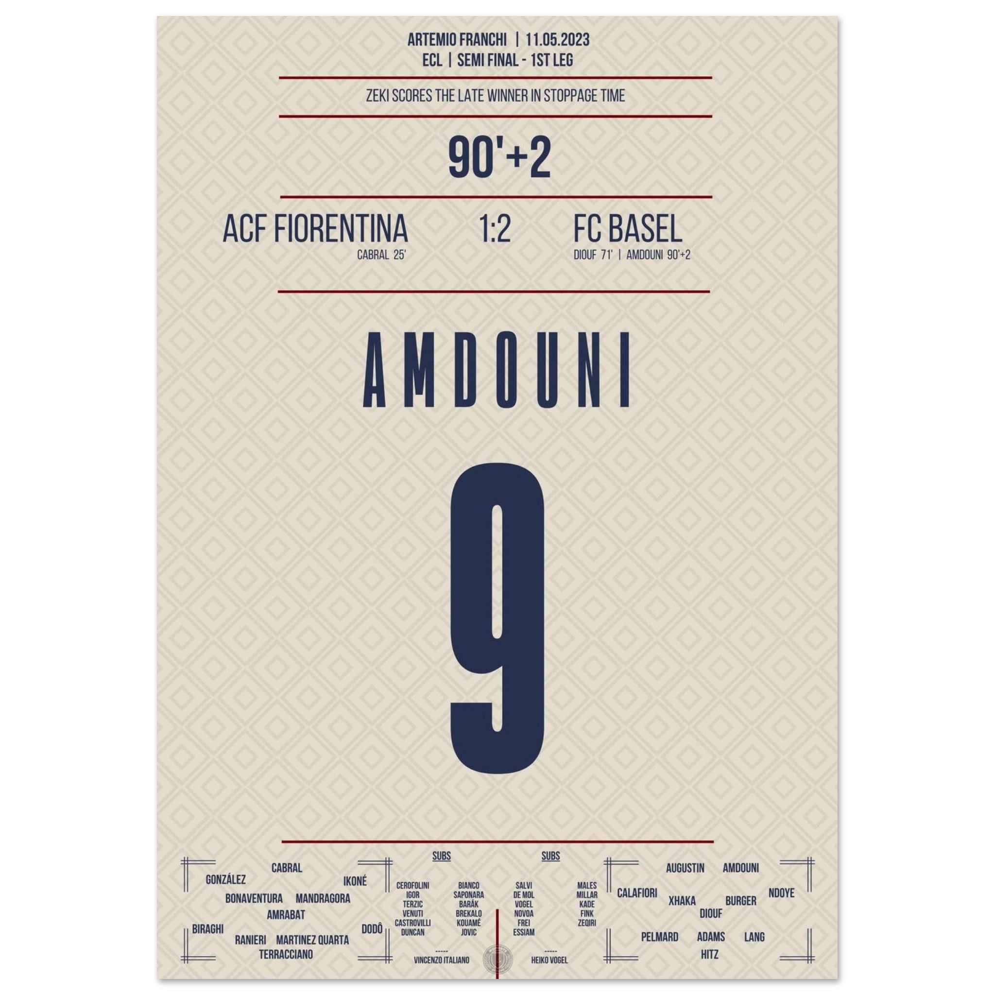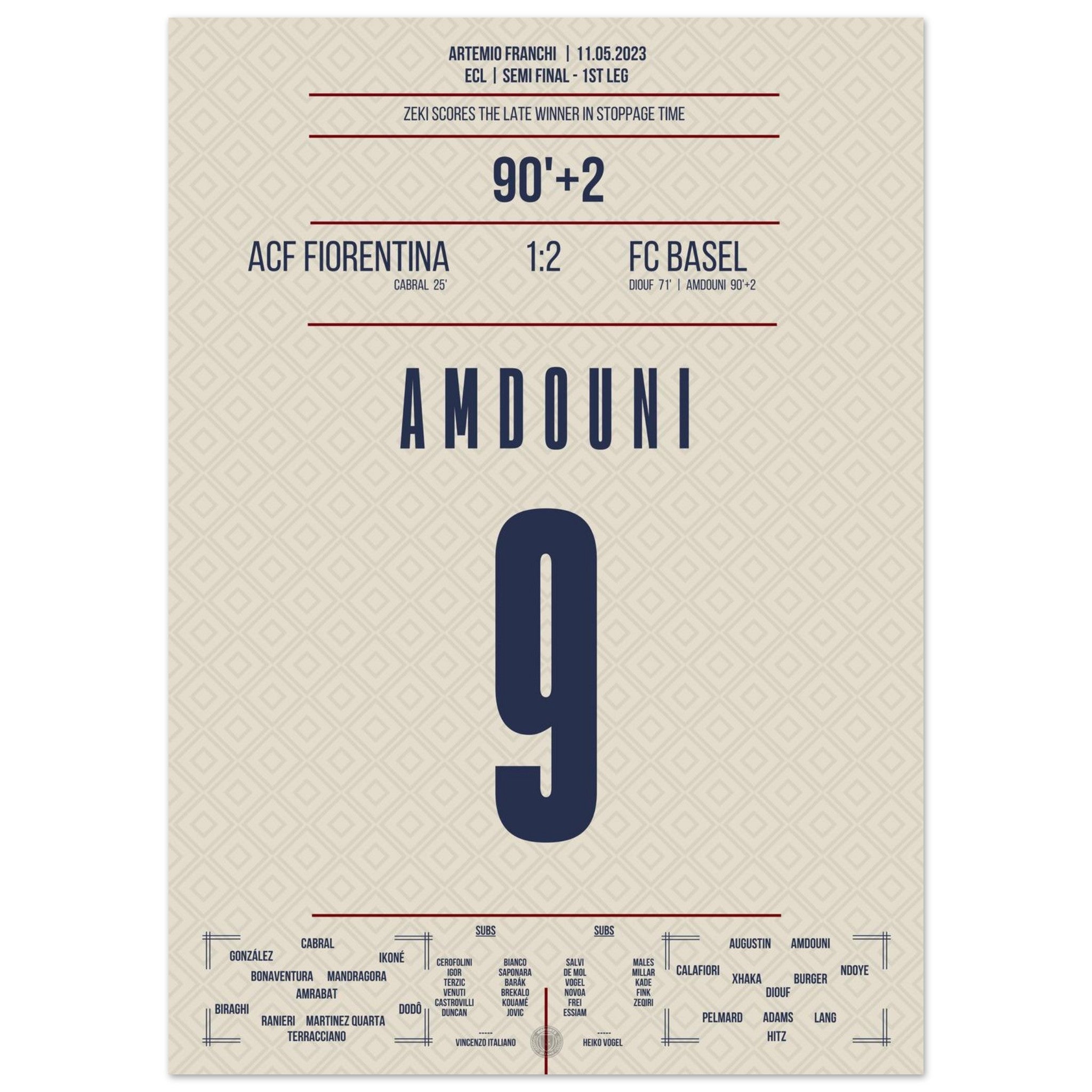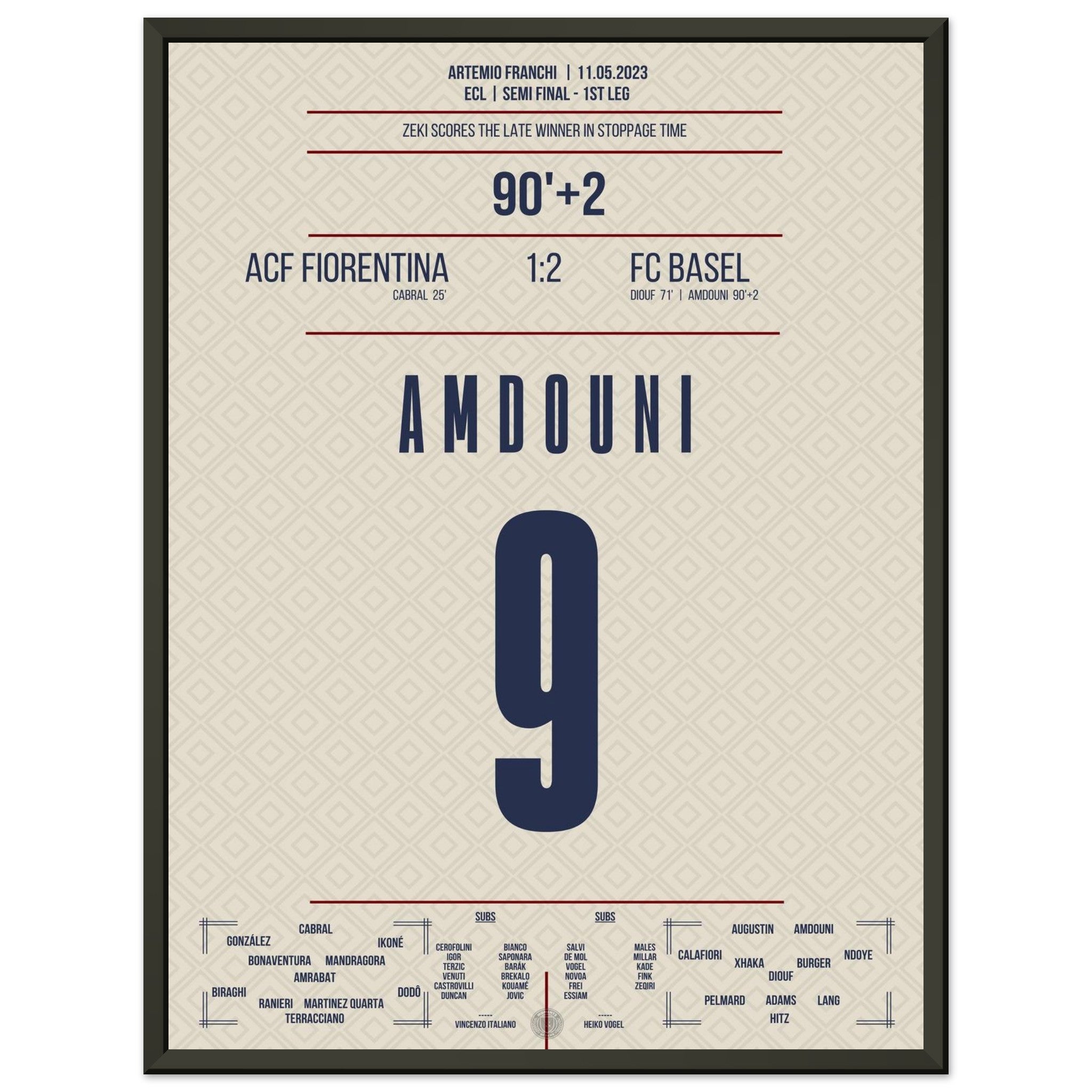 Vendor:MomentsOfFameZeki Amdouni scores in stoppage time to secure victory in the semifinal first leg against Fiorentina.