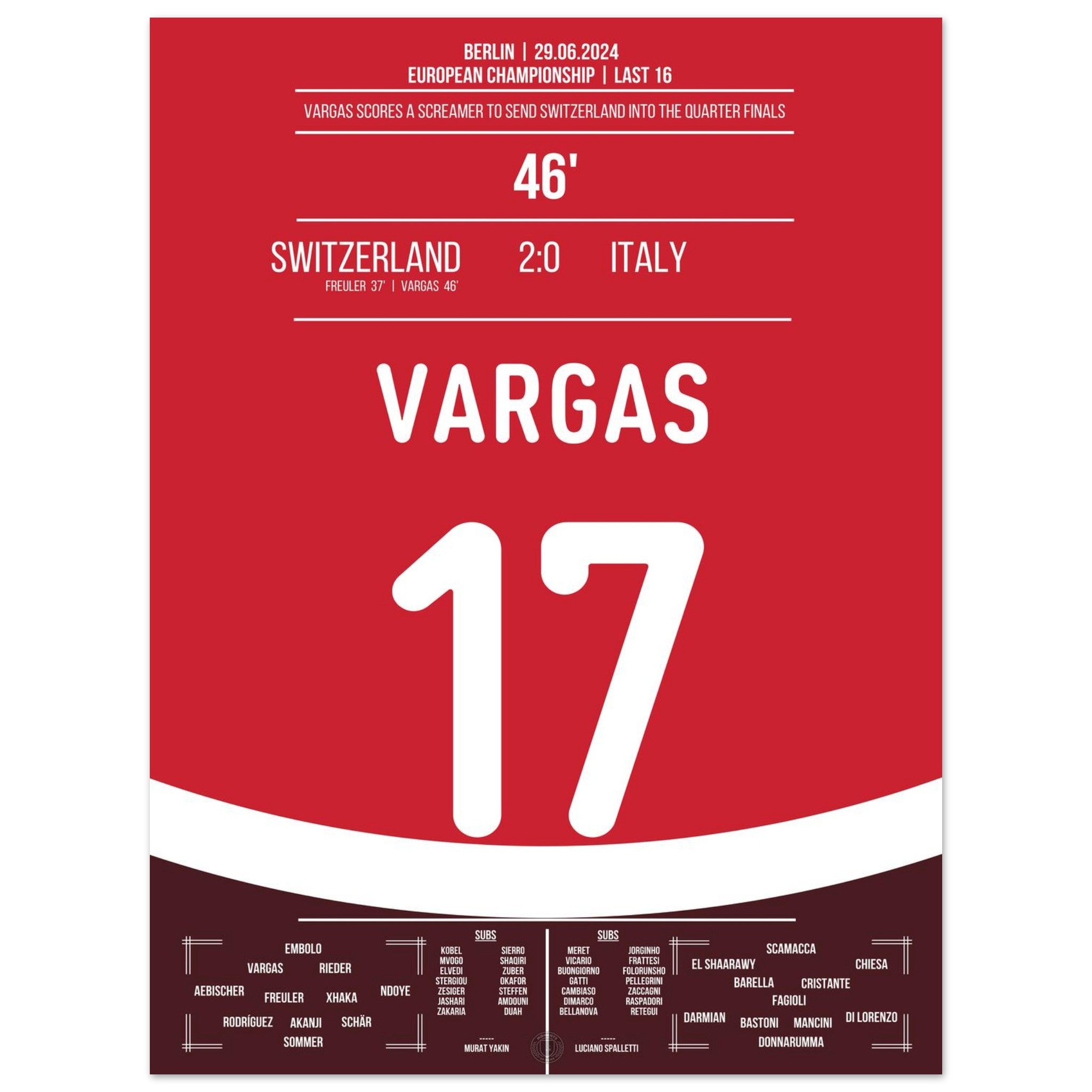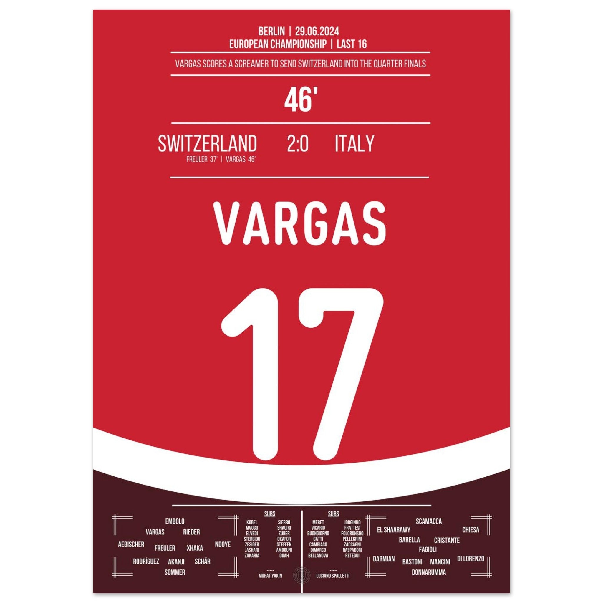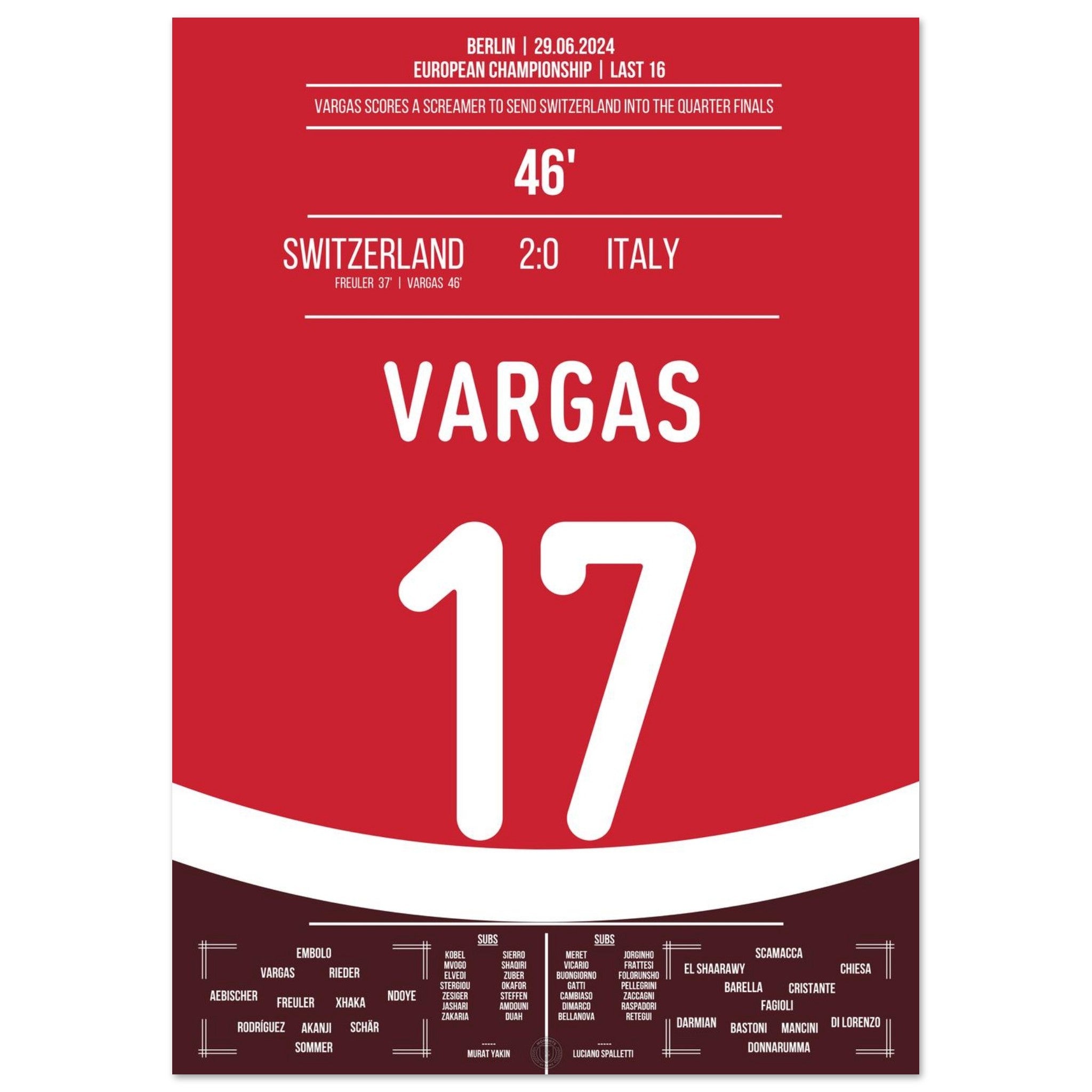 Vargas scores a dream goal to take Switzerland into the quarter-finals.