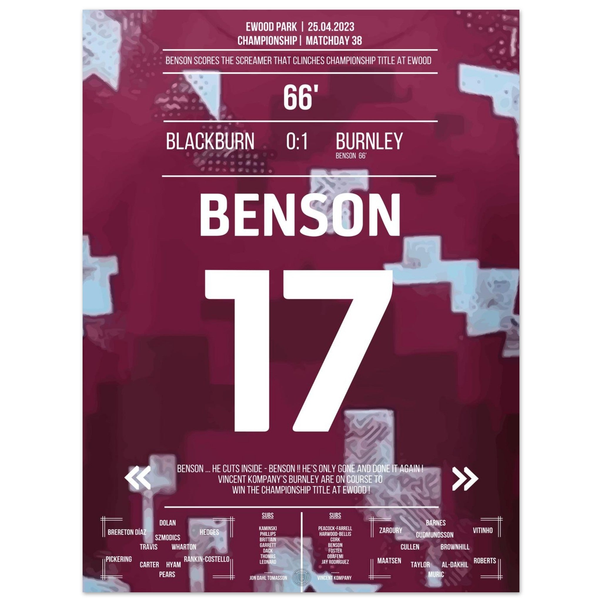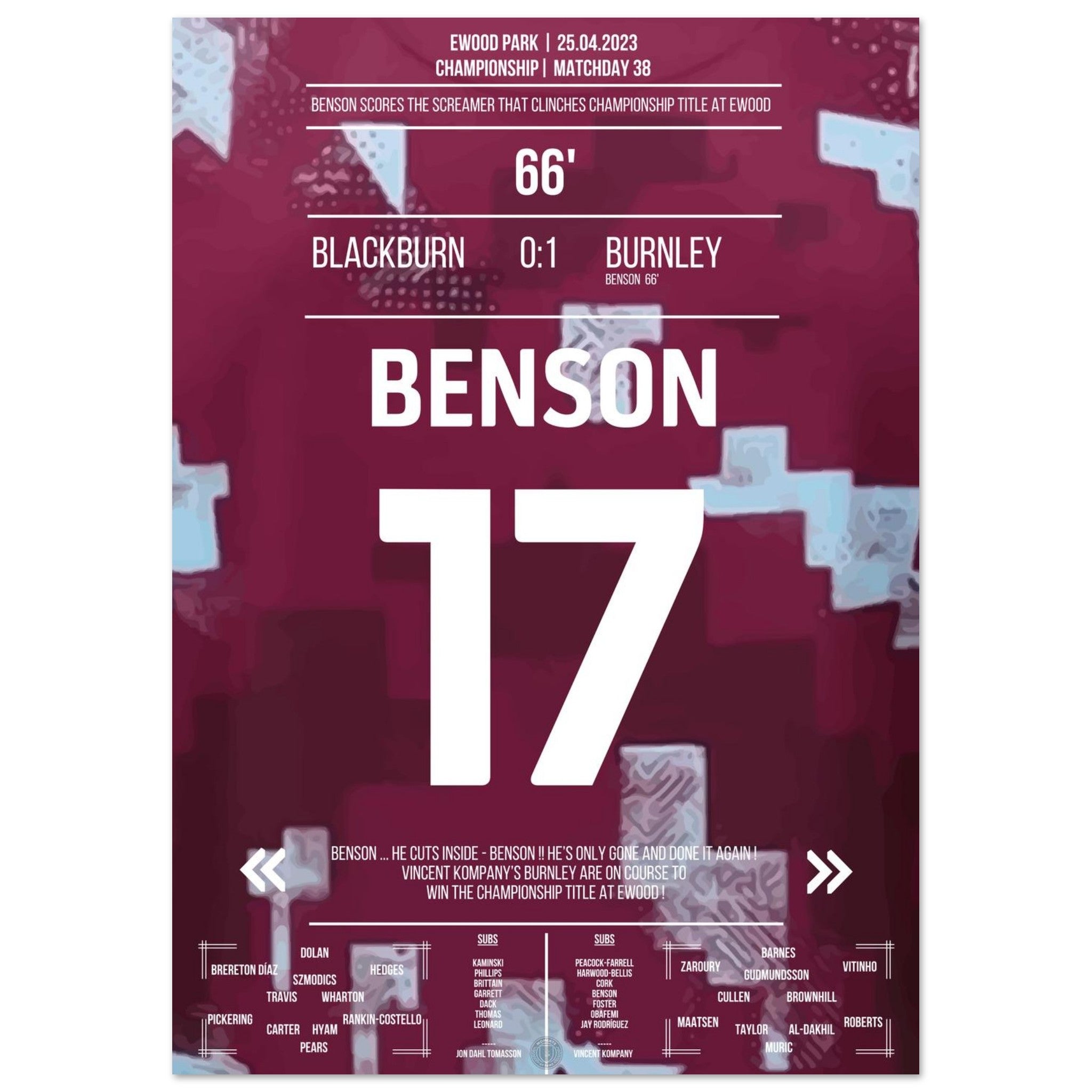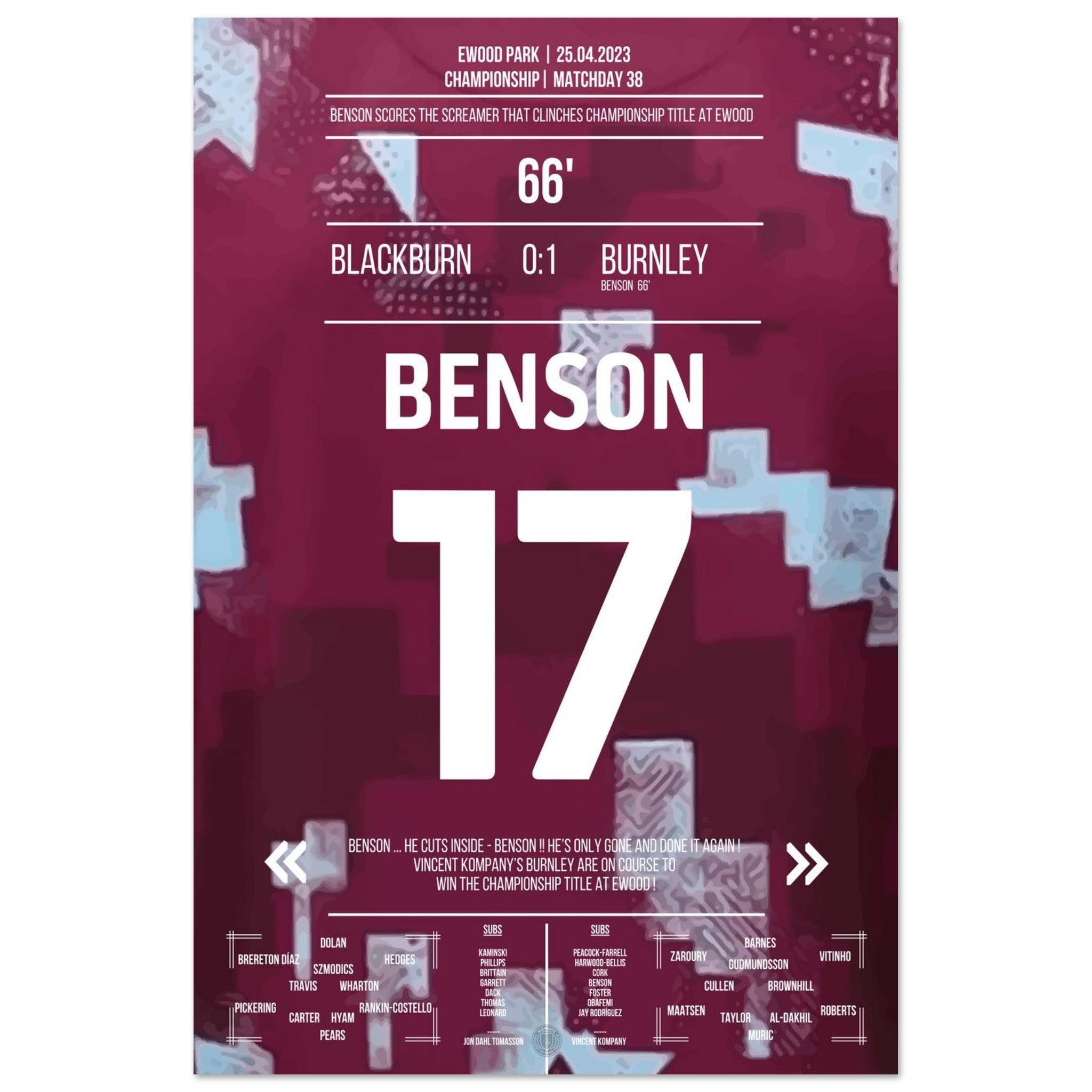 Benson's dream goal for the Championship title for Burnley at Ewood Park