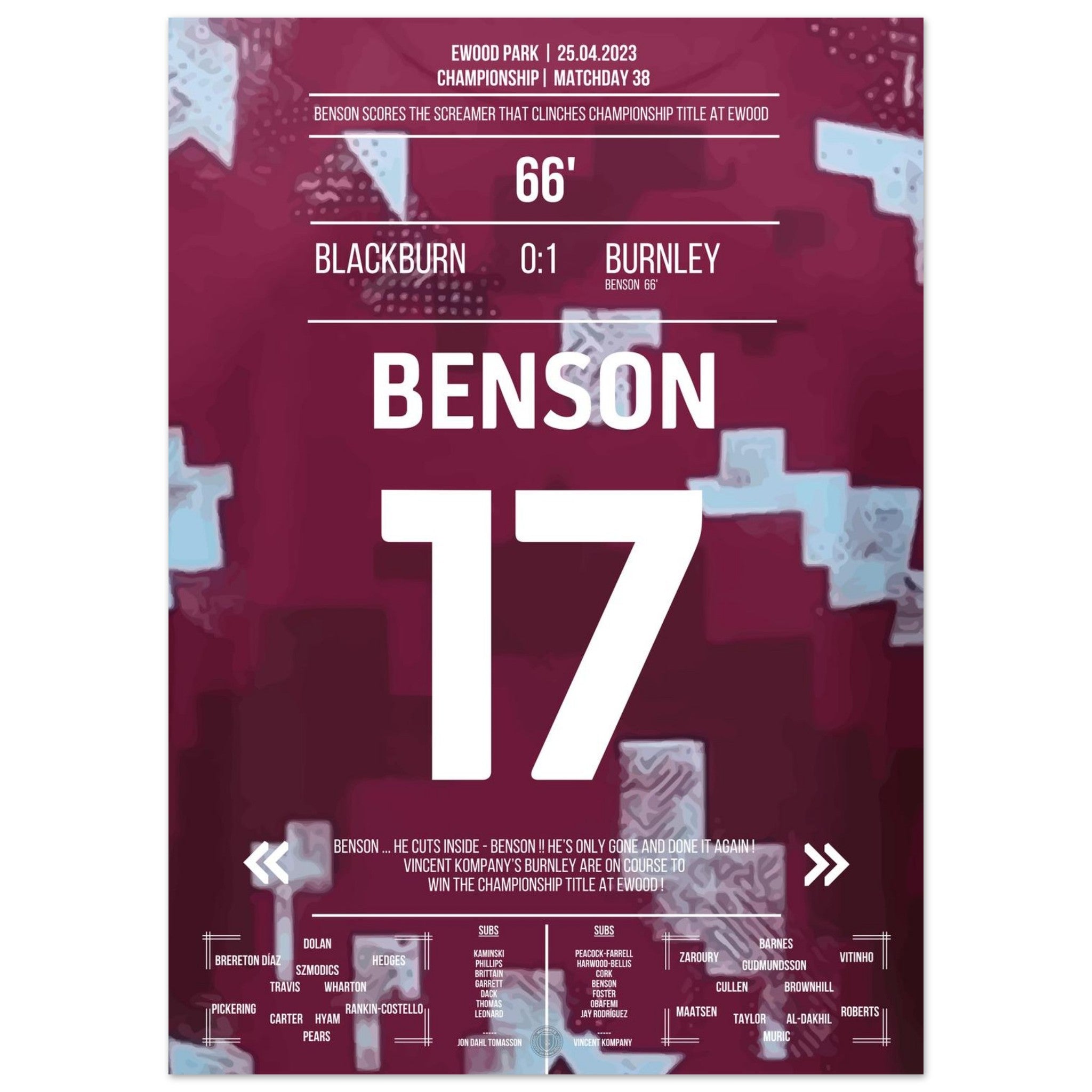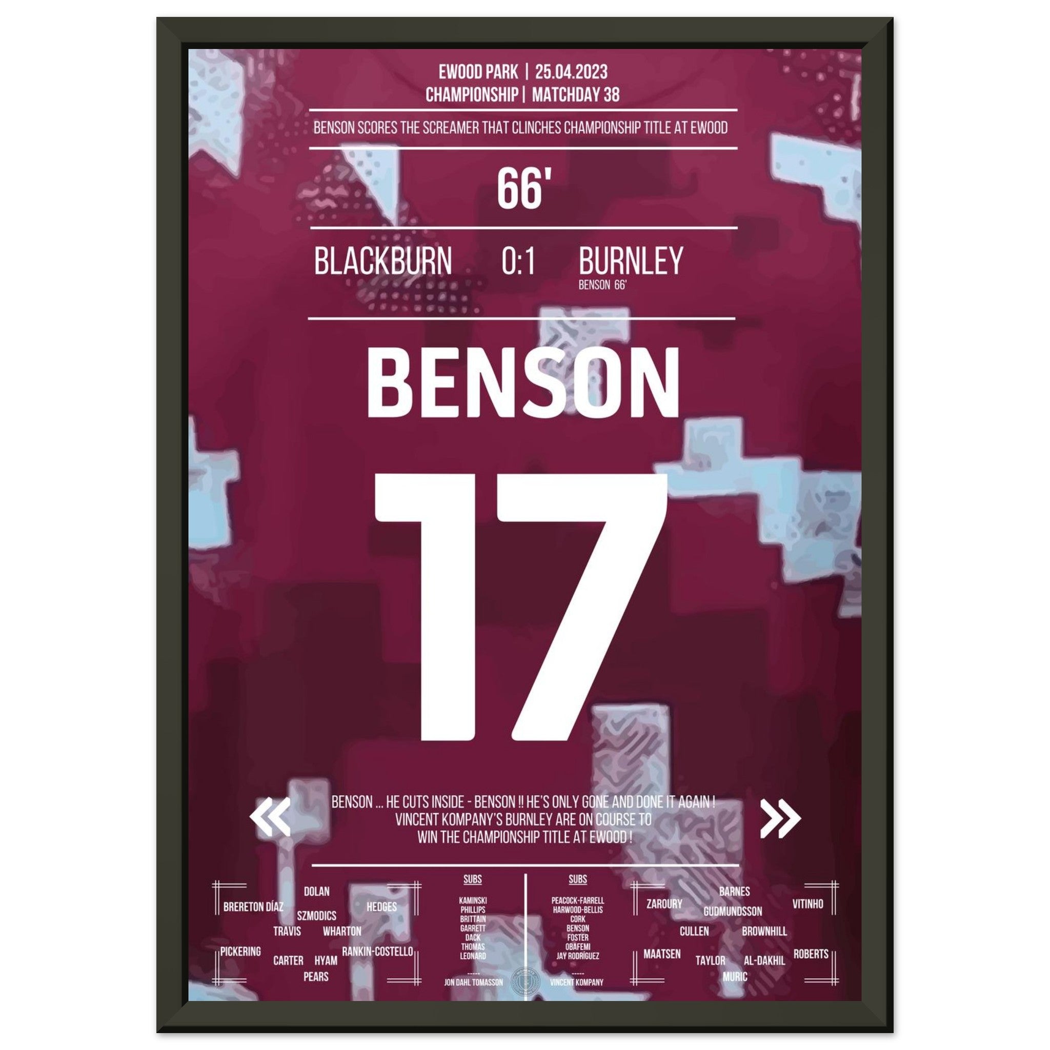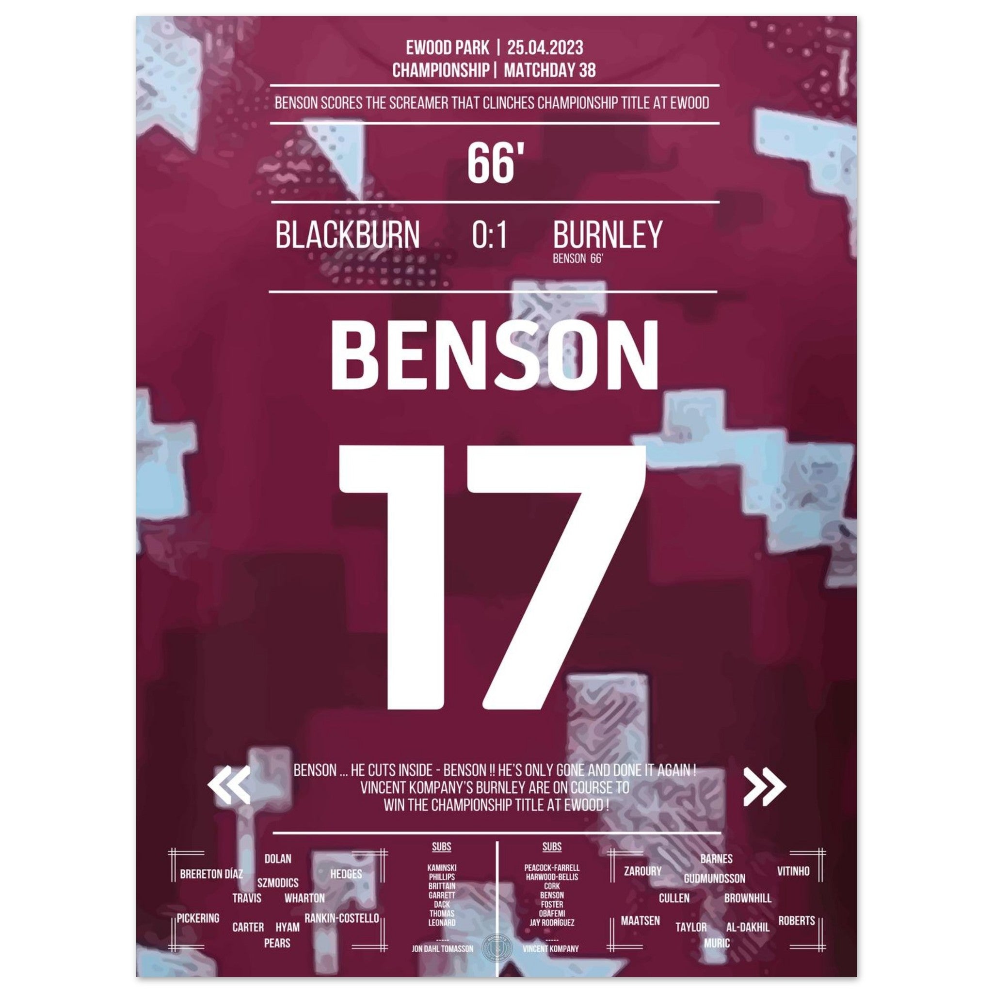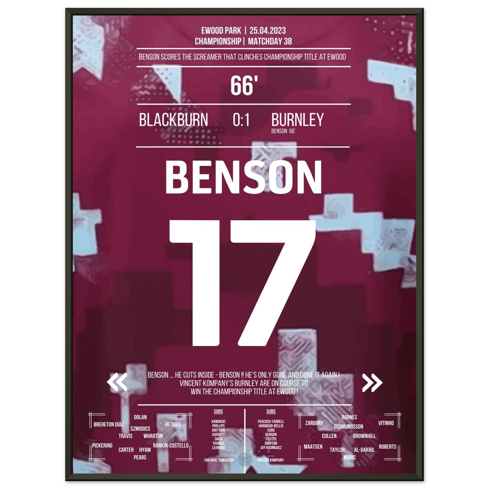 Benson's dream goal for the Championship title for Burnley at Ewood Park