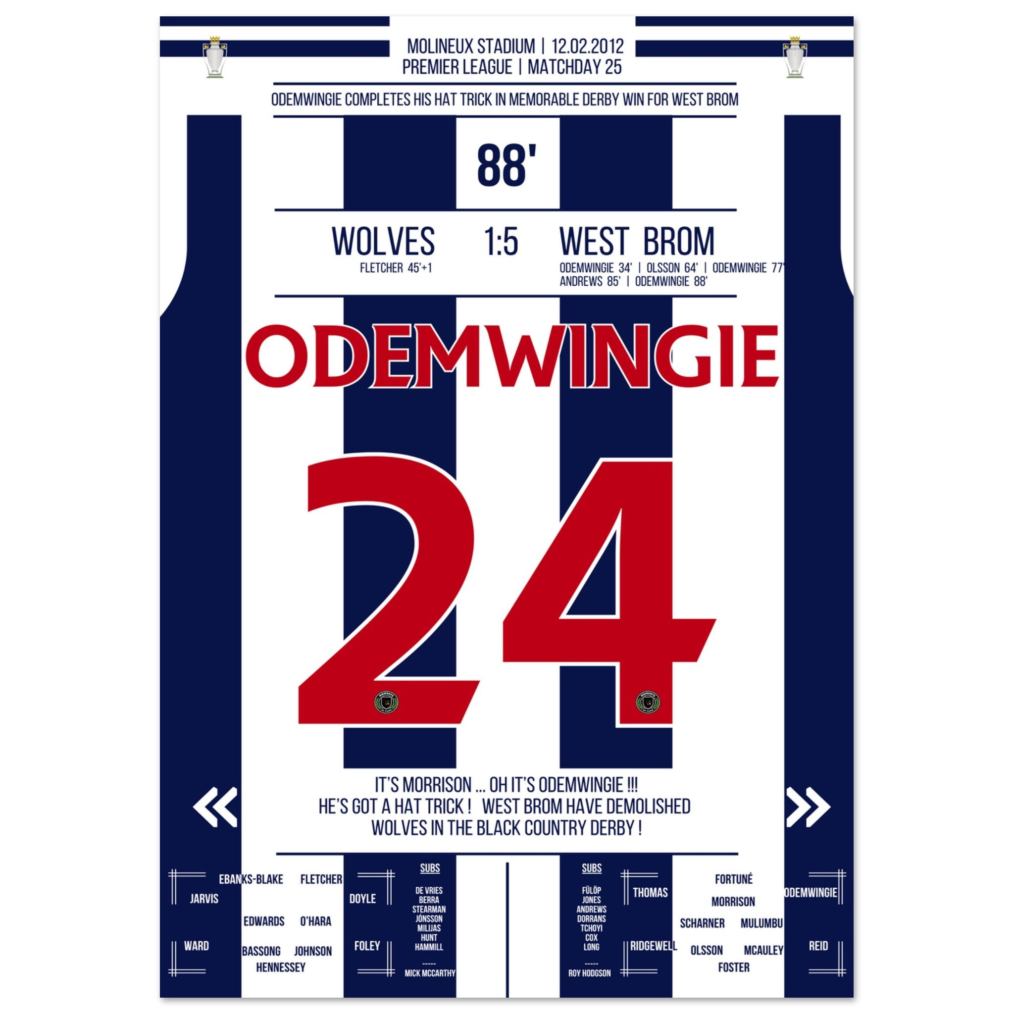 Odemwingie with a hat-trick in the Black Country Derby victory for West Brom