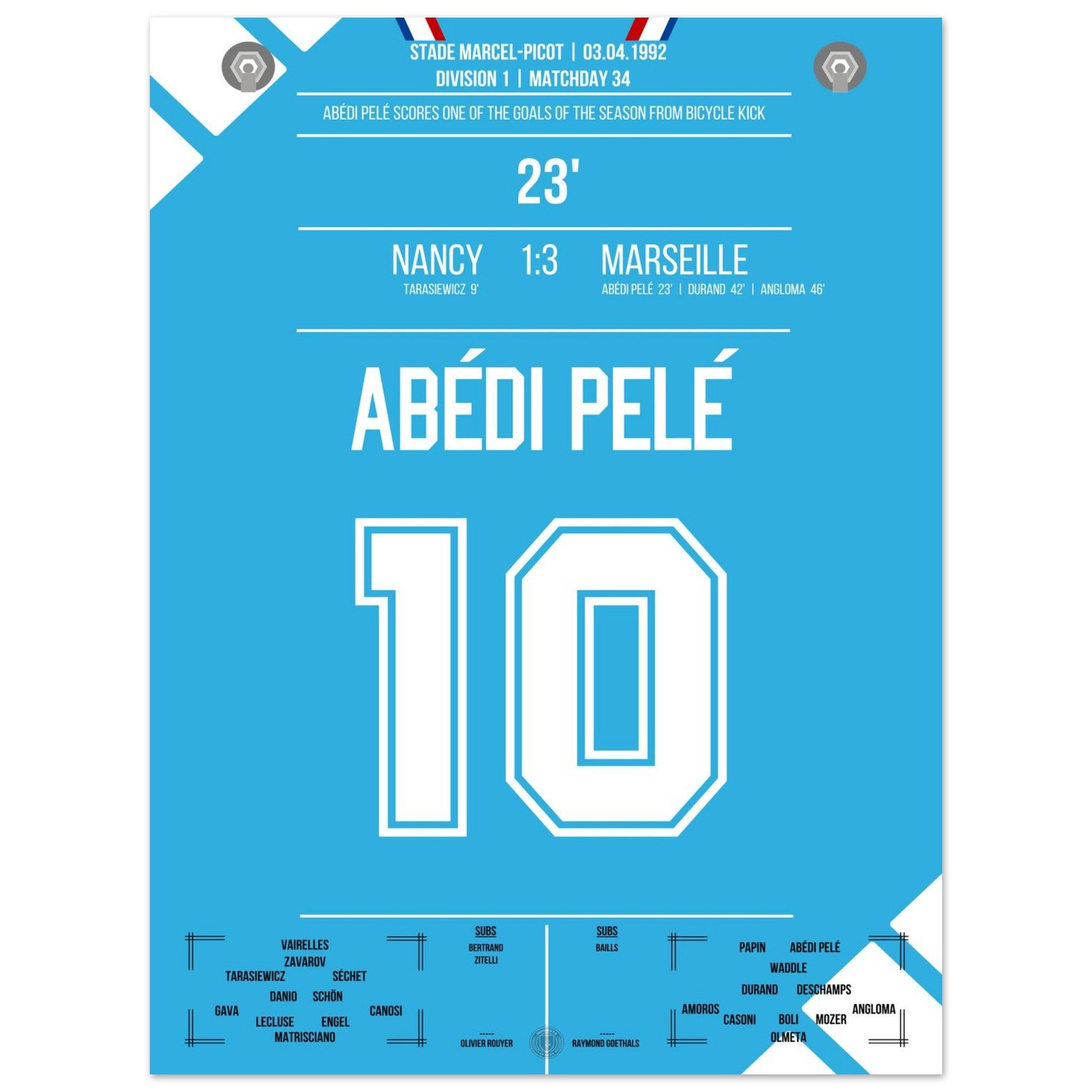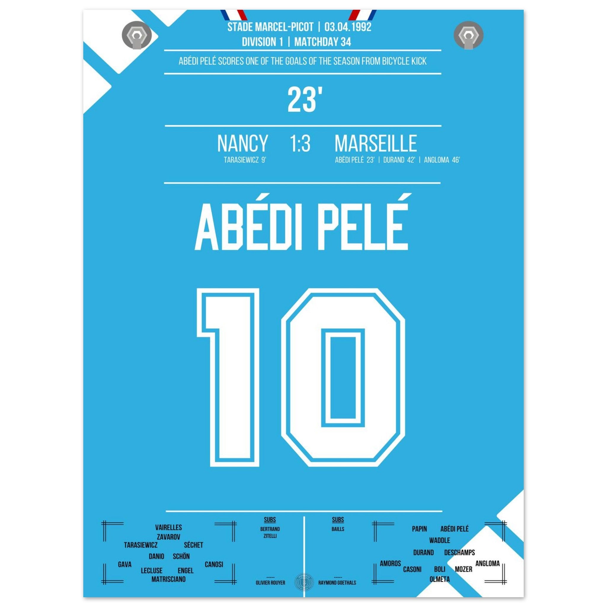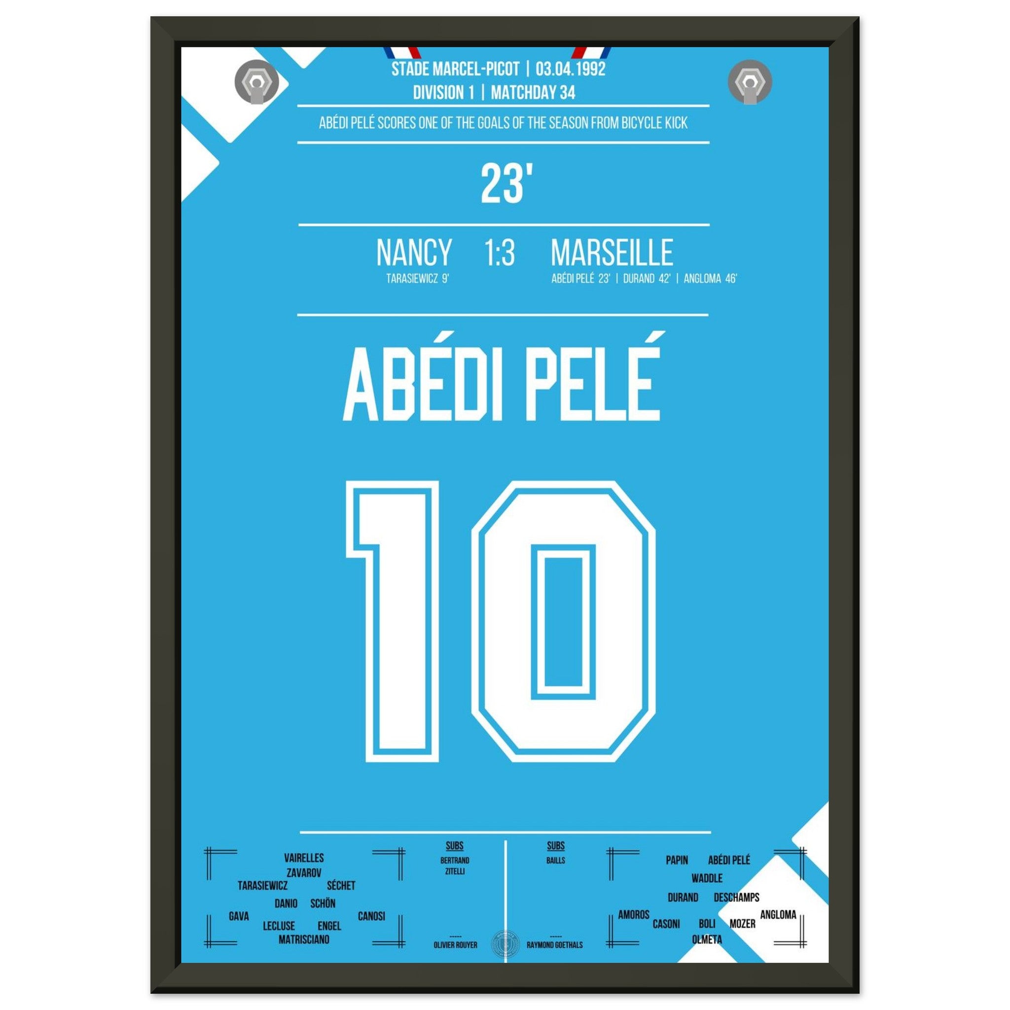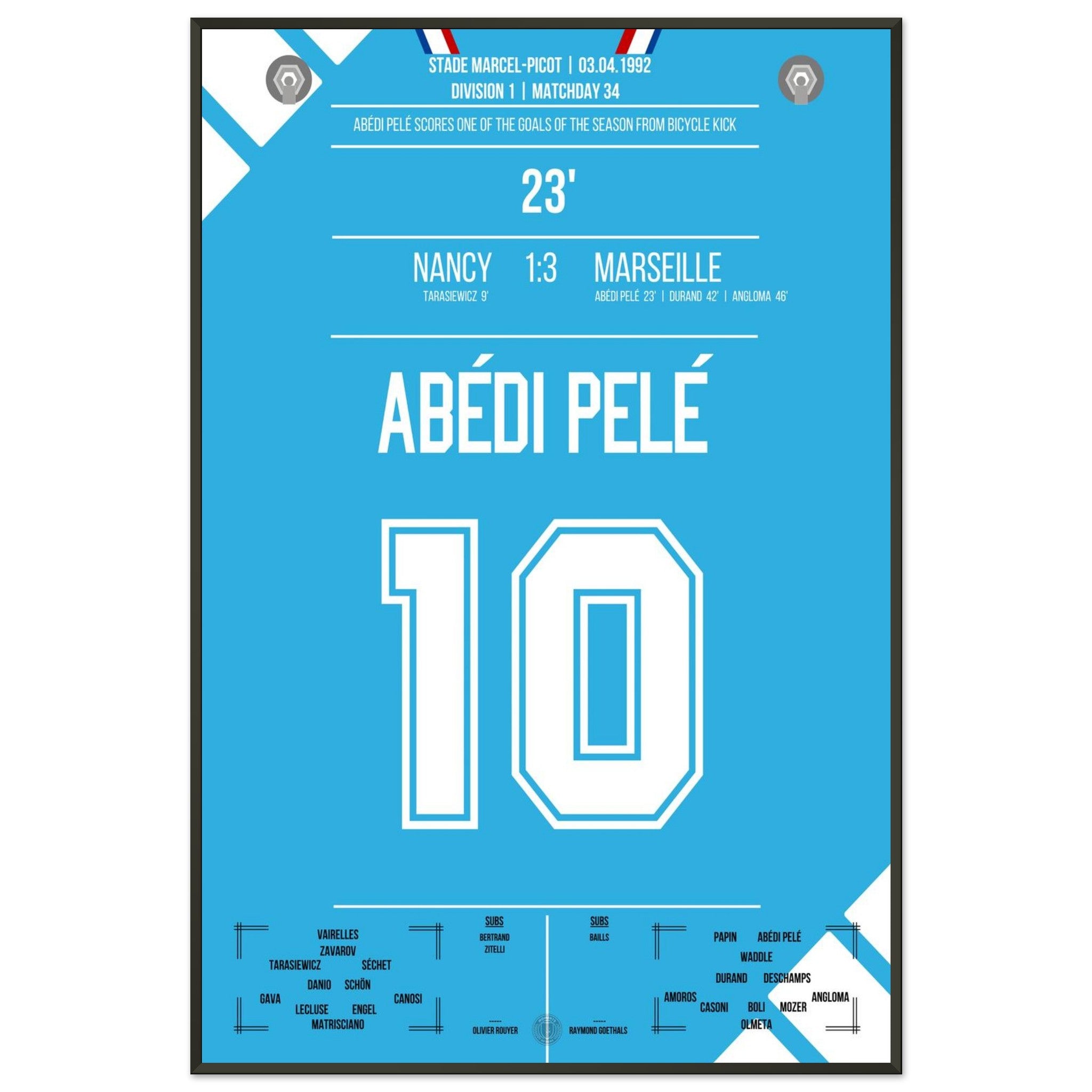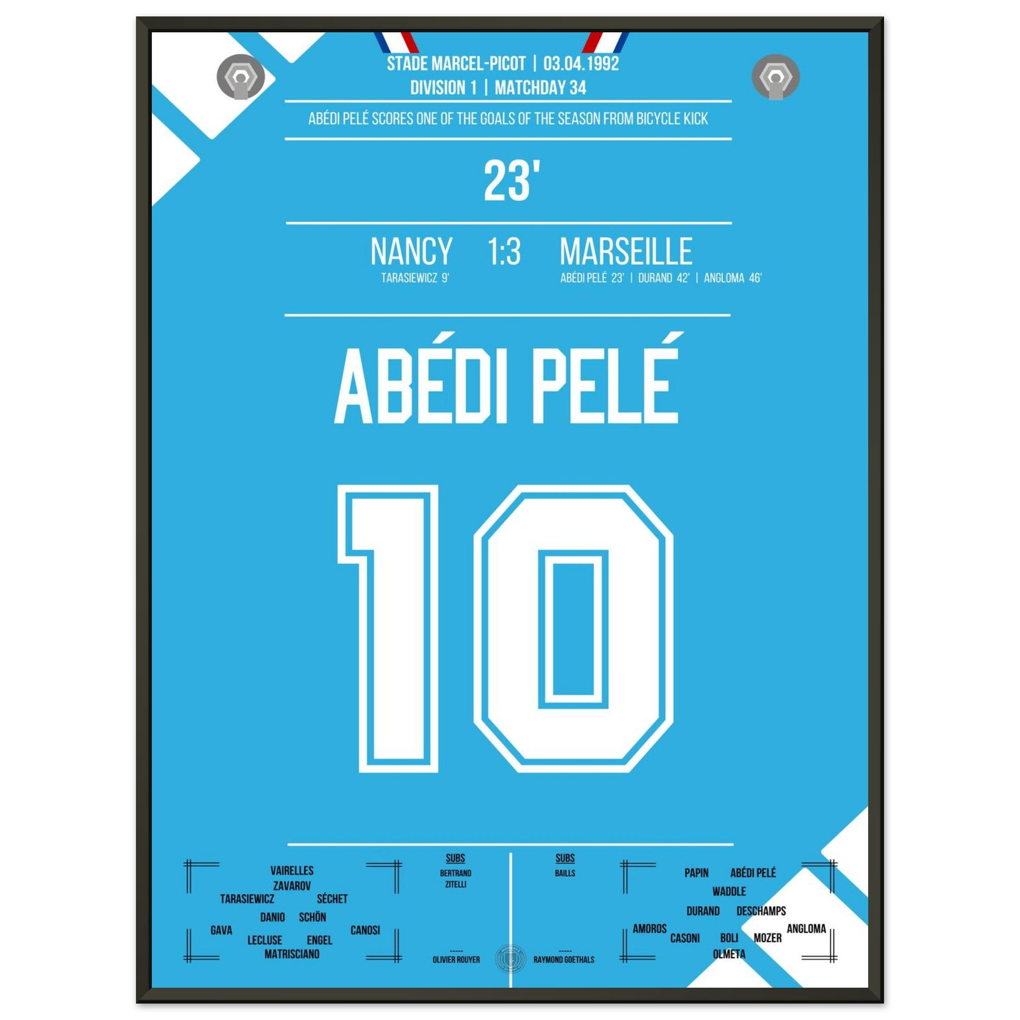 Abédi Pelé with a dream goal via a bicycle kick in the away victory in Nancy.