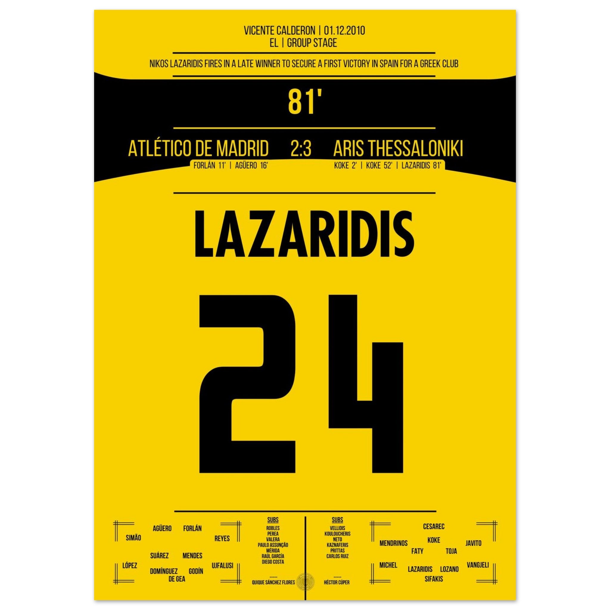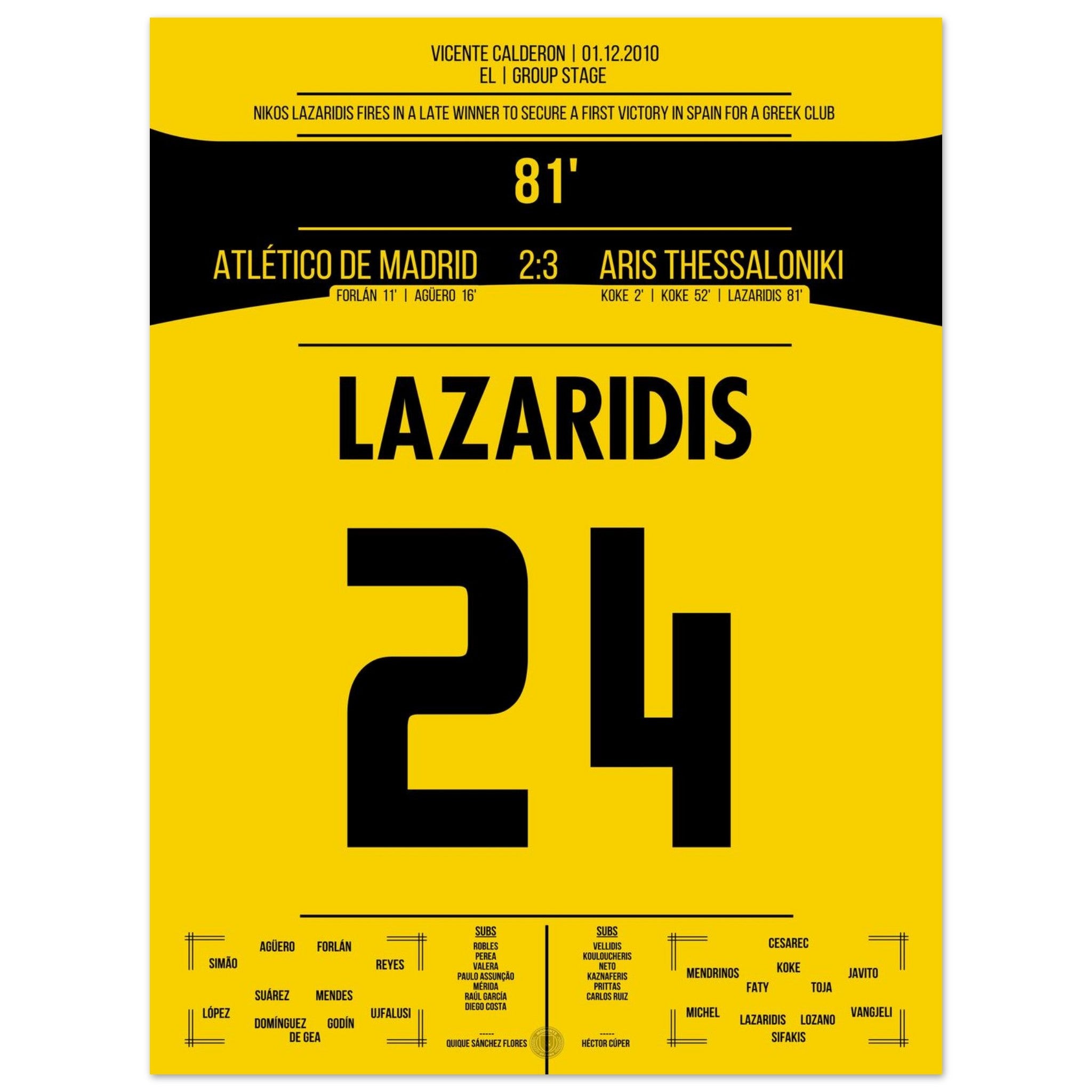 Lazaridis' winning goal in Aris' historic victory against Atletico in 2010