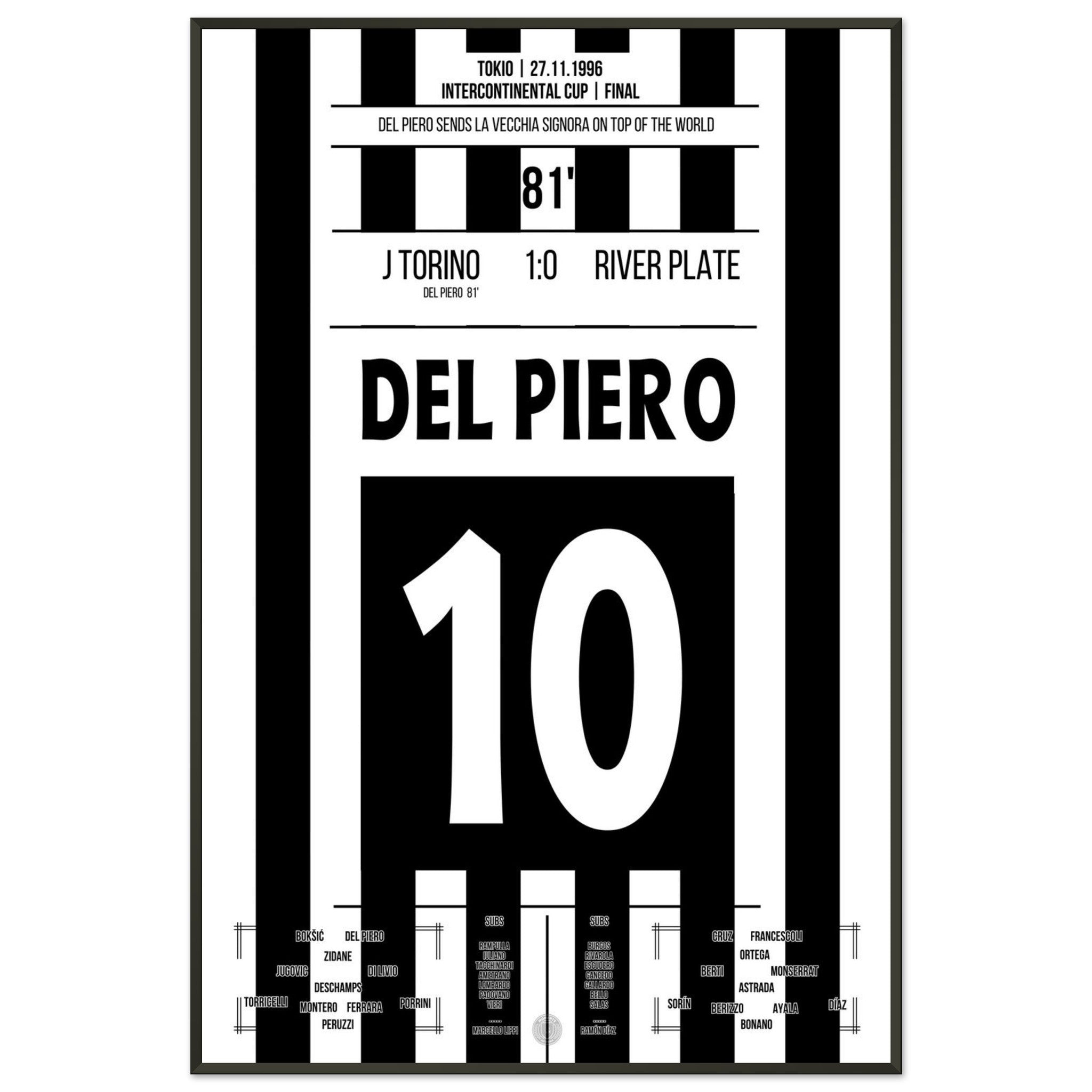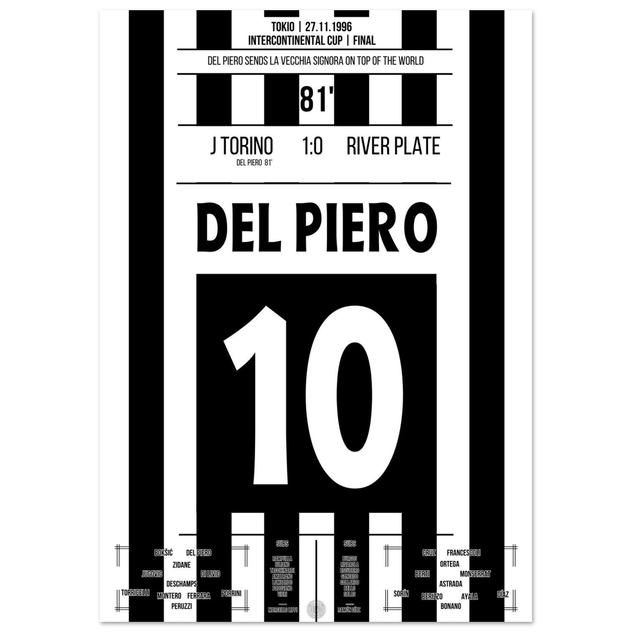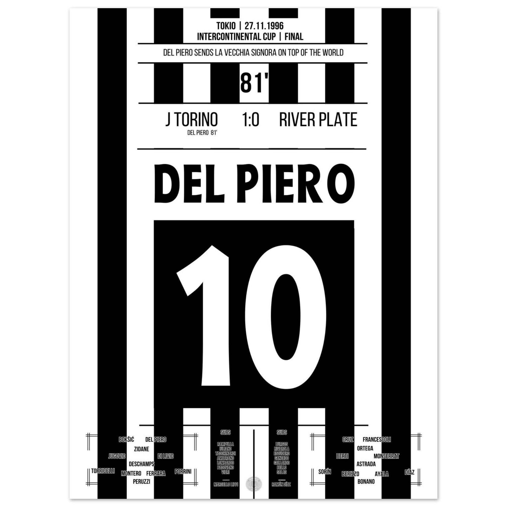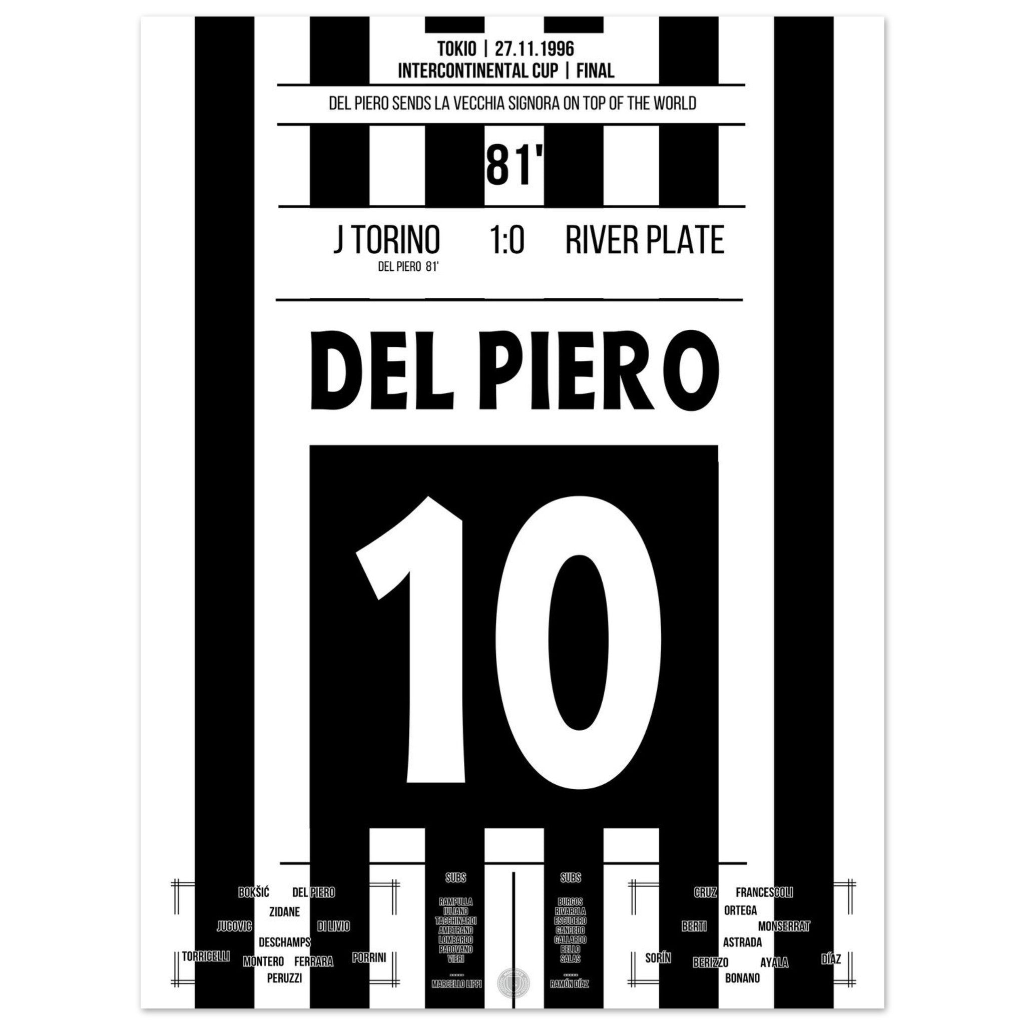 Del Piero scores and shoots the Bianconeri to the top of the world in 1996.