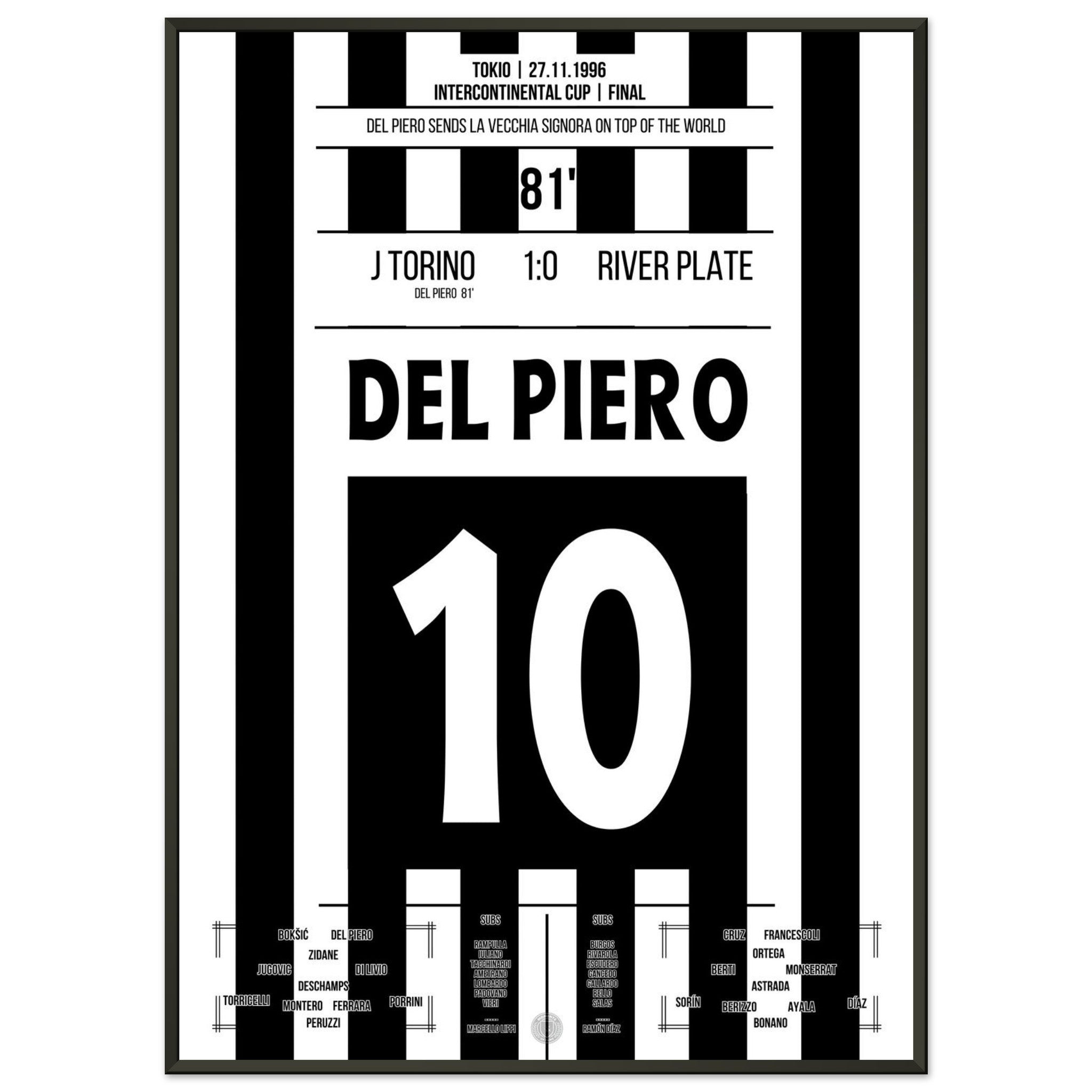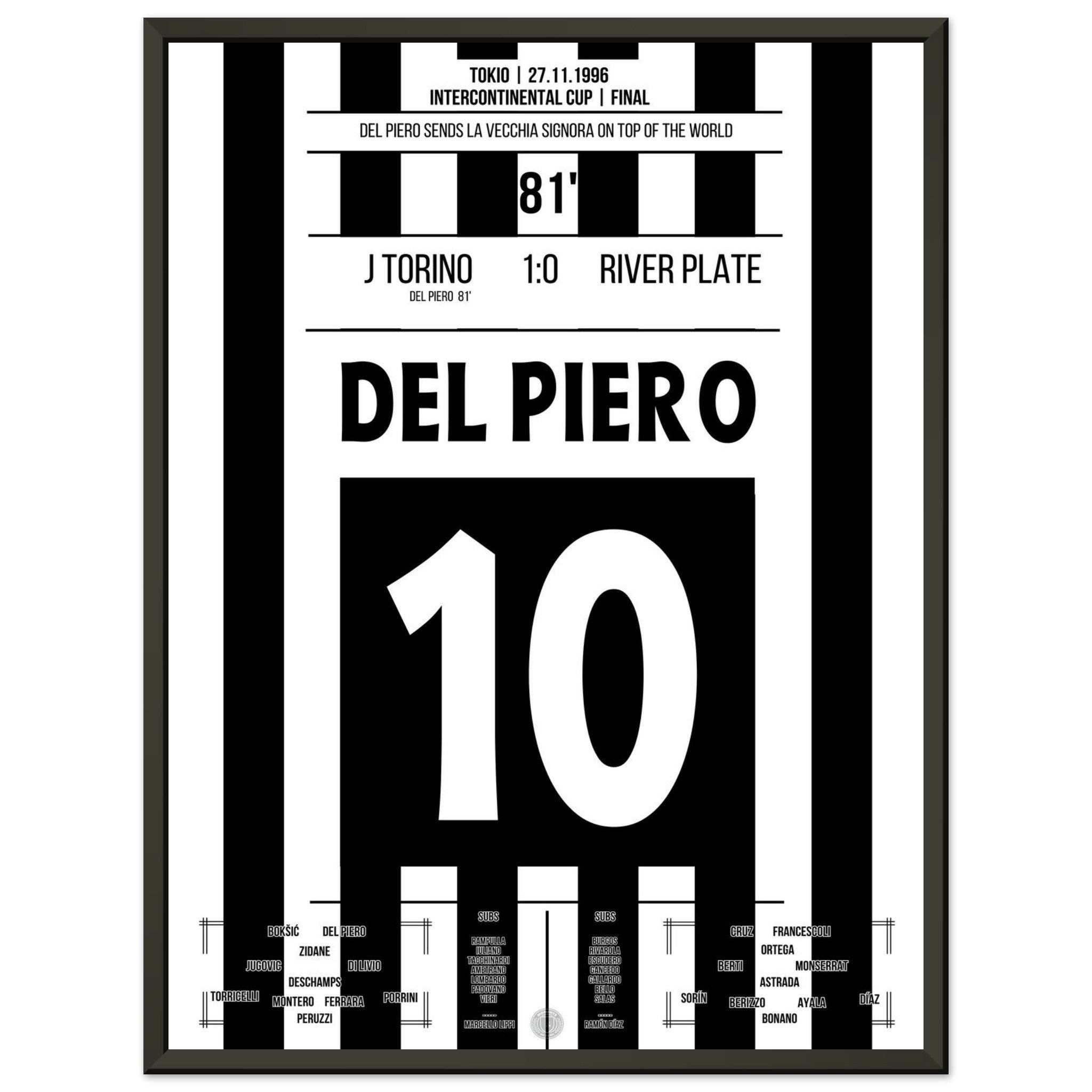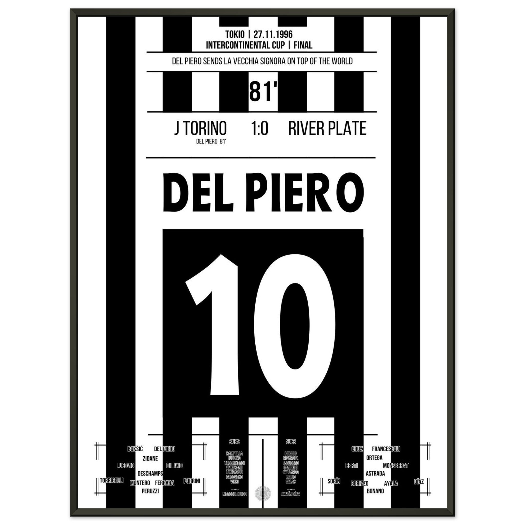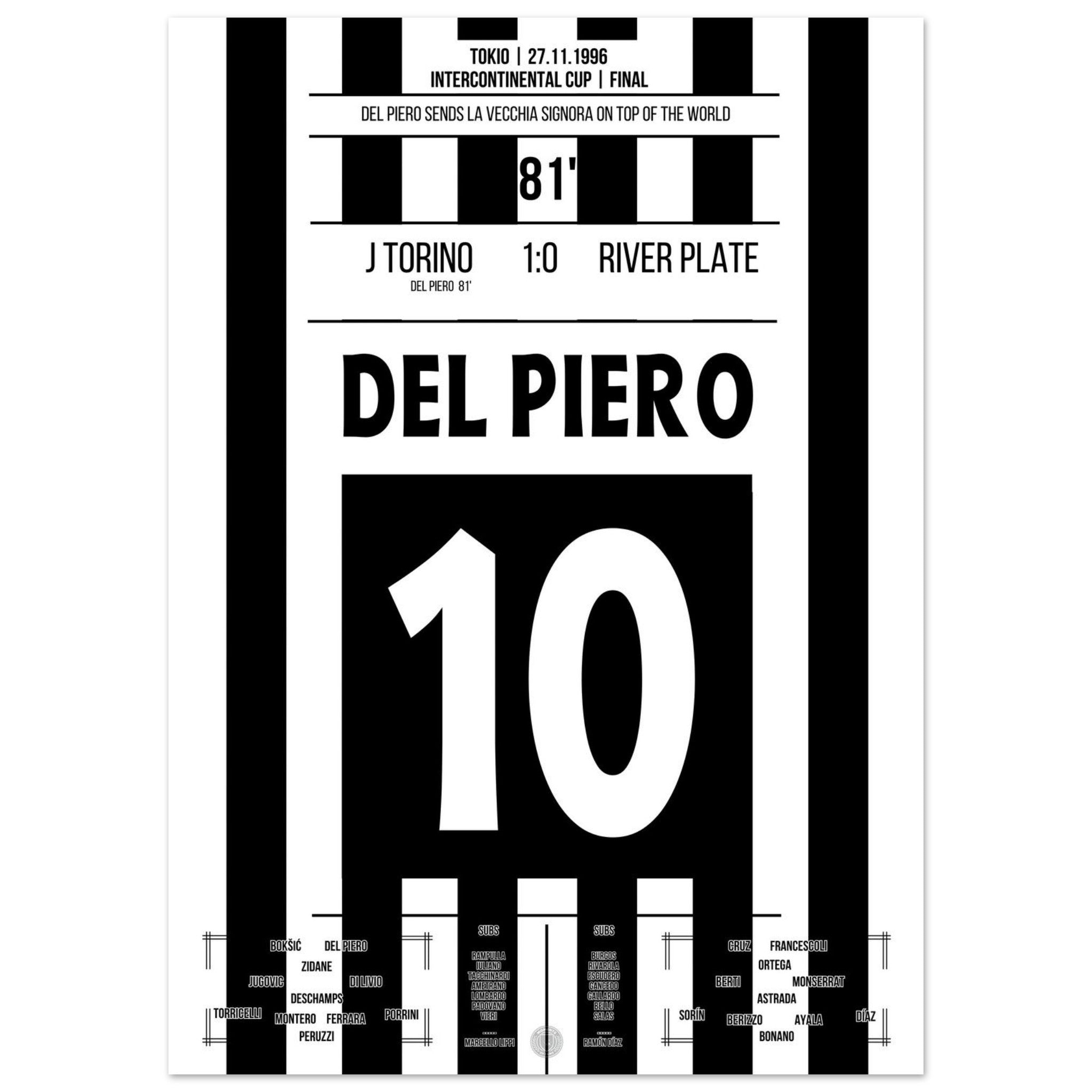 Del Piero scores and shoots the Bianconeri to the top of the world in 1996.