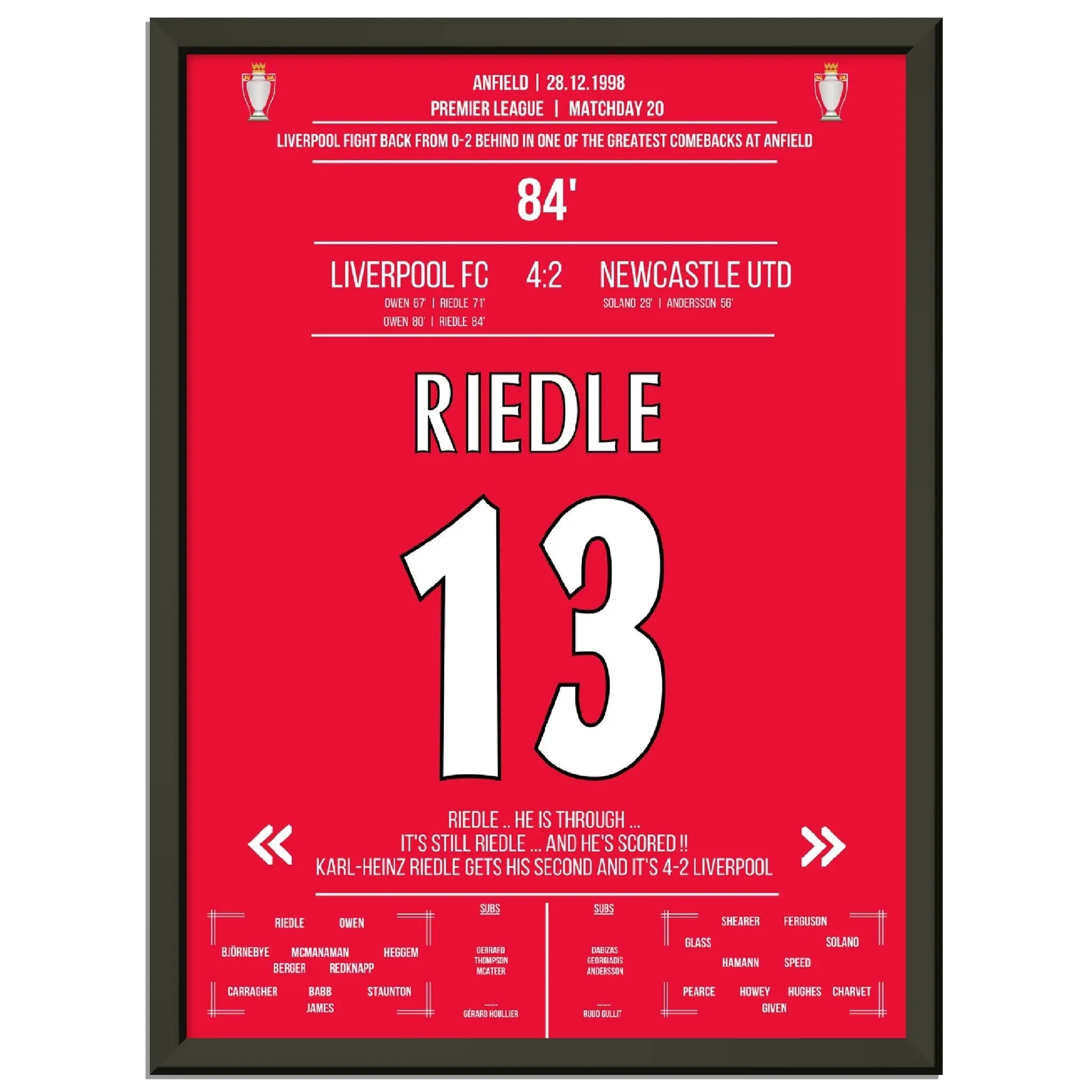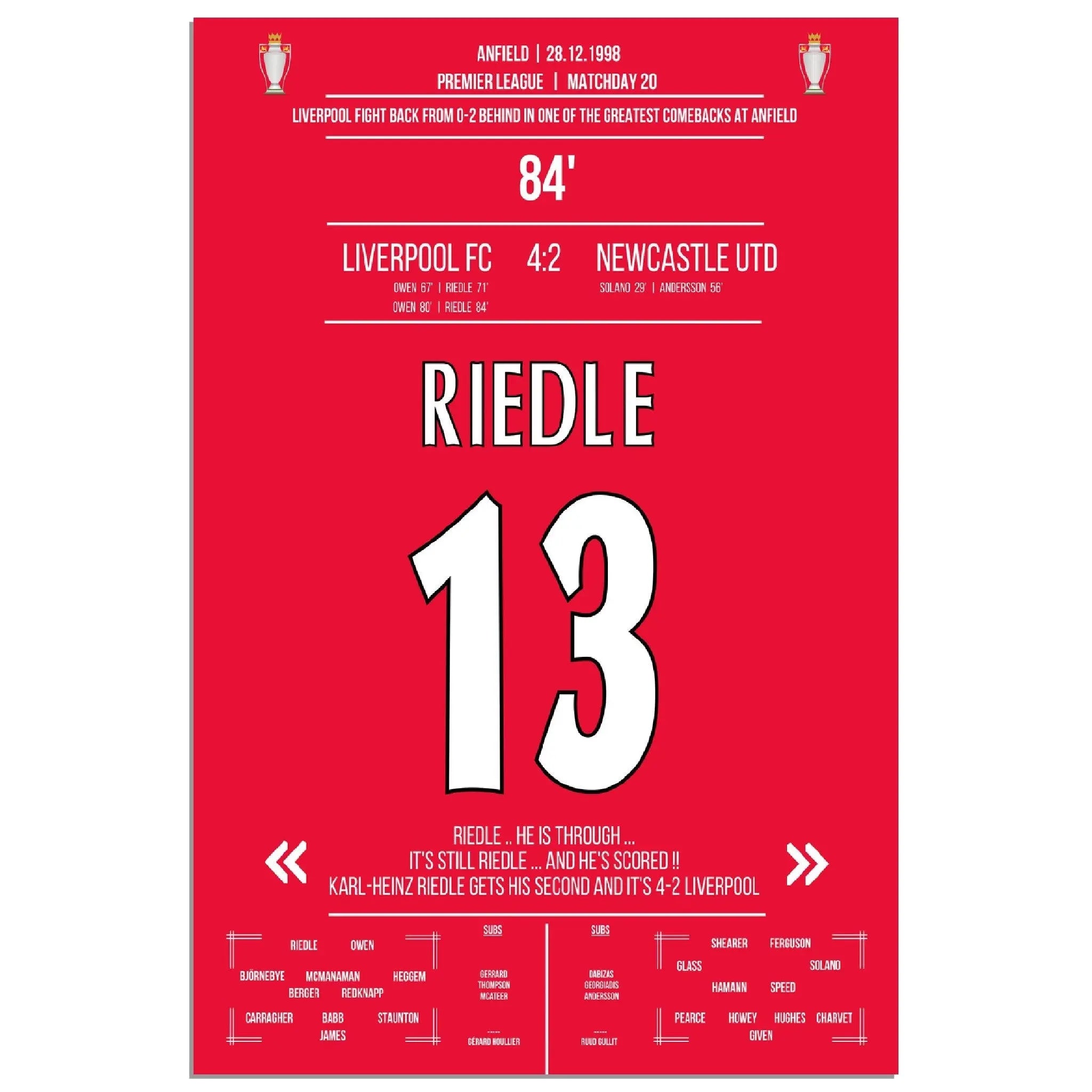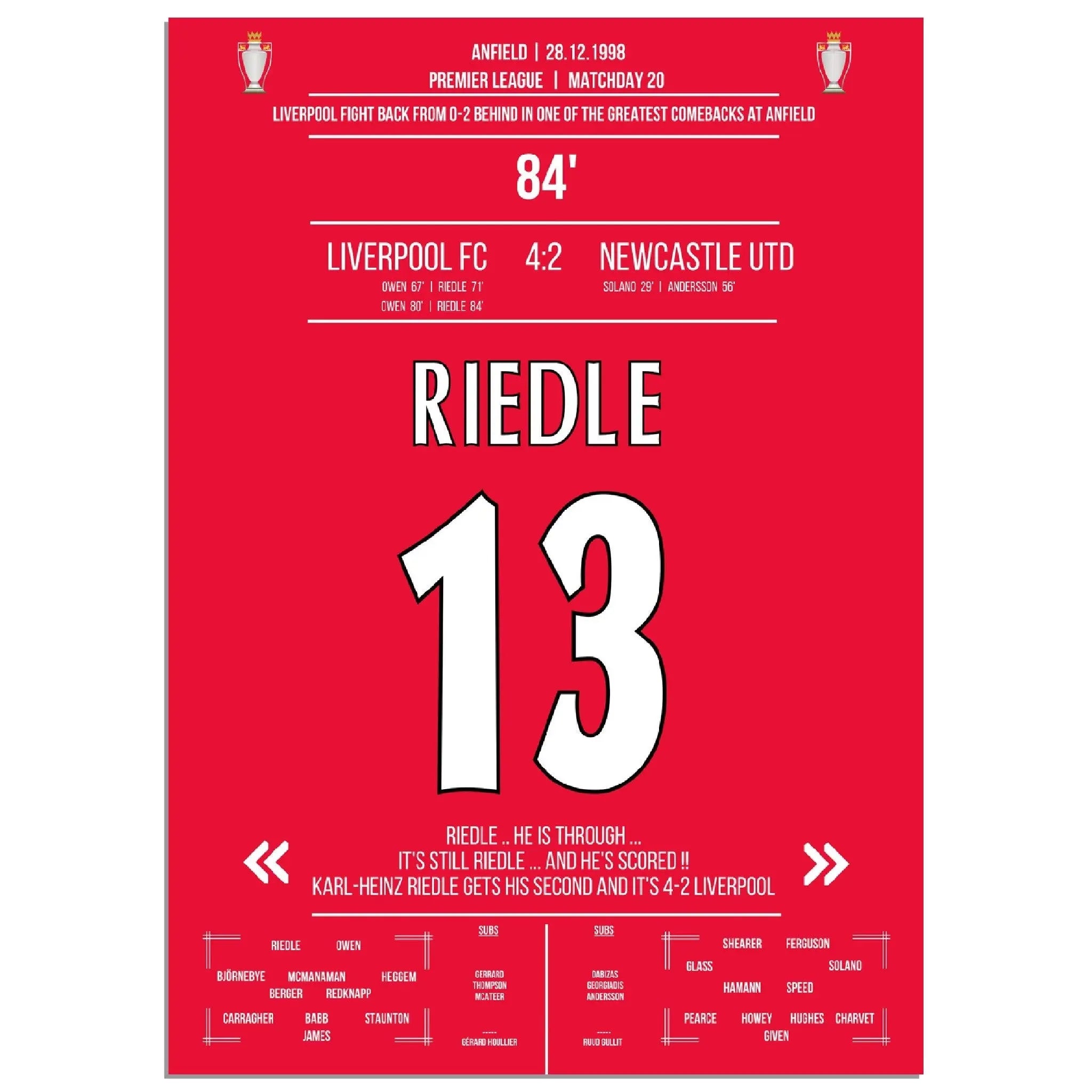 Riedle's double pack during Liverpool's wild comeback against Newcastle in 1998