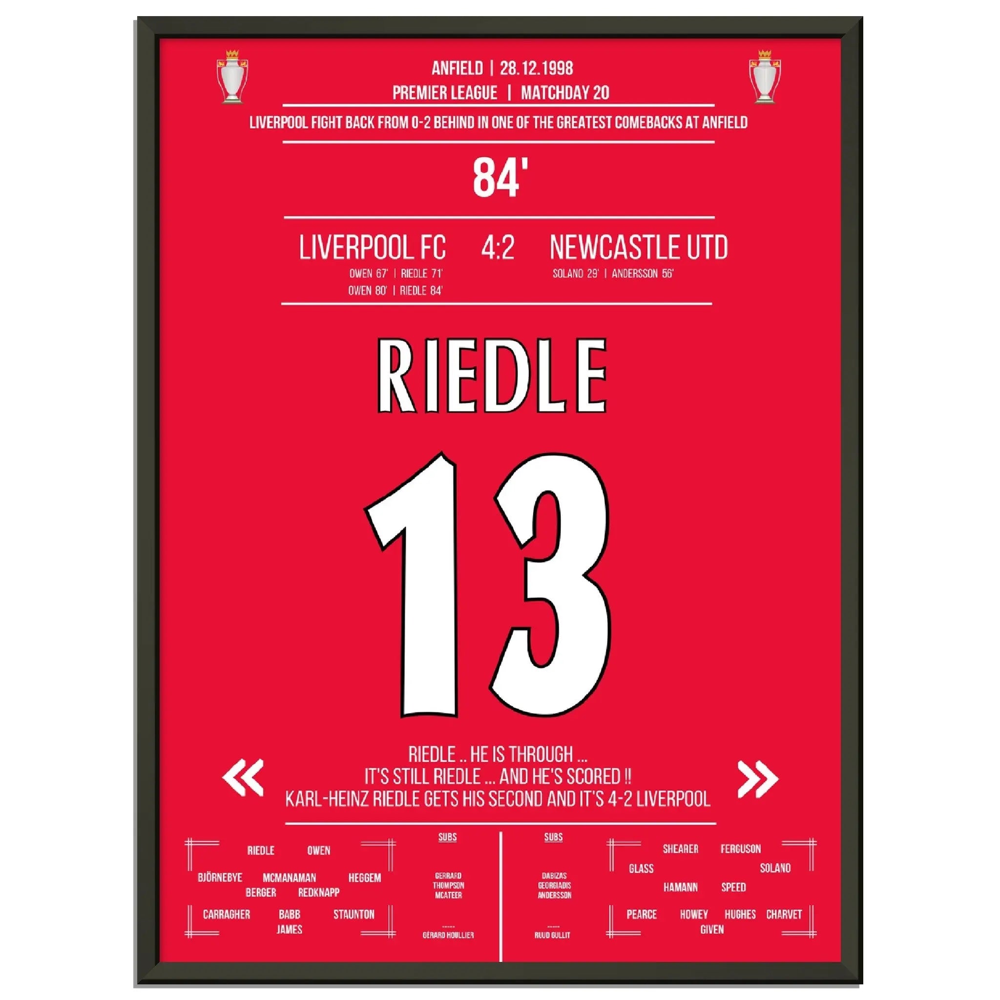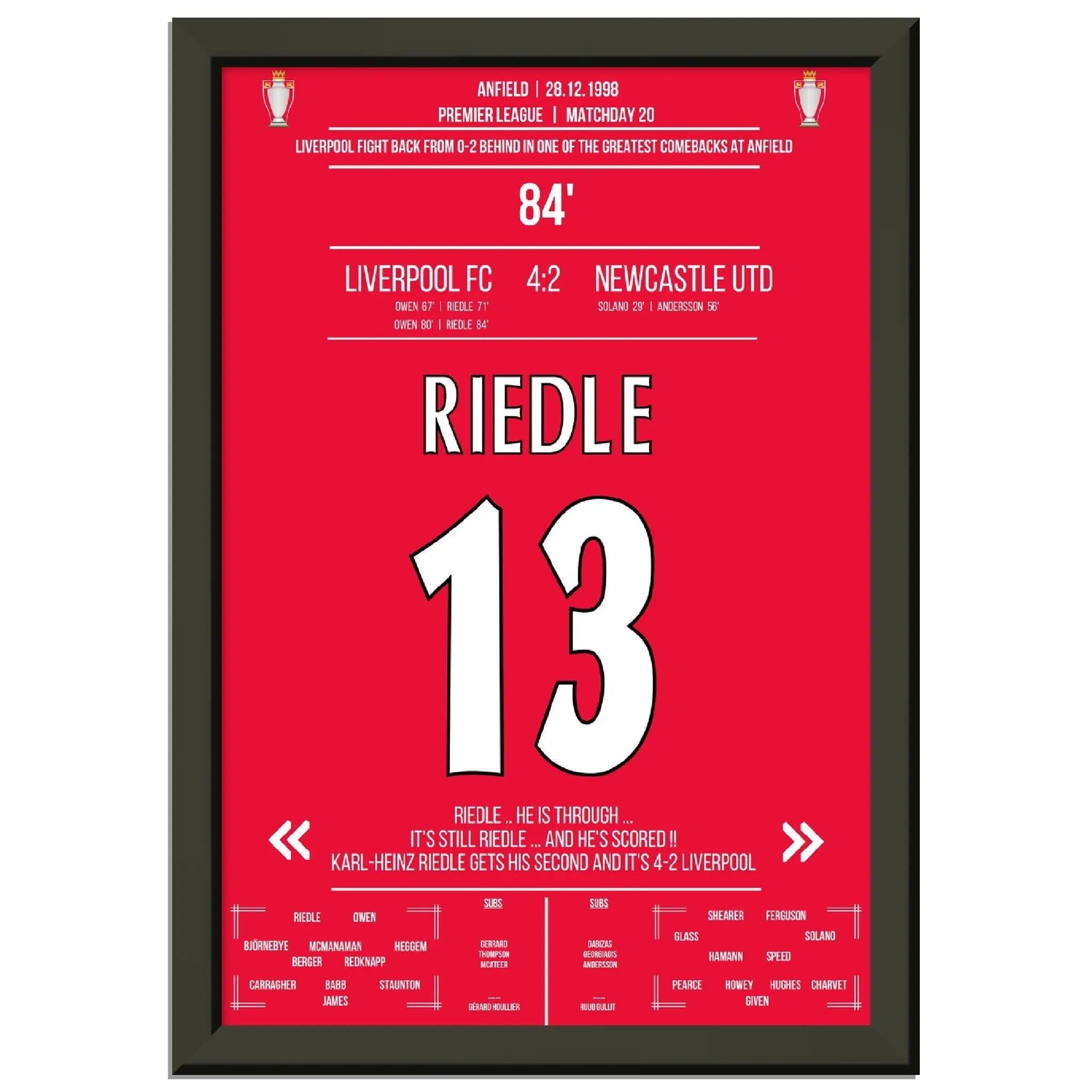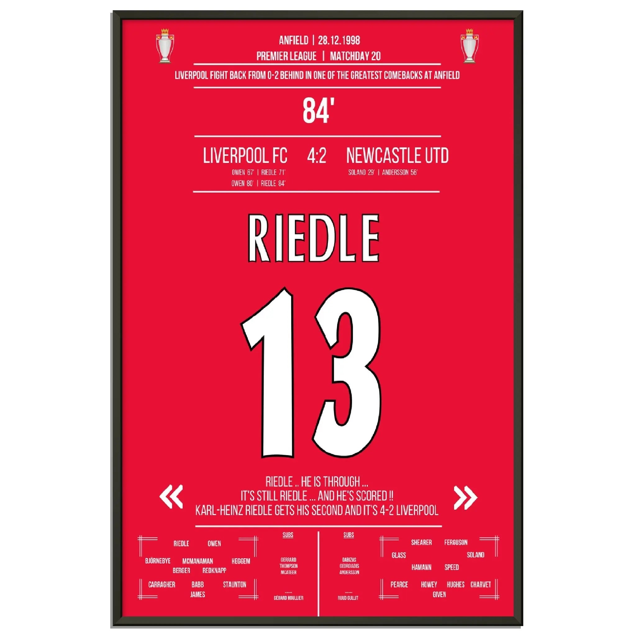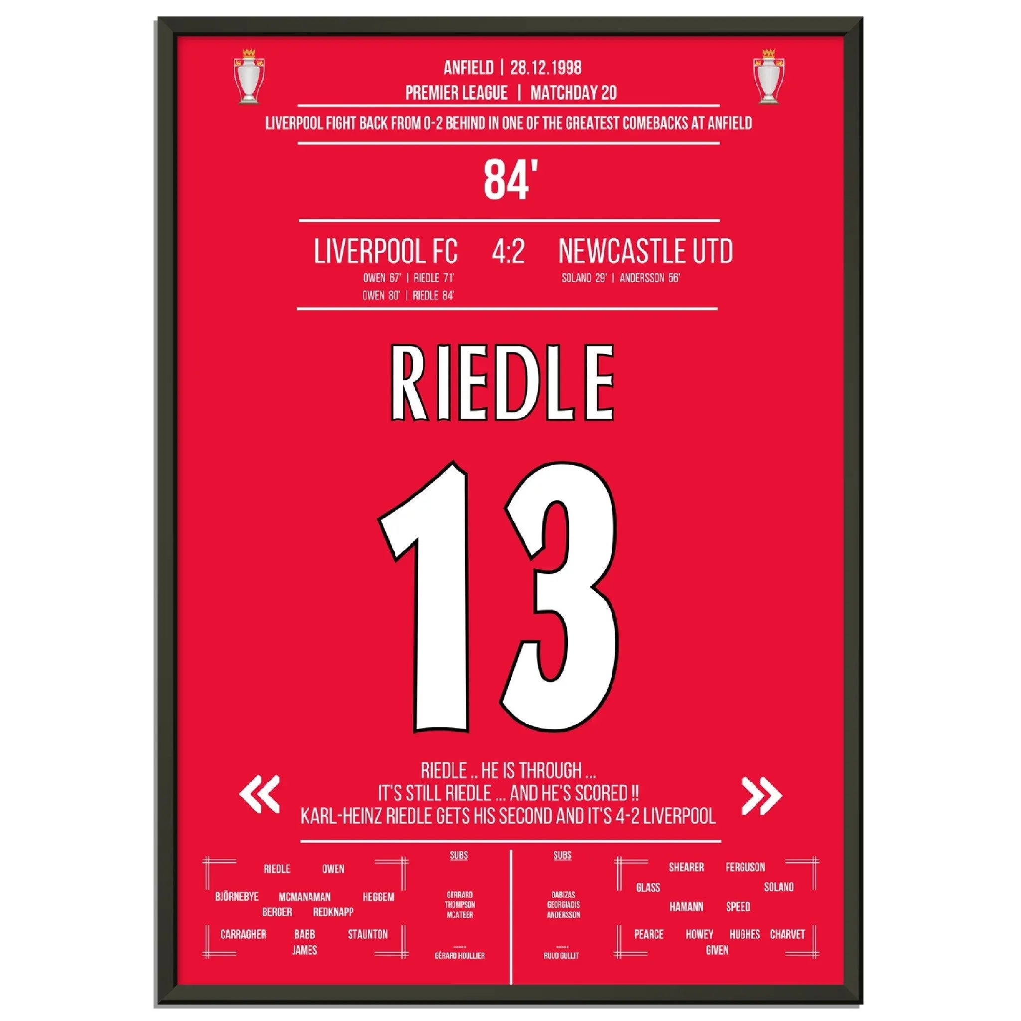 Riedle's double pack during Liverpool's wild comeback against Newcastle in 1998