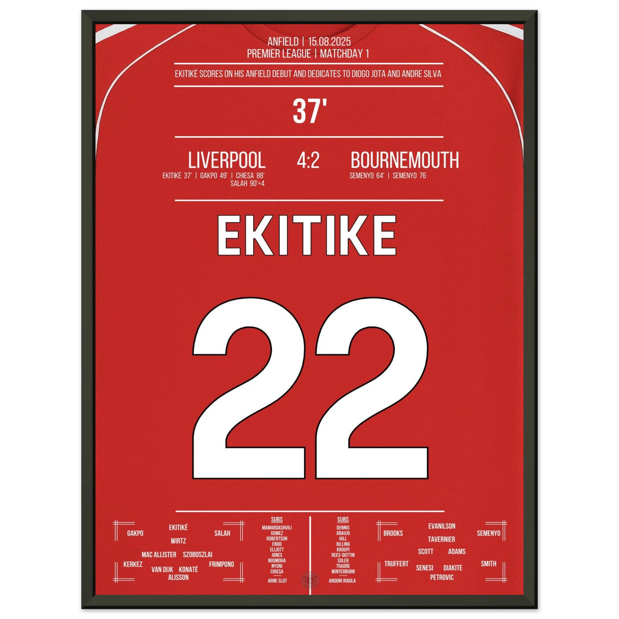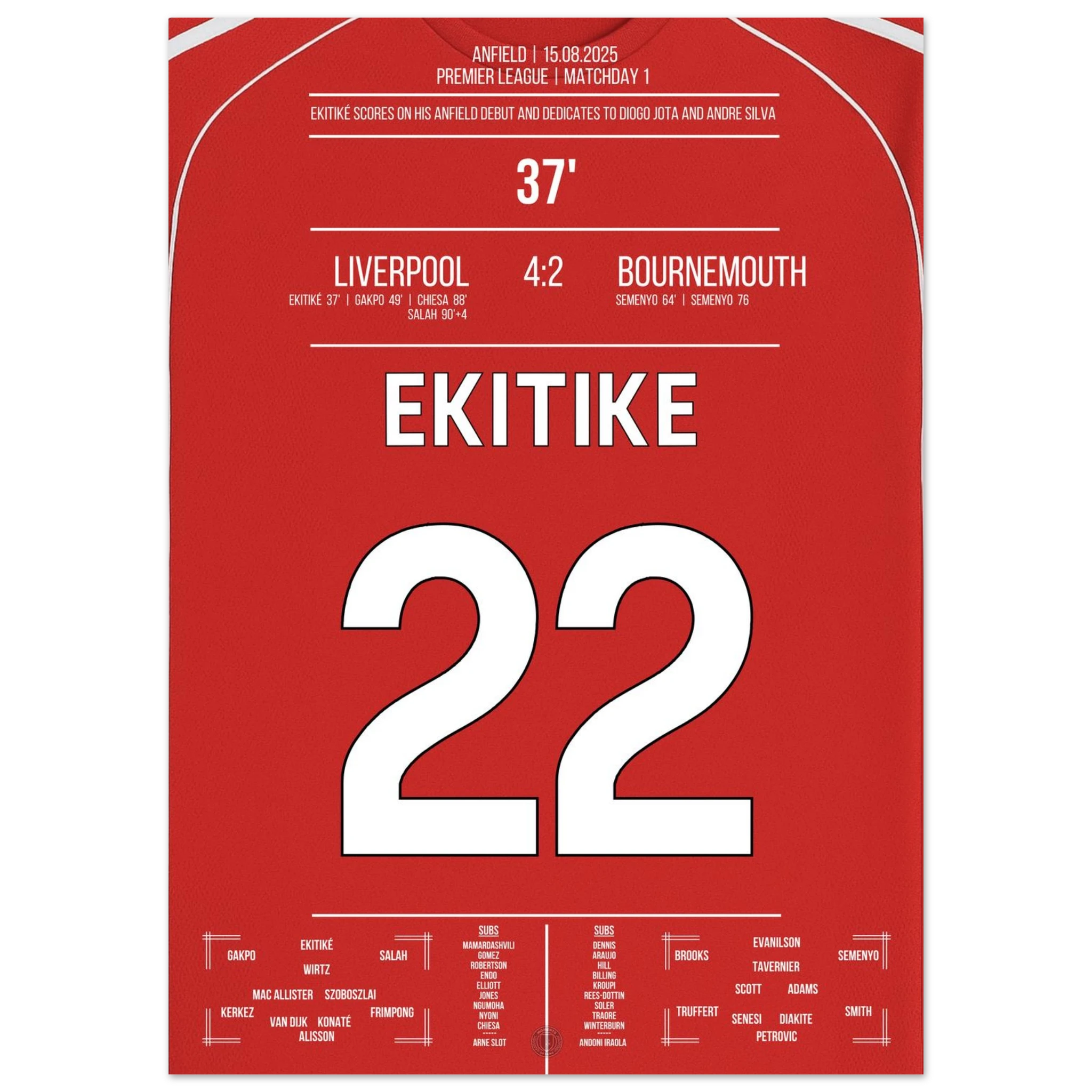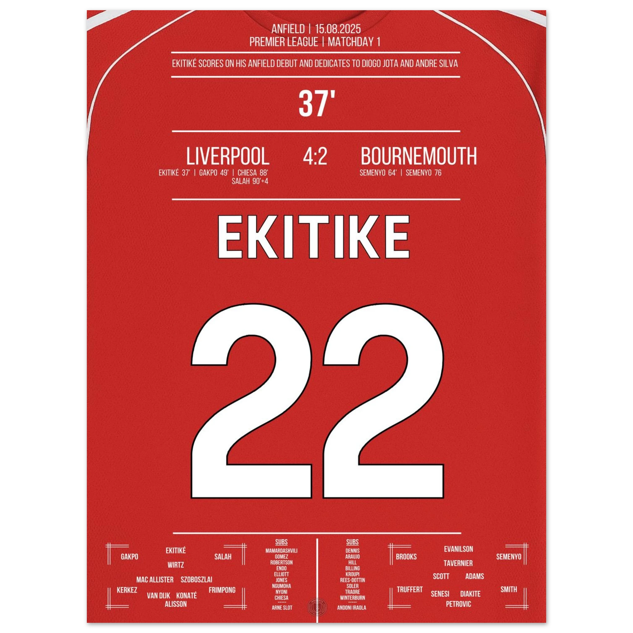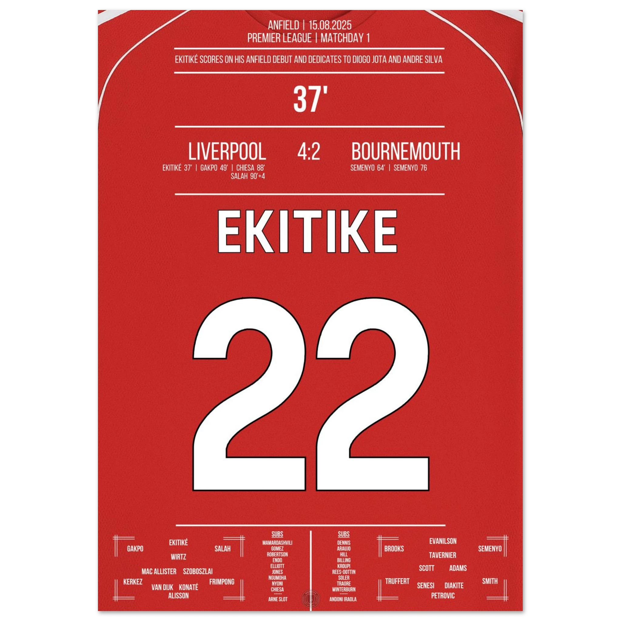 Am 15. August 2025 feiert Liverpool beim 4:2 gegen Bournemouth einen emotionalen und torreichen Auftakt in die Saison. Ekitike trifft bei seinem Debüt, Chiesa wird mit dem späten Siegtreffer zum Helden – und Salah setzt mit dem 4:2 den glanzvollen Schlusspunkt in Anfield. Ein würdiger Sieg in Gedenken an Diogo Jota und seinen Bruder Andre Silva.