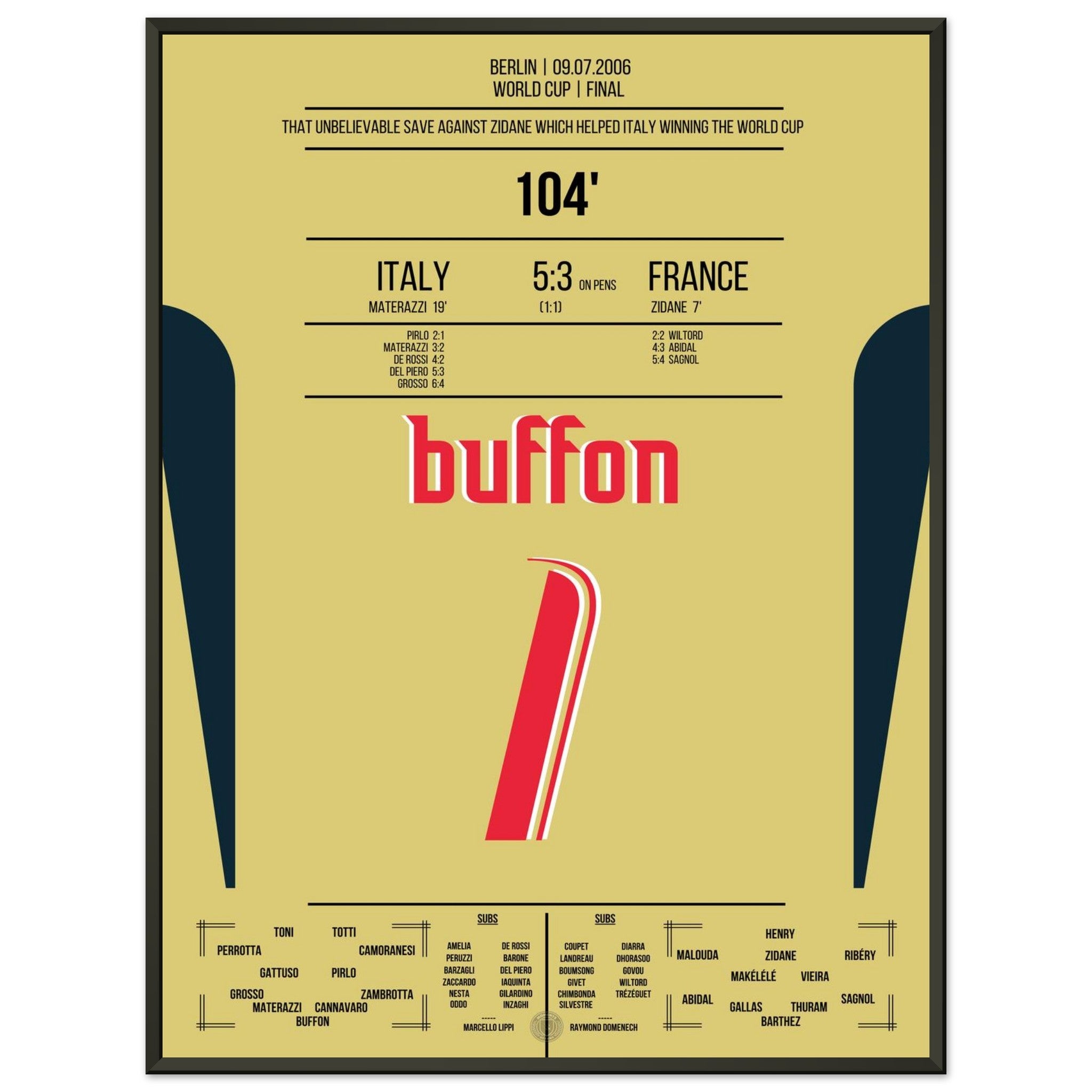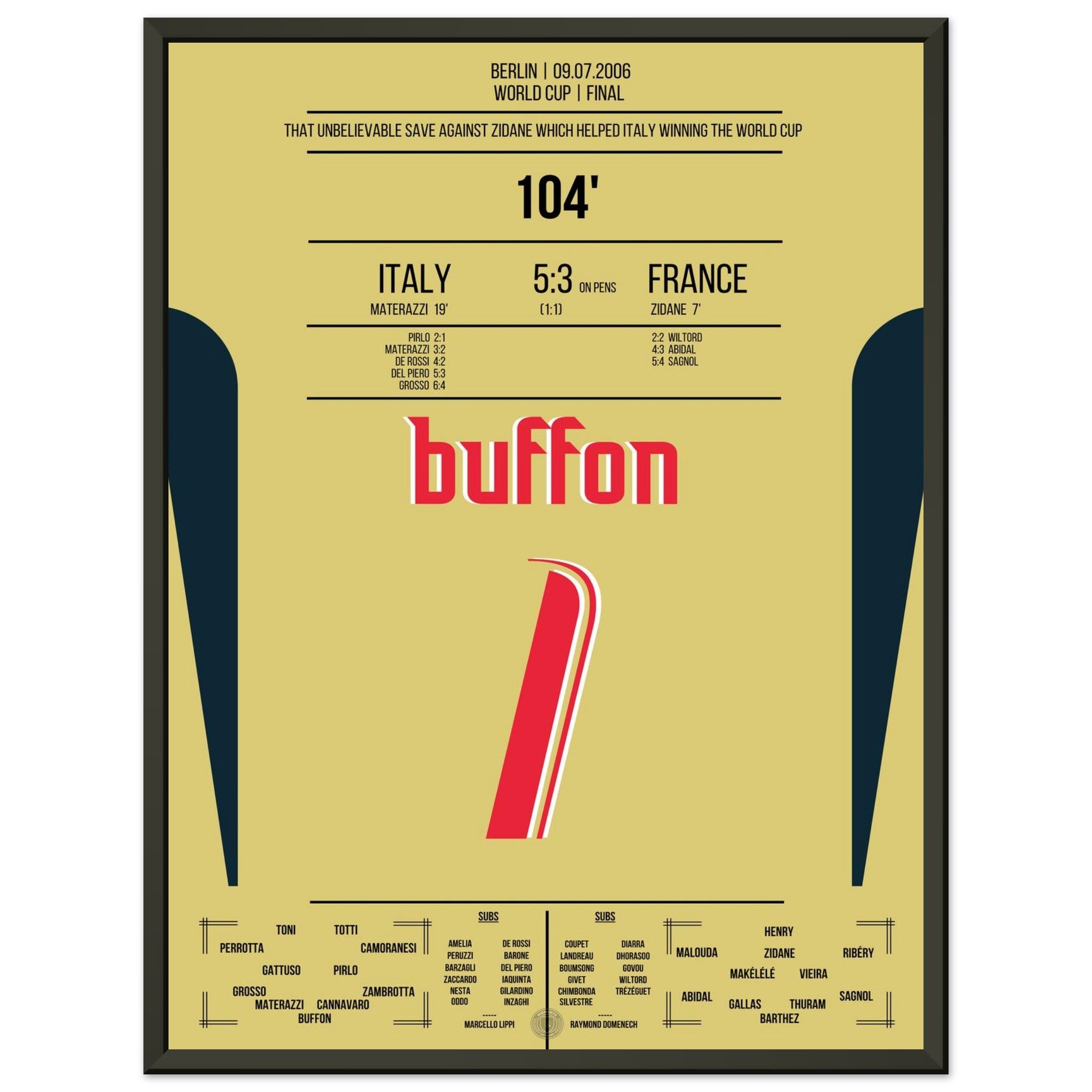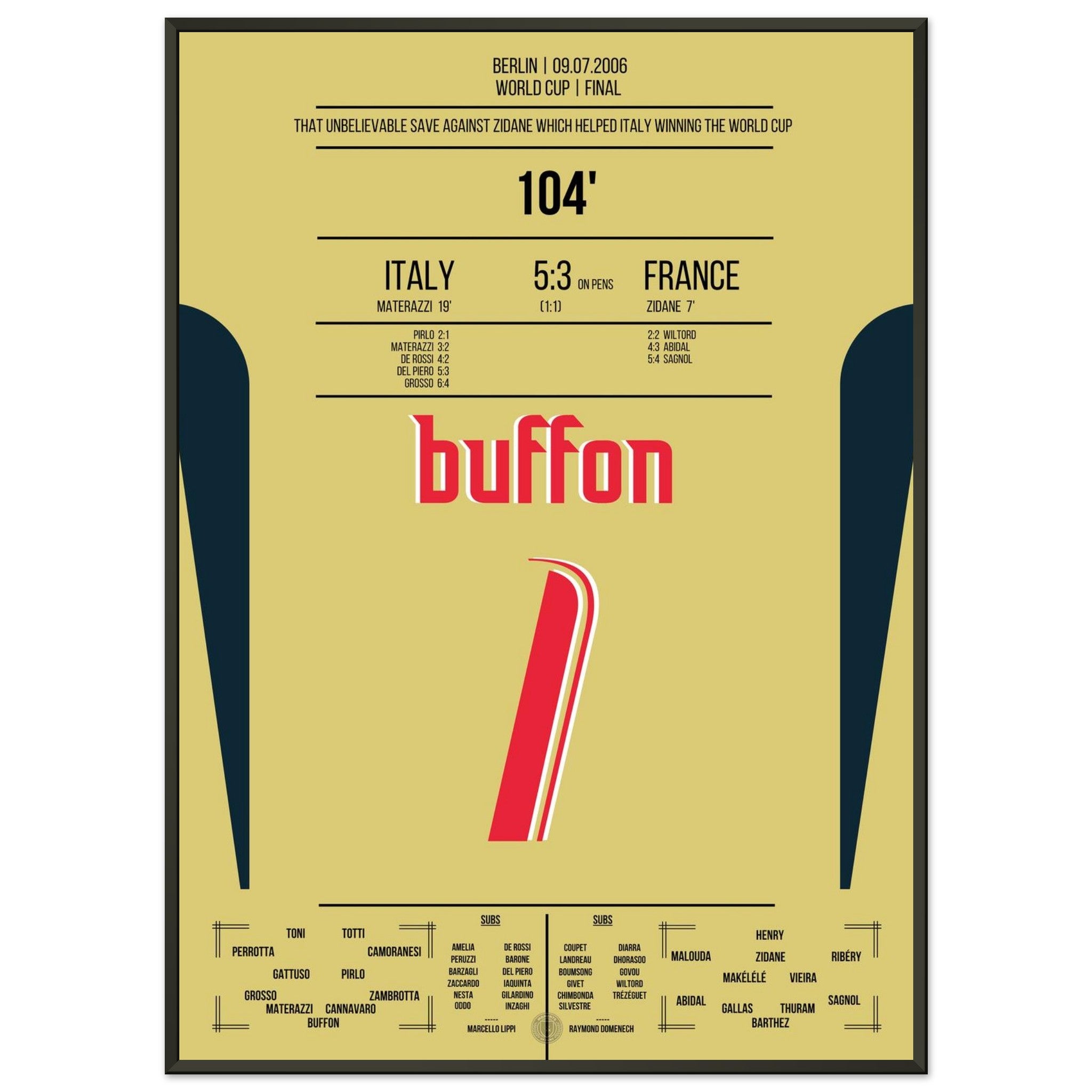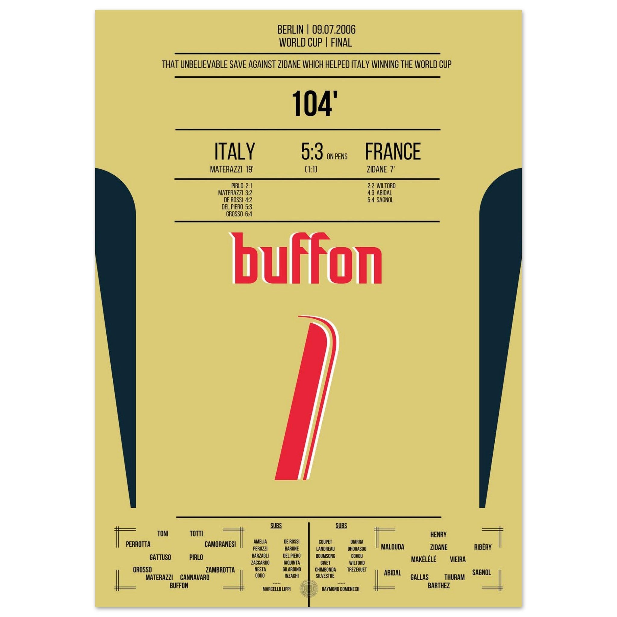 Buffon's legendary reaction against Zidane in the 2006 World Cup final.