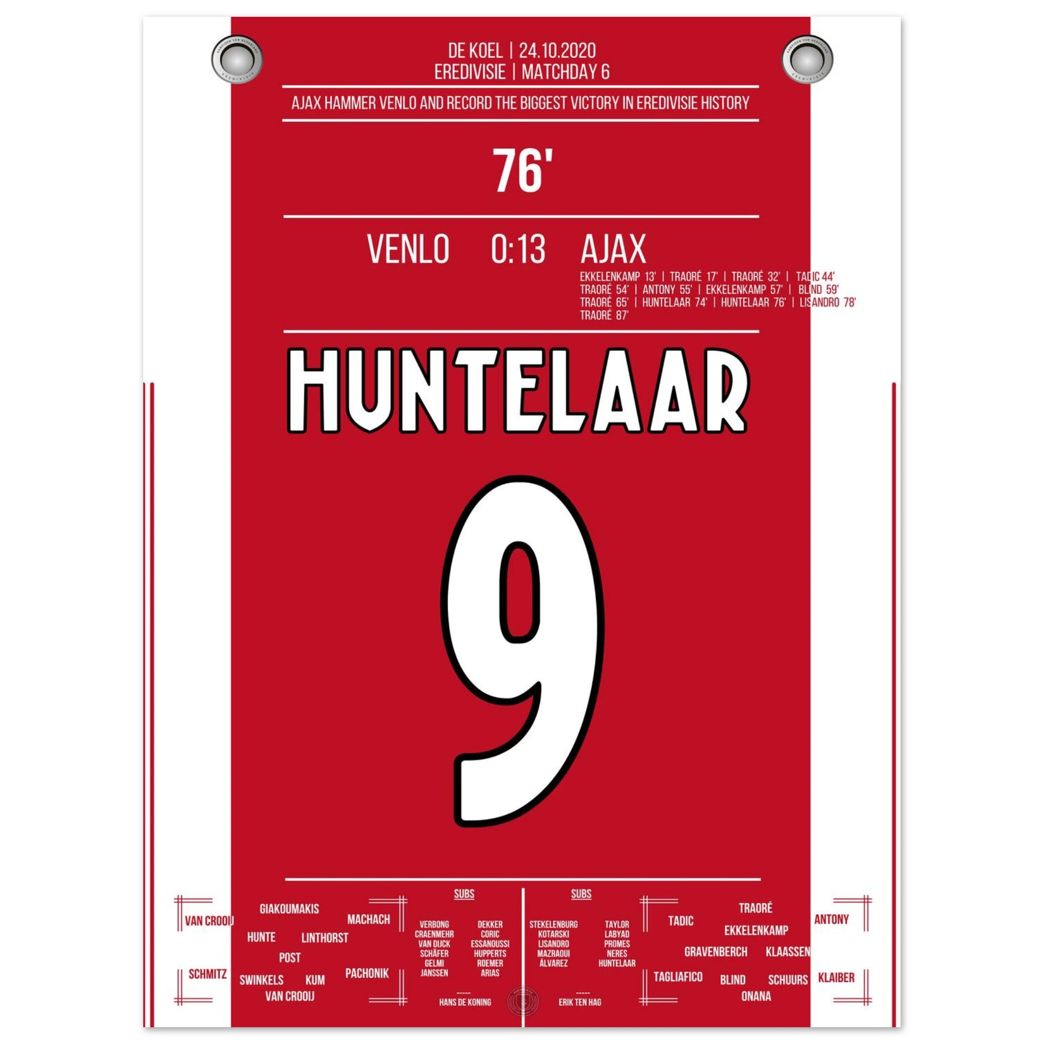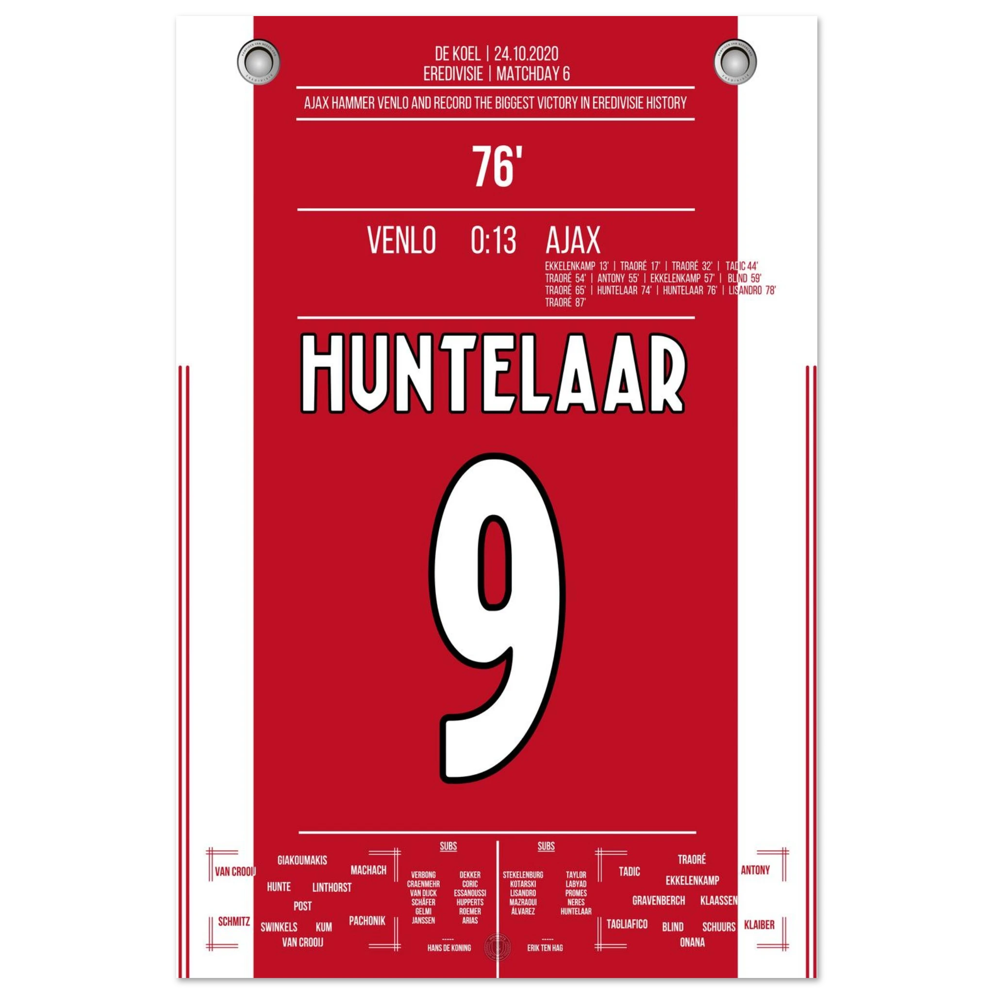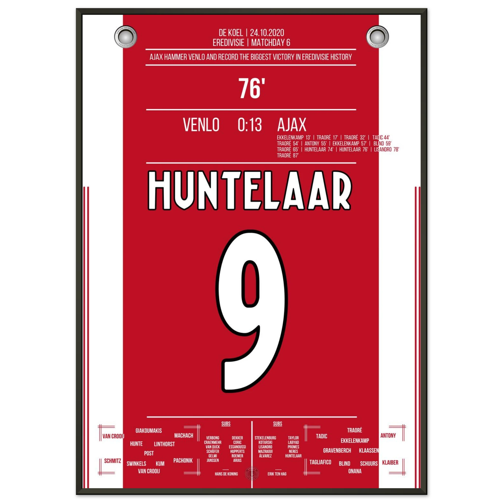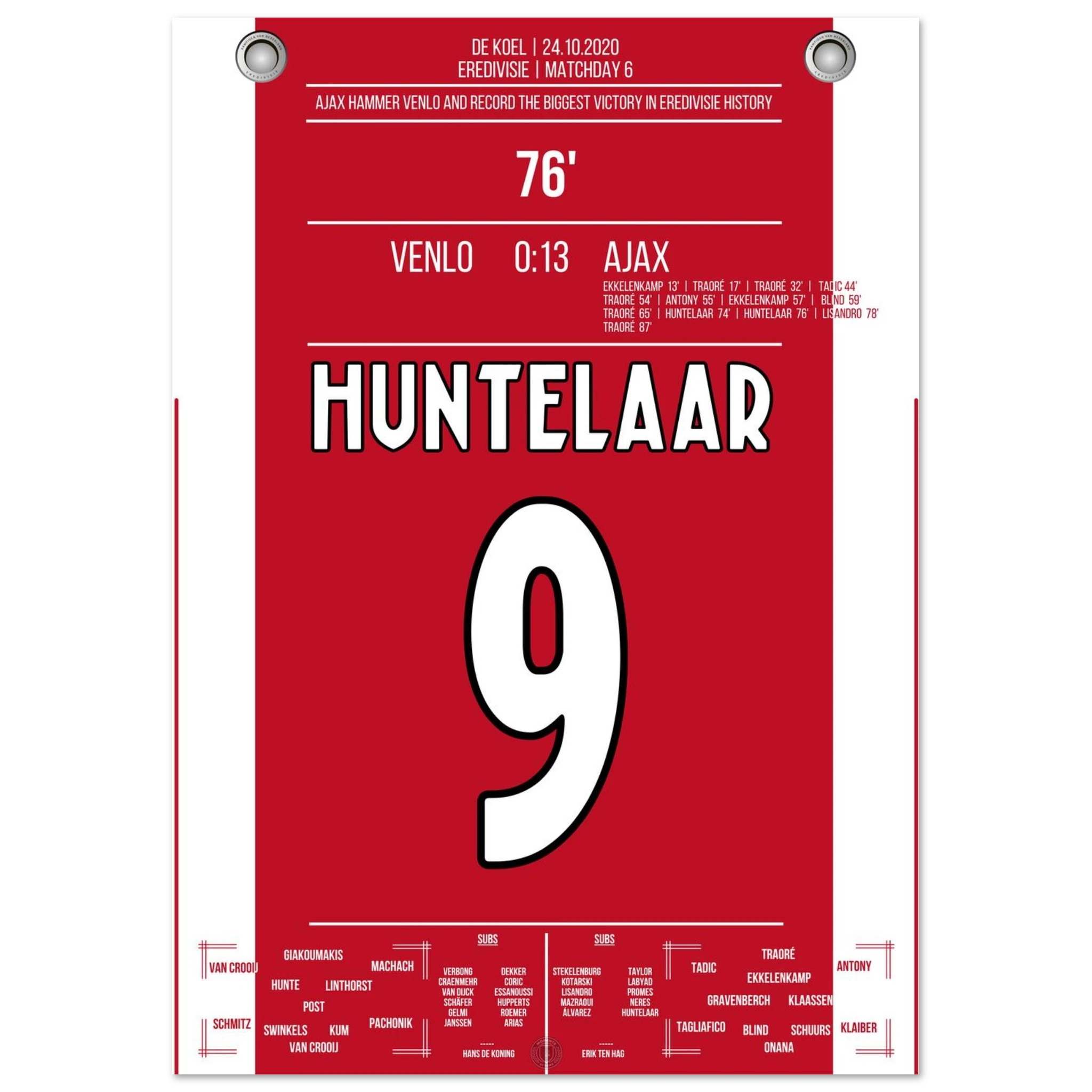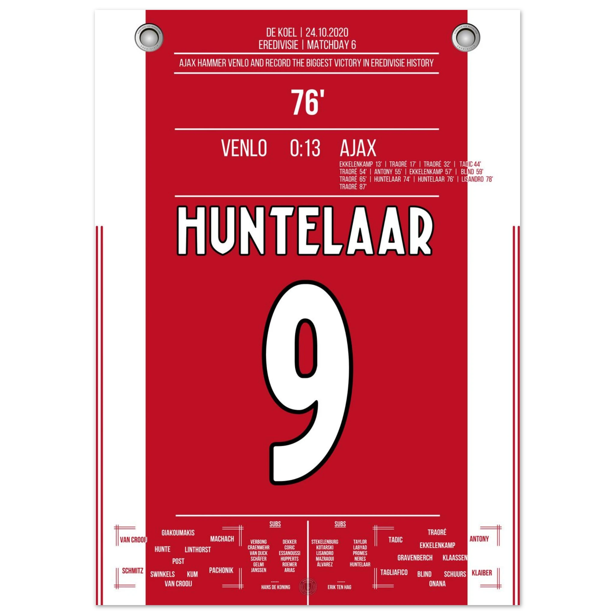 Ein Spiel für die Rekordbücher: Ajax überrollt Venlo mit 13 Toren – der höchste Sieg in der Geschichte der niederländischen Liga. Lassina Traoré trifft gleich fünfmal, die Mannschaft spielt sich in einen wahren Rausch.