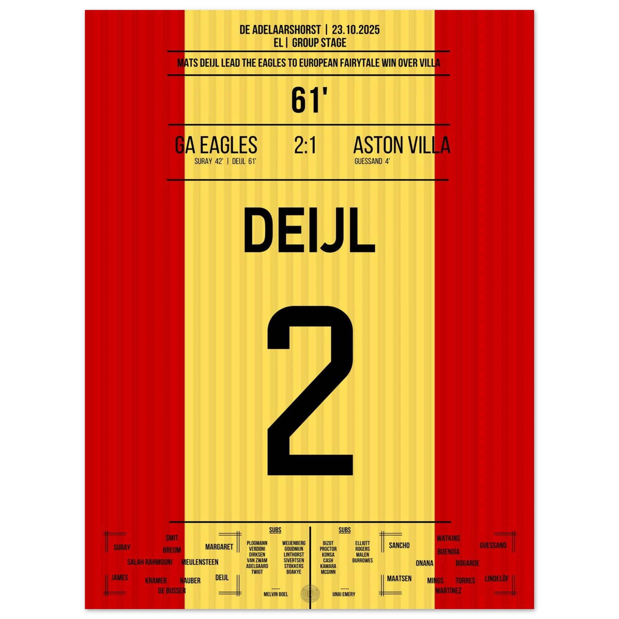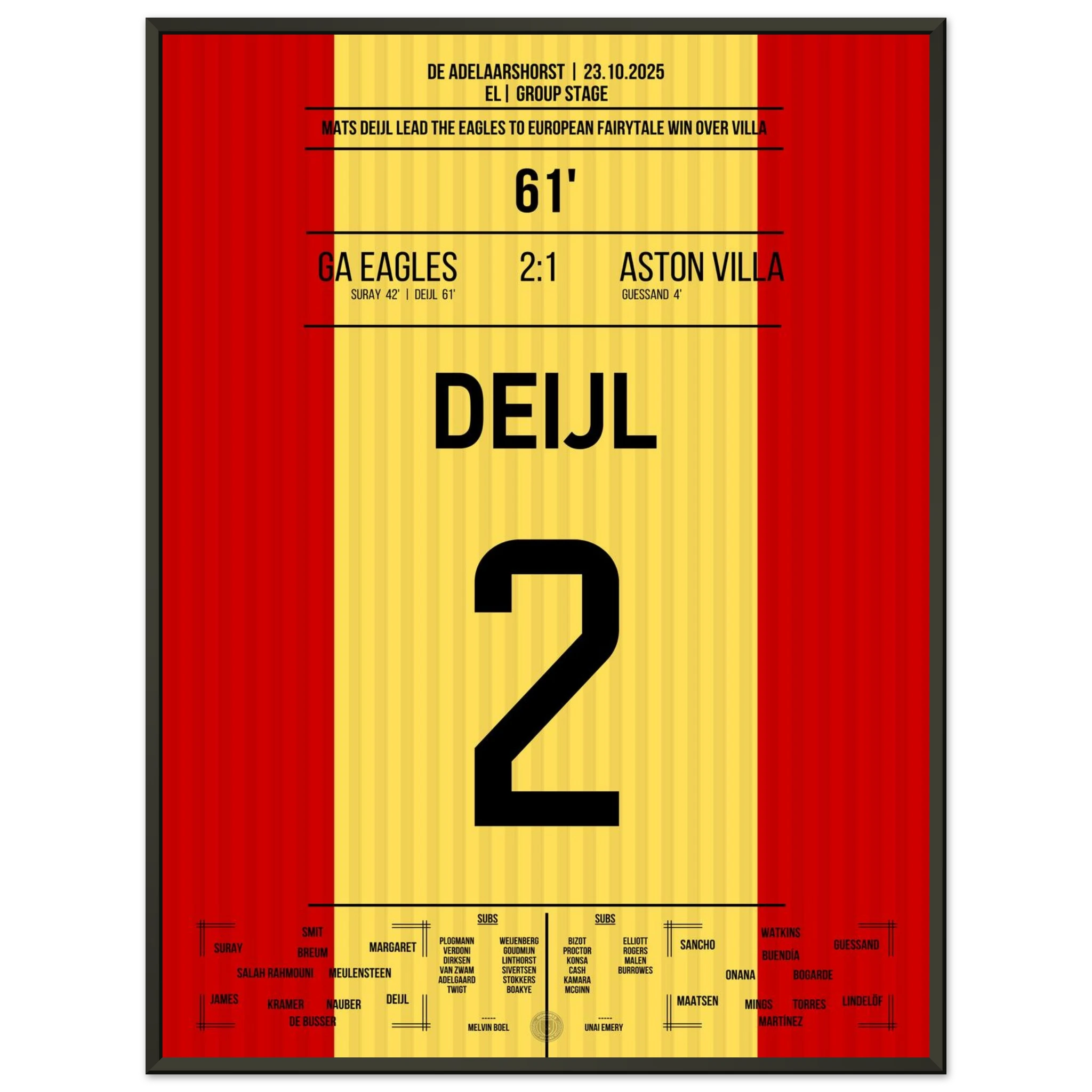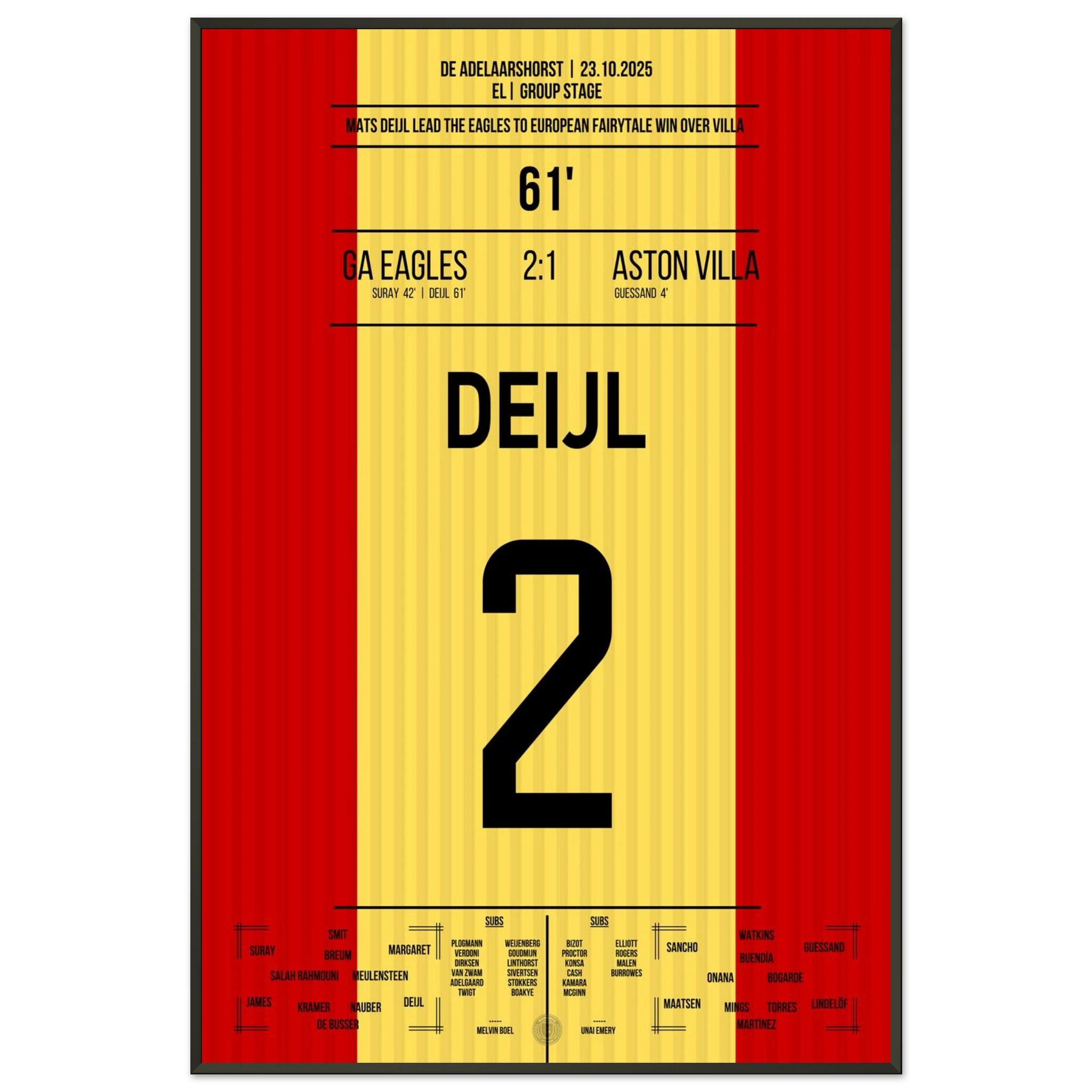 Unser Poster feiert diesen historischen Abend – ein kleiner Klub, ein großer Traum, unvergesslich festgehalten in Rot und Gelb. 🦅🔥