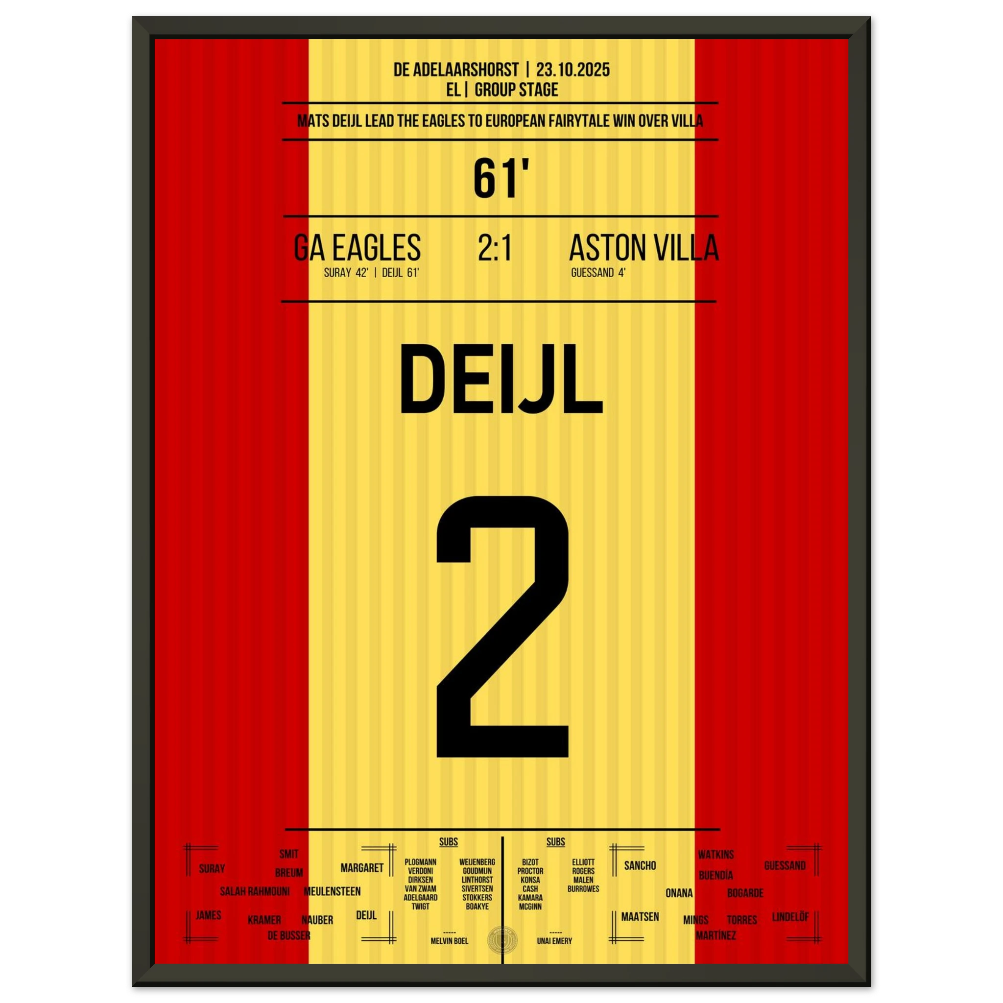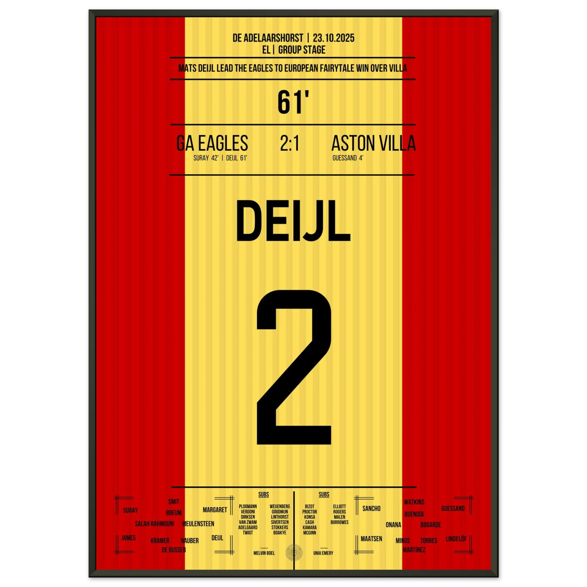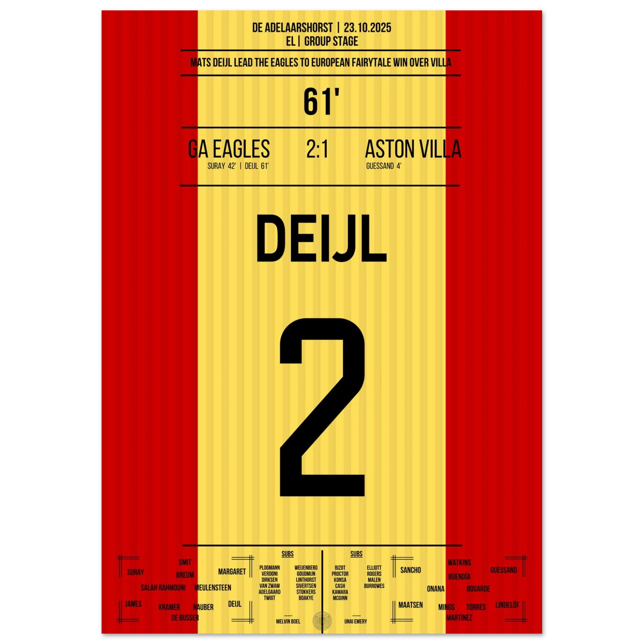 Unser Poster feiert diesen historischen Abend – ein kleiner Klub, ein großer Traum, unvergesslich festgehalten in Rot und Gelb. 🦅🔥