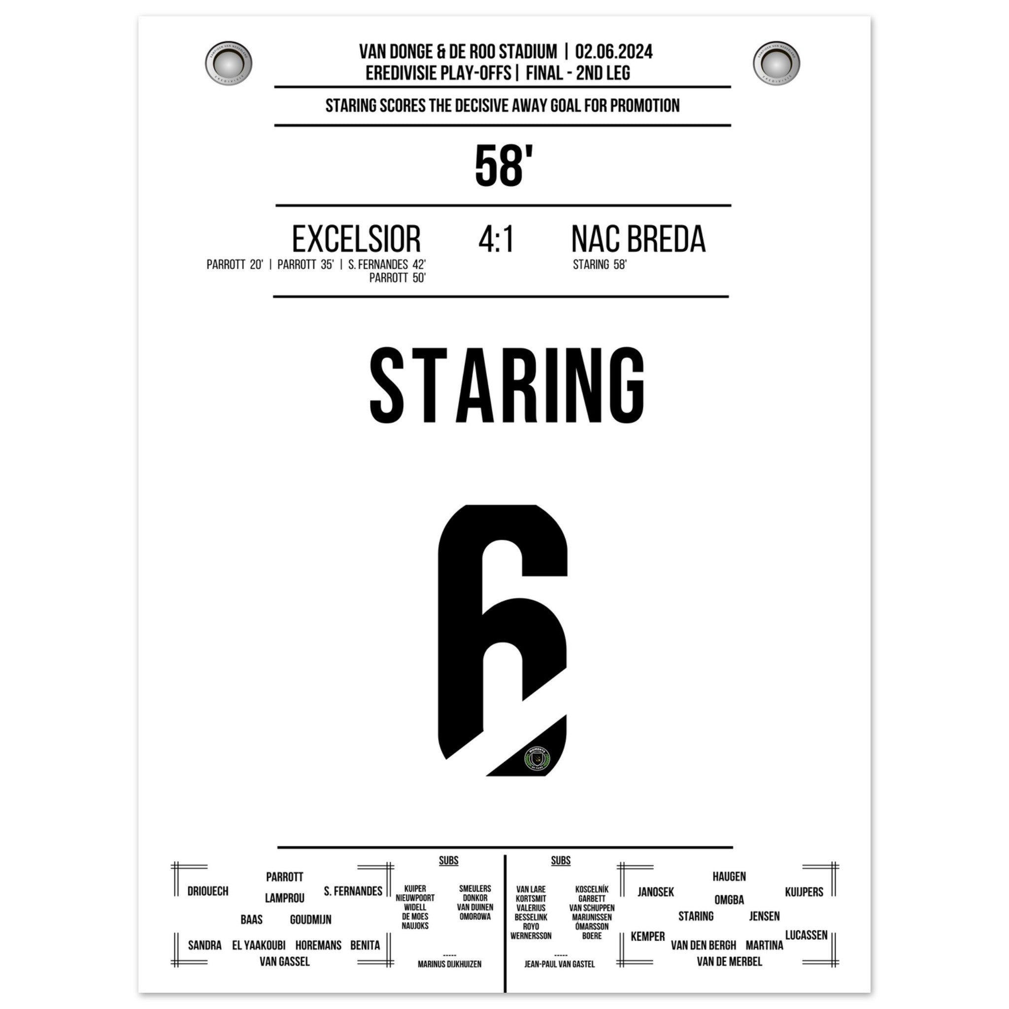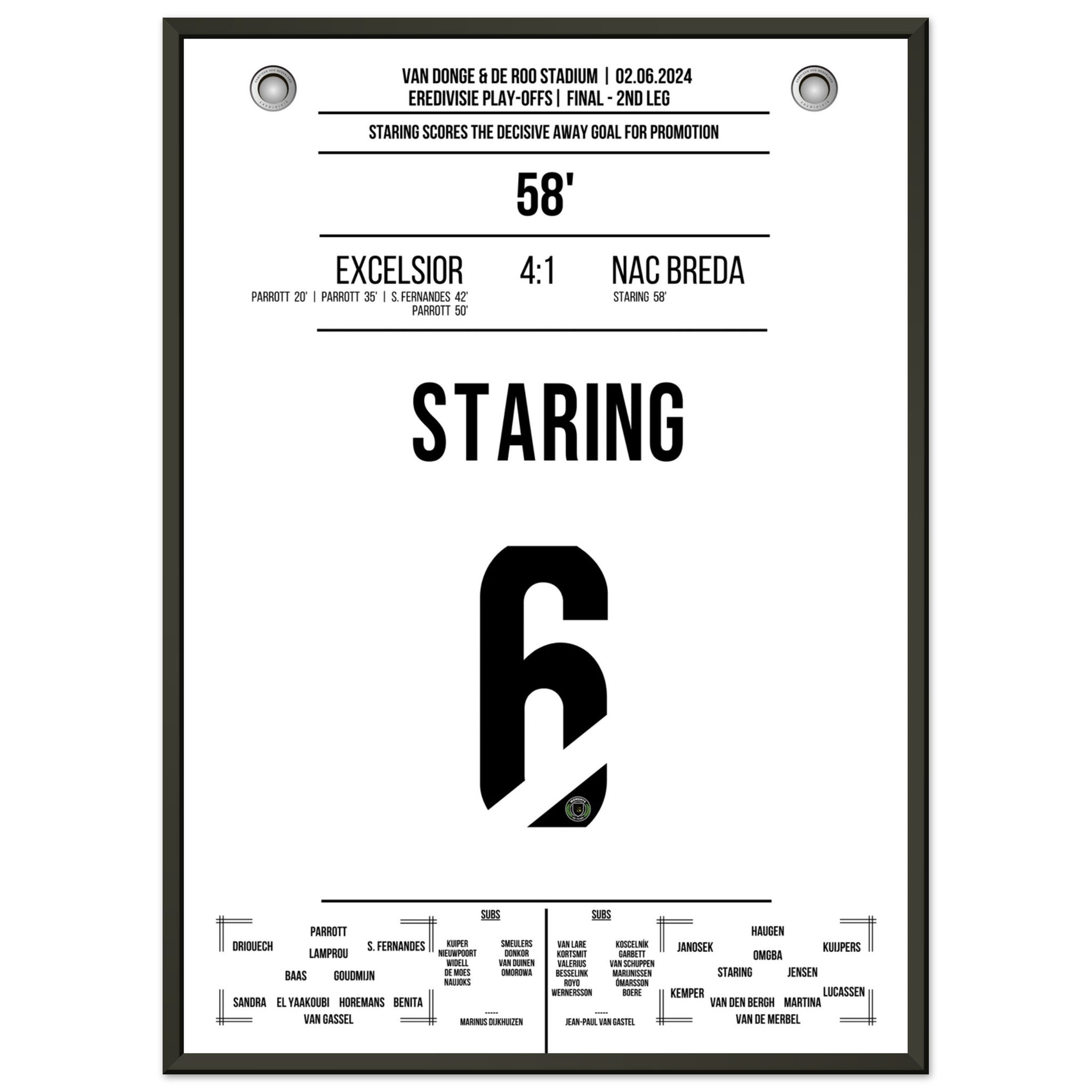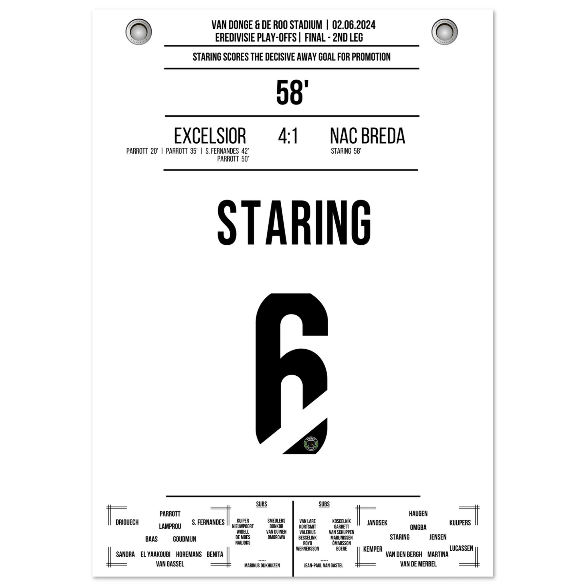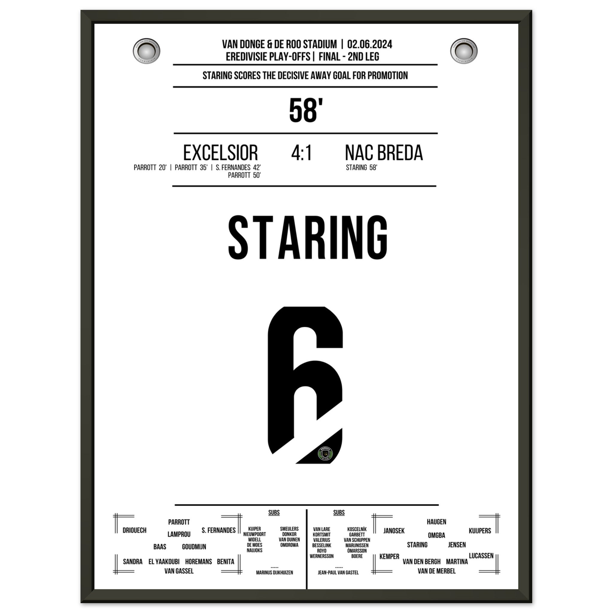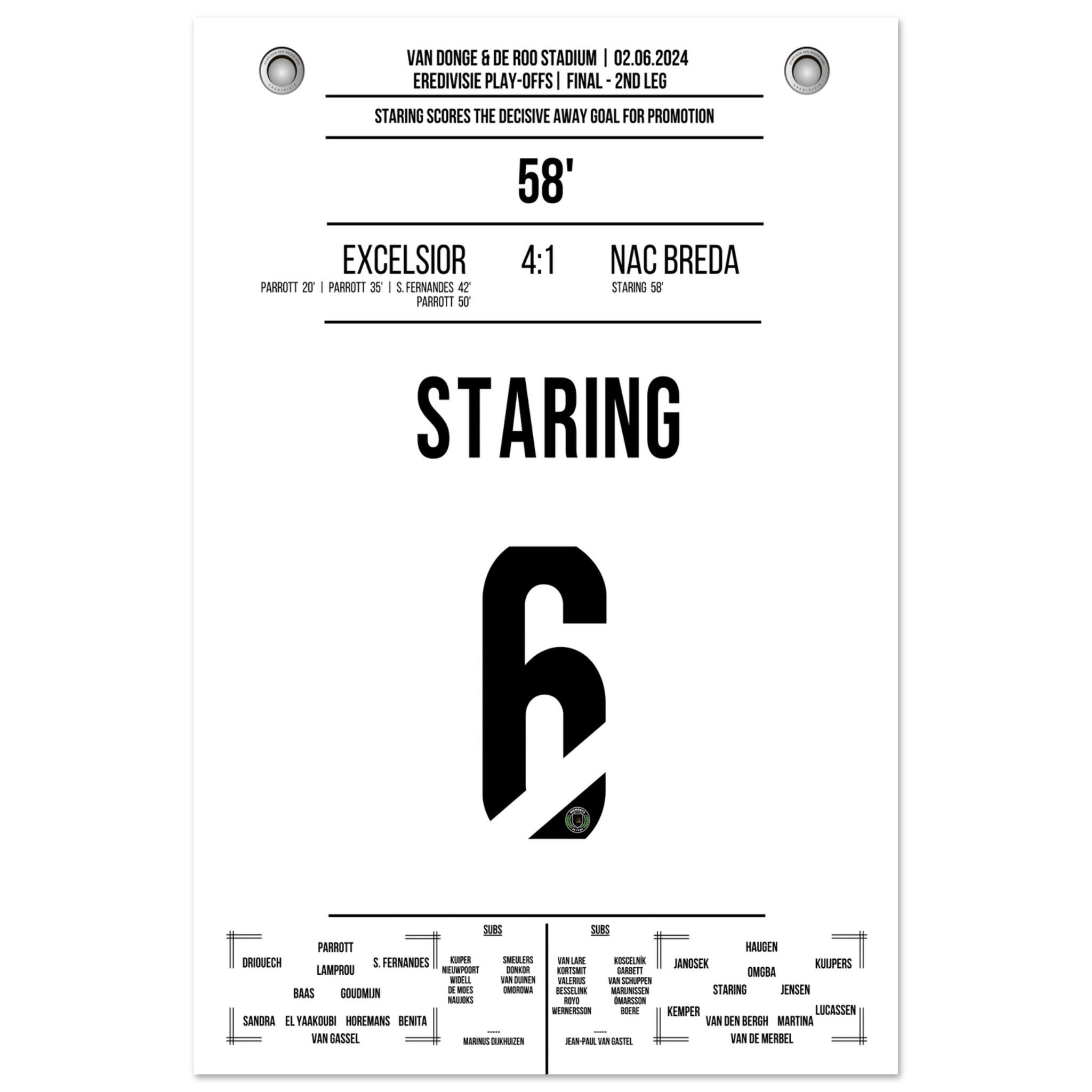 Staring scores the decisive away goal for promotion to the 1st league.