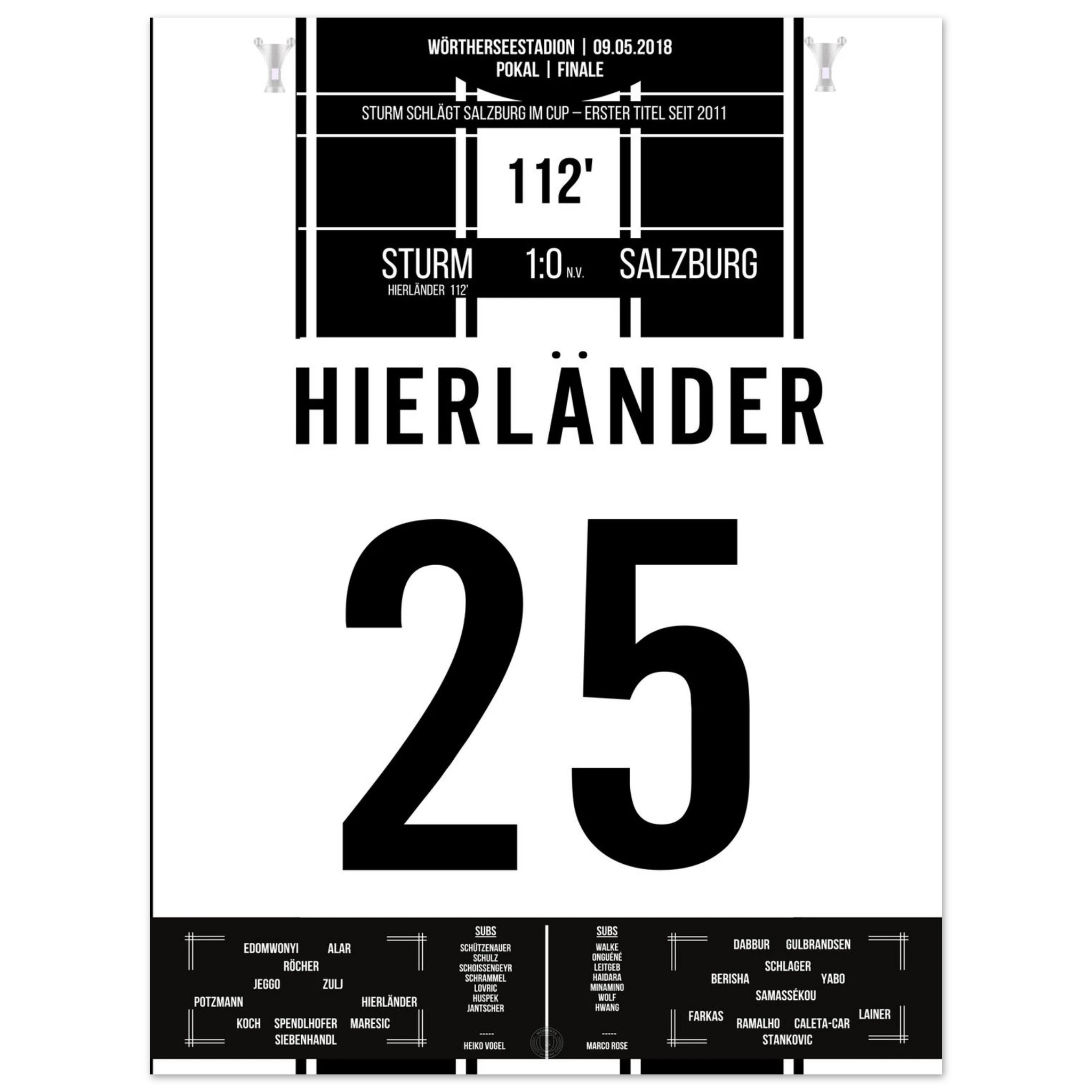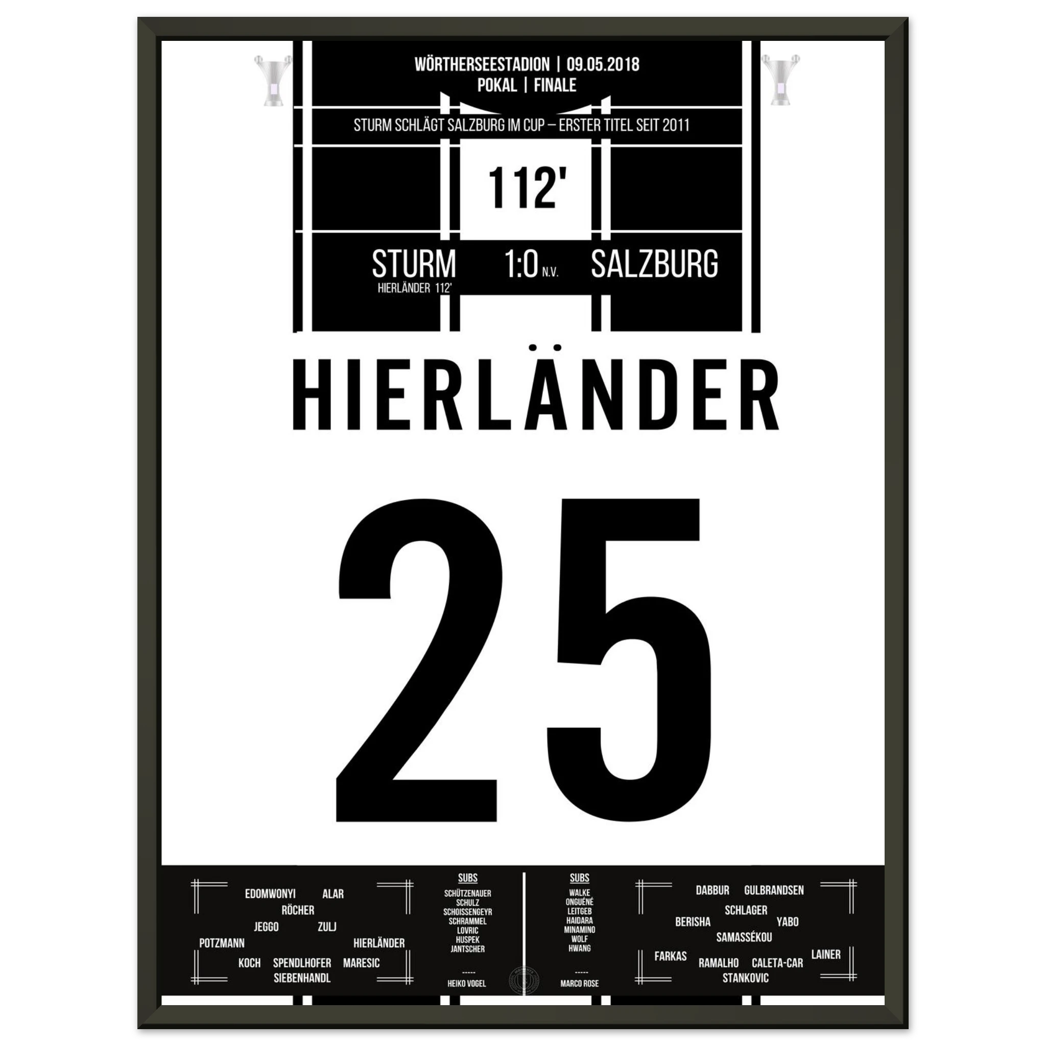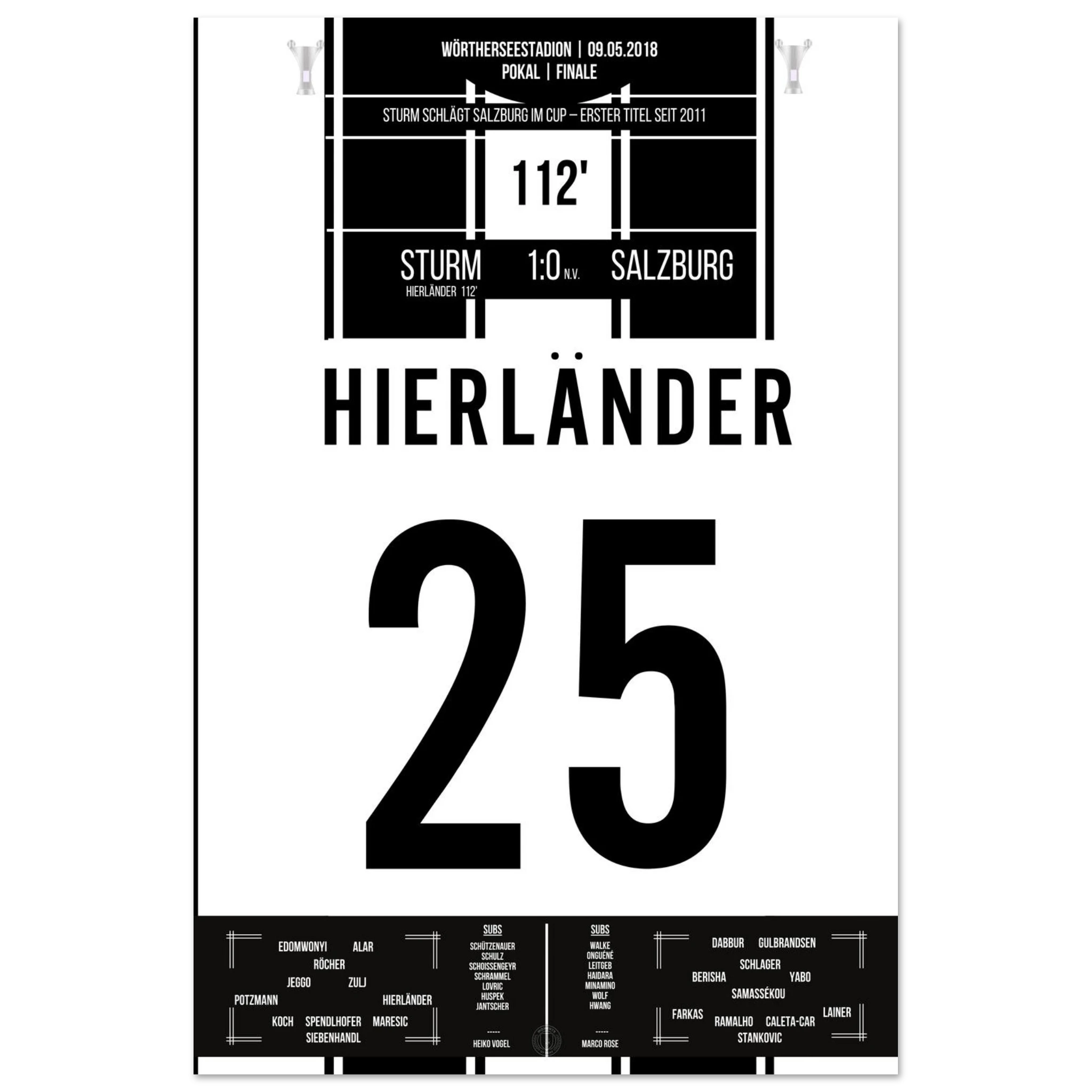 Im Cupfinale gegen Serienmeister Salzburg wächst Sturm über sich hinaus. In der Verlängerung ist es Stefan Hierländer, der mit einem wuchtigen Kopfball das 1:0 markiert – und Sturm damit zum ersten Cupsieg seit 2010 führt. Ein Abend für die Vereinsgeschichte.