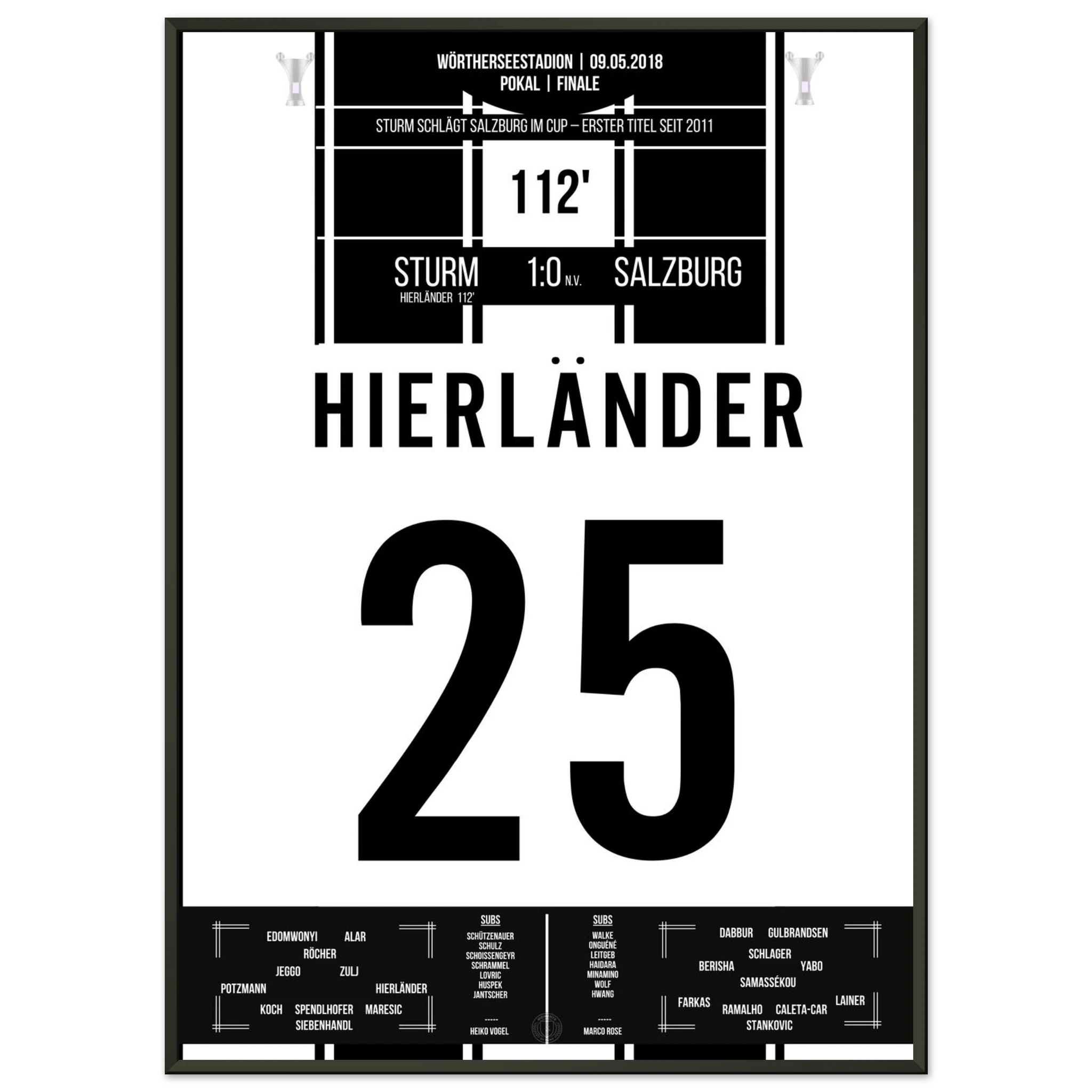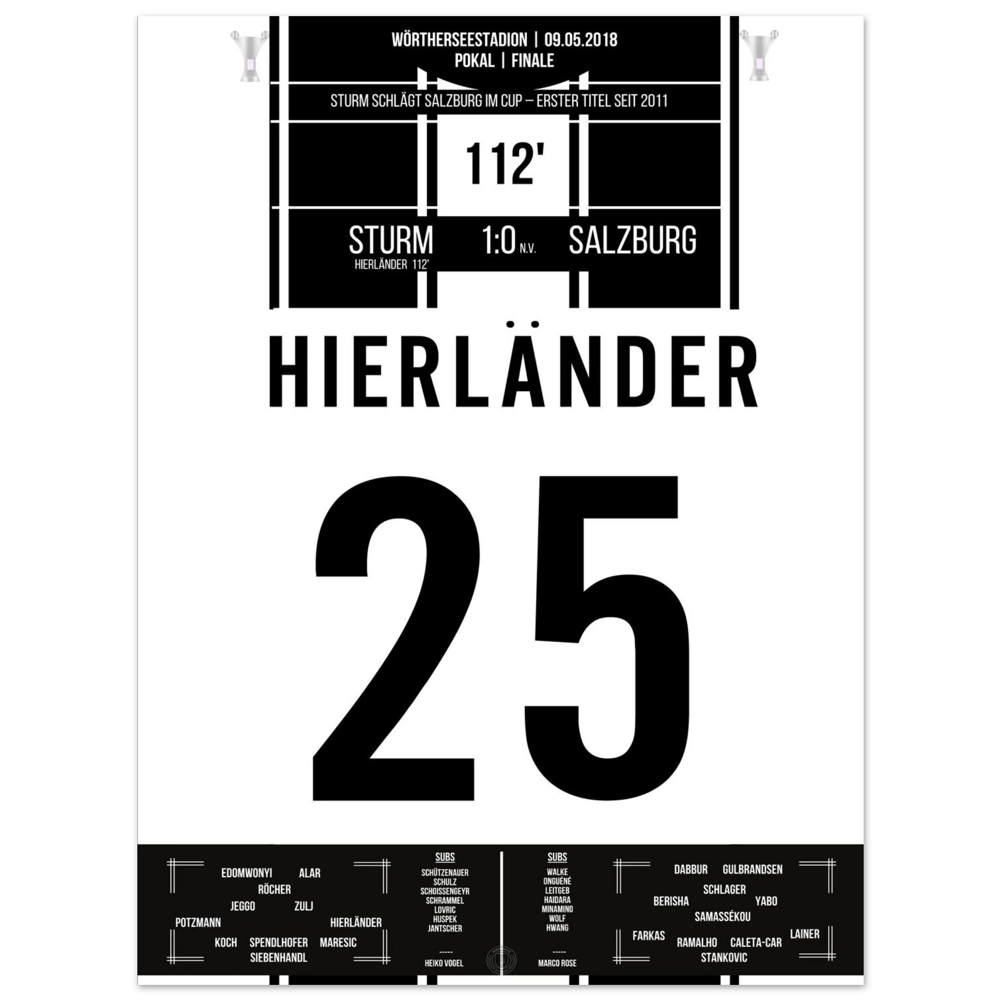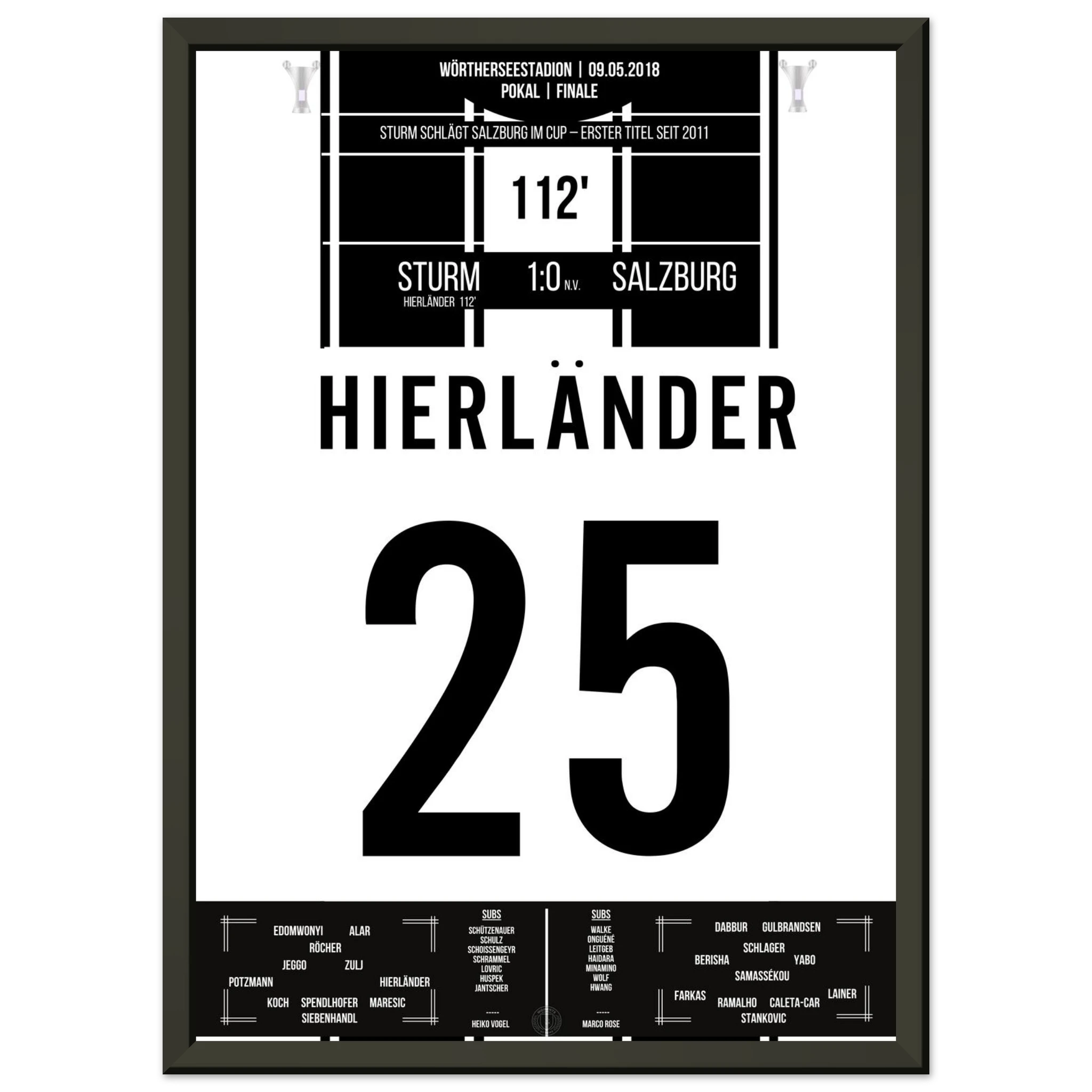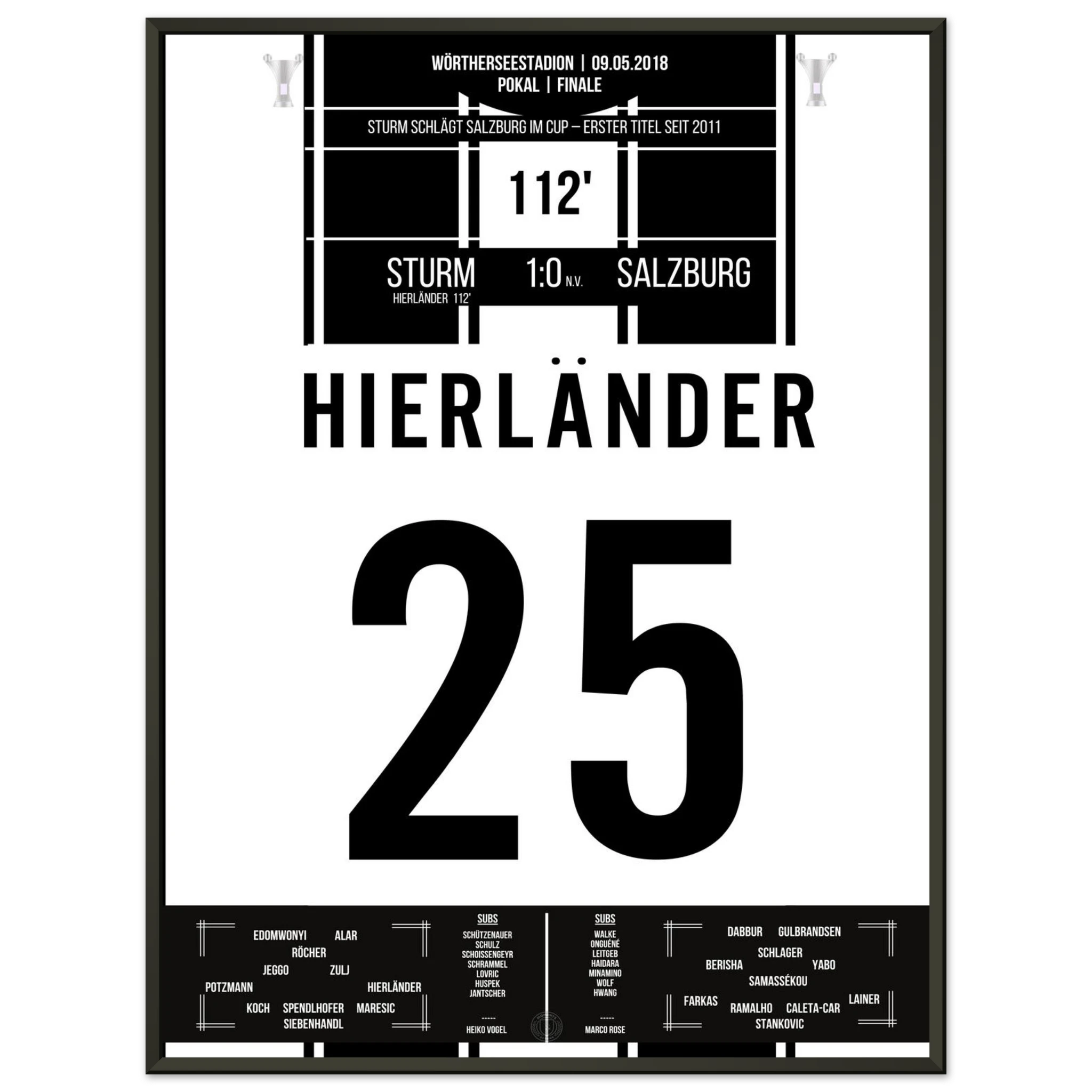 Im Cupfinale gegen Serienmeister Salzburg wächst Sturm über sich hinaus. In der Verlängerung ist es Stefan Hierländer, der mit einem wuchtigen Kopfball das 1:0 markiert – und Sturm damit zum ersten Cupsieg seit 2010 führt. Ein Abend für die Vereinsgeschichte.