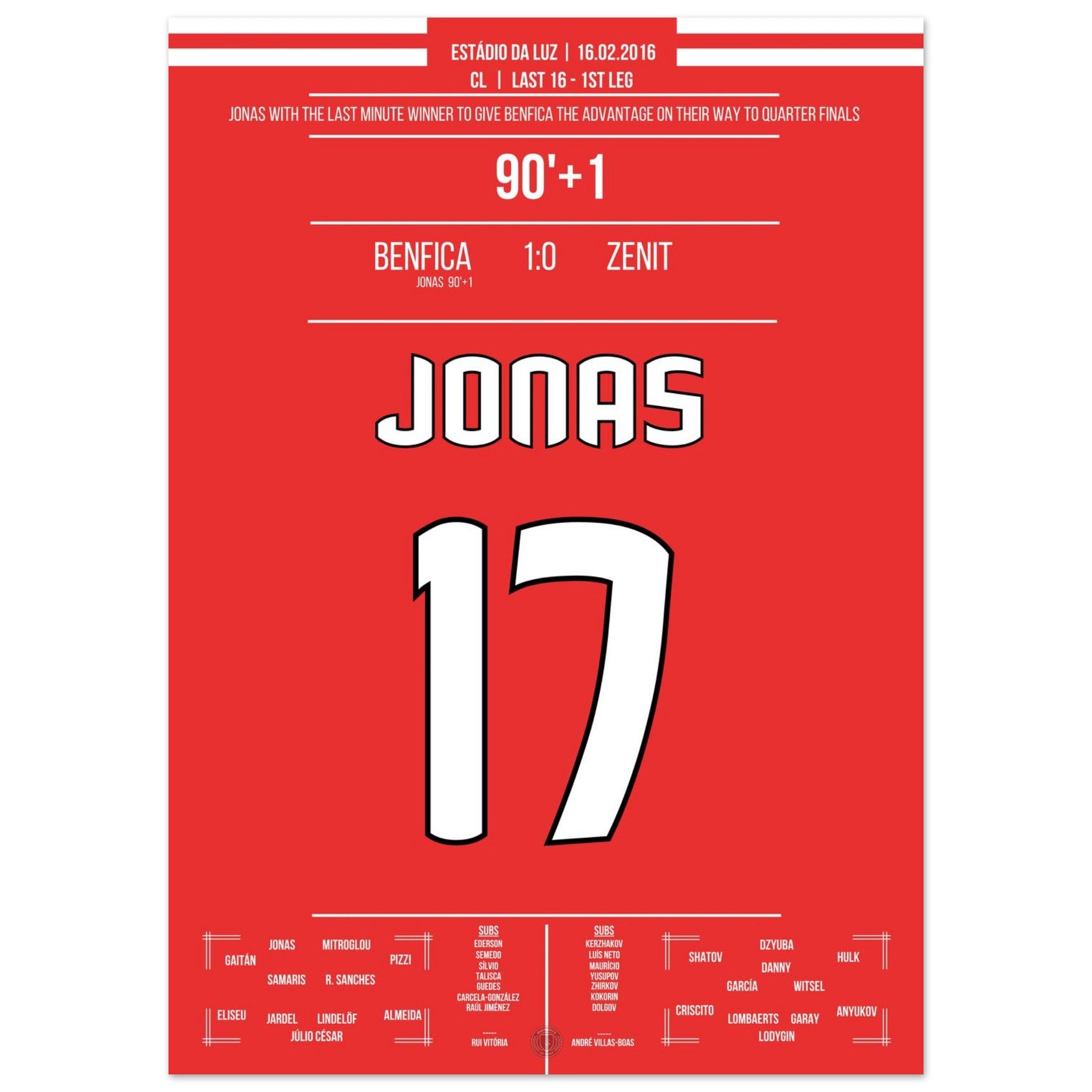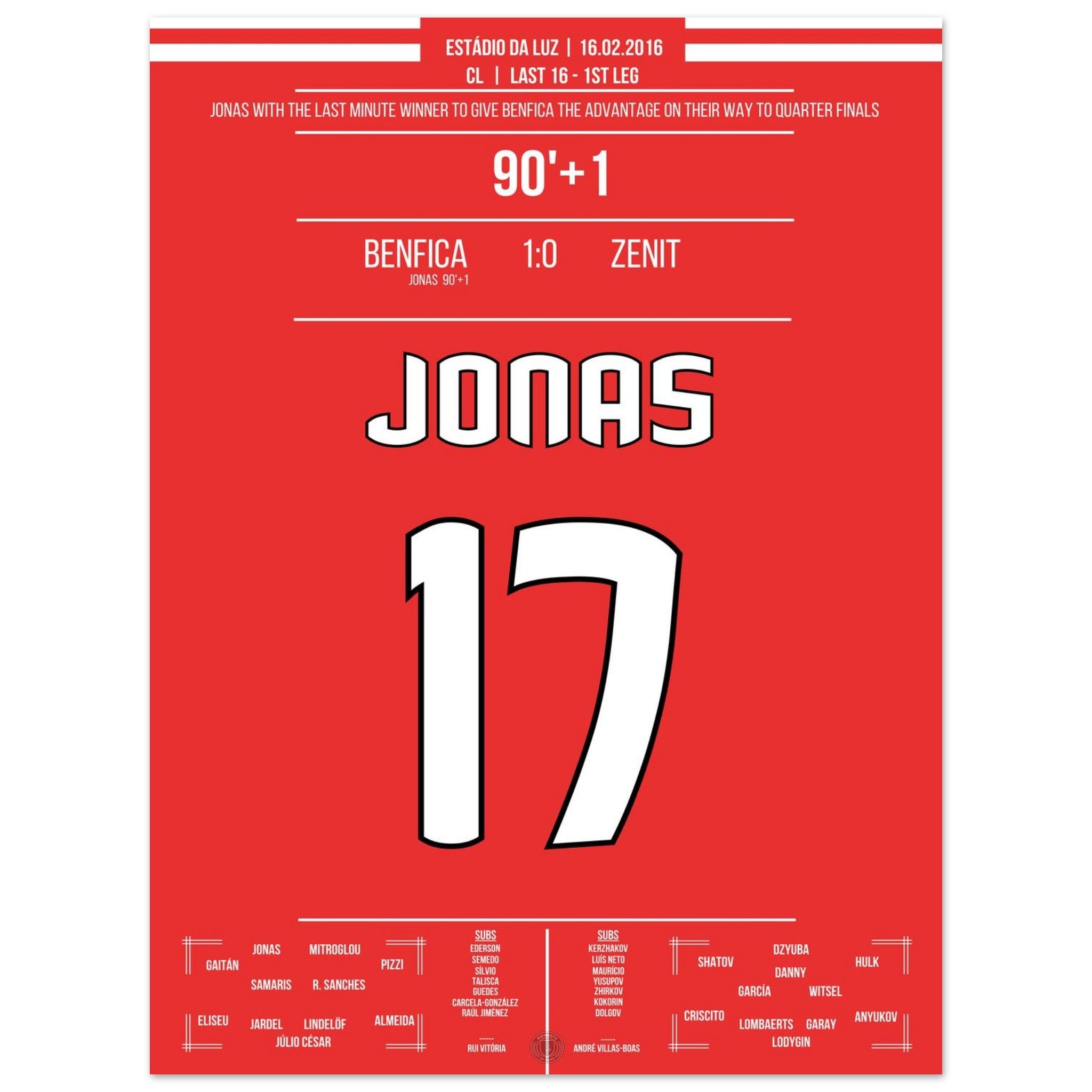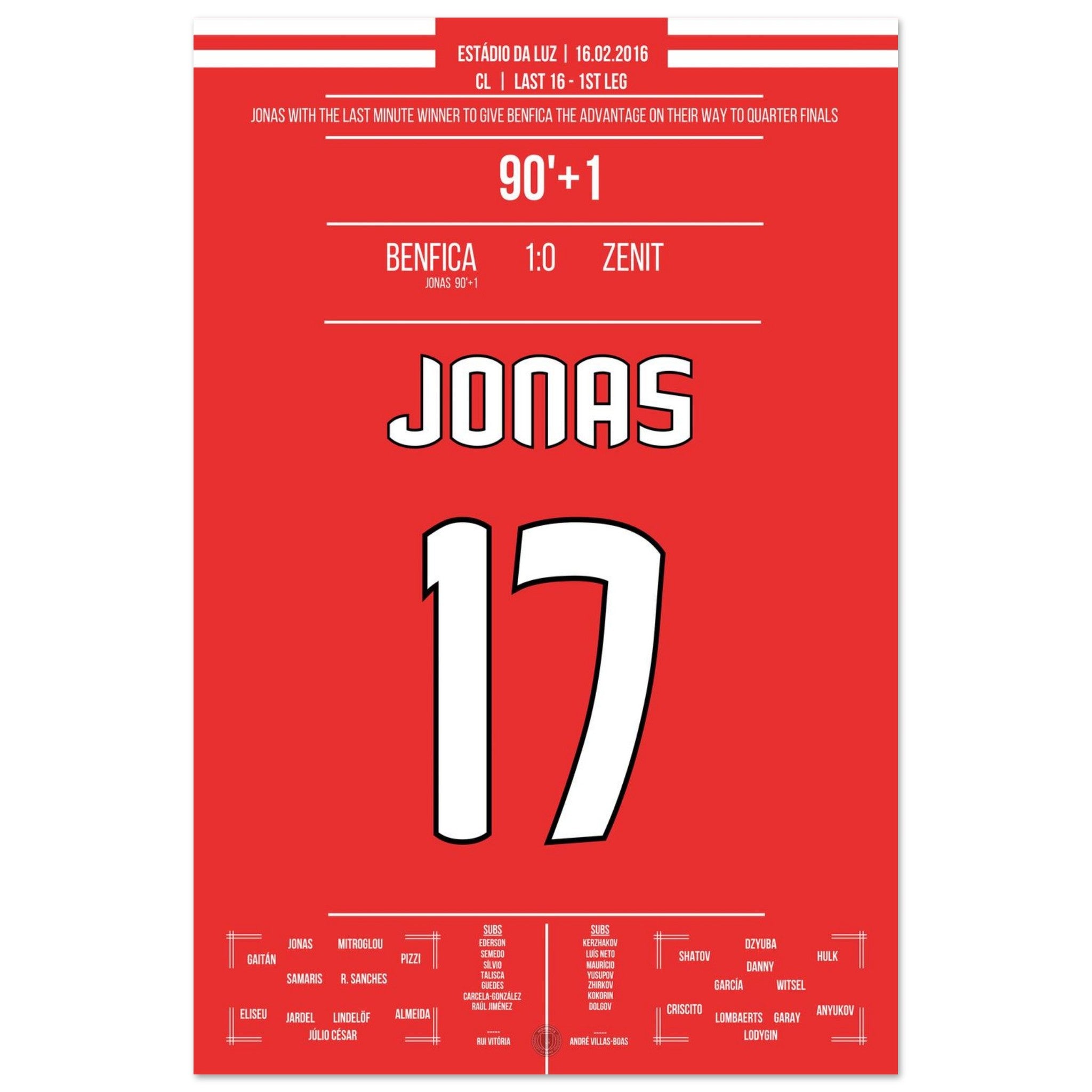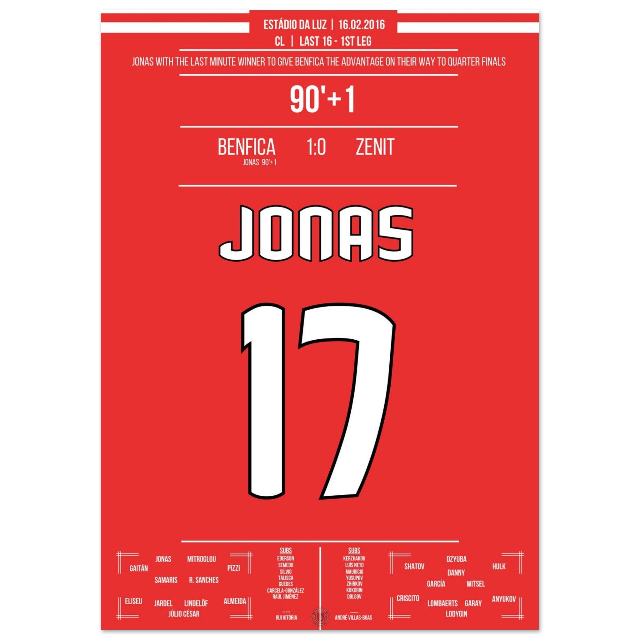 Jonas heads Benfica to victory in the Champions League first leg against Zenit.